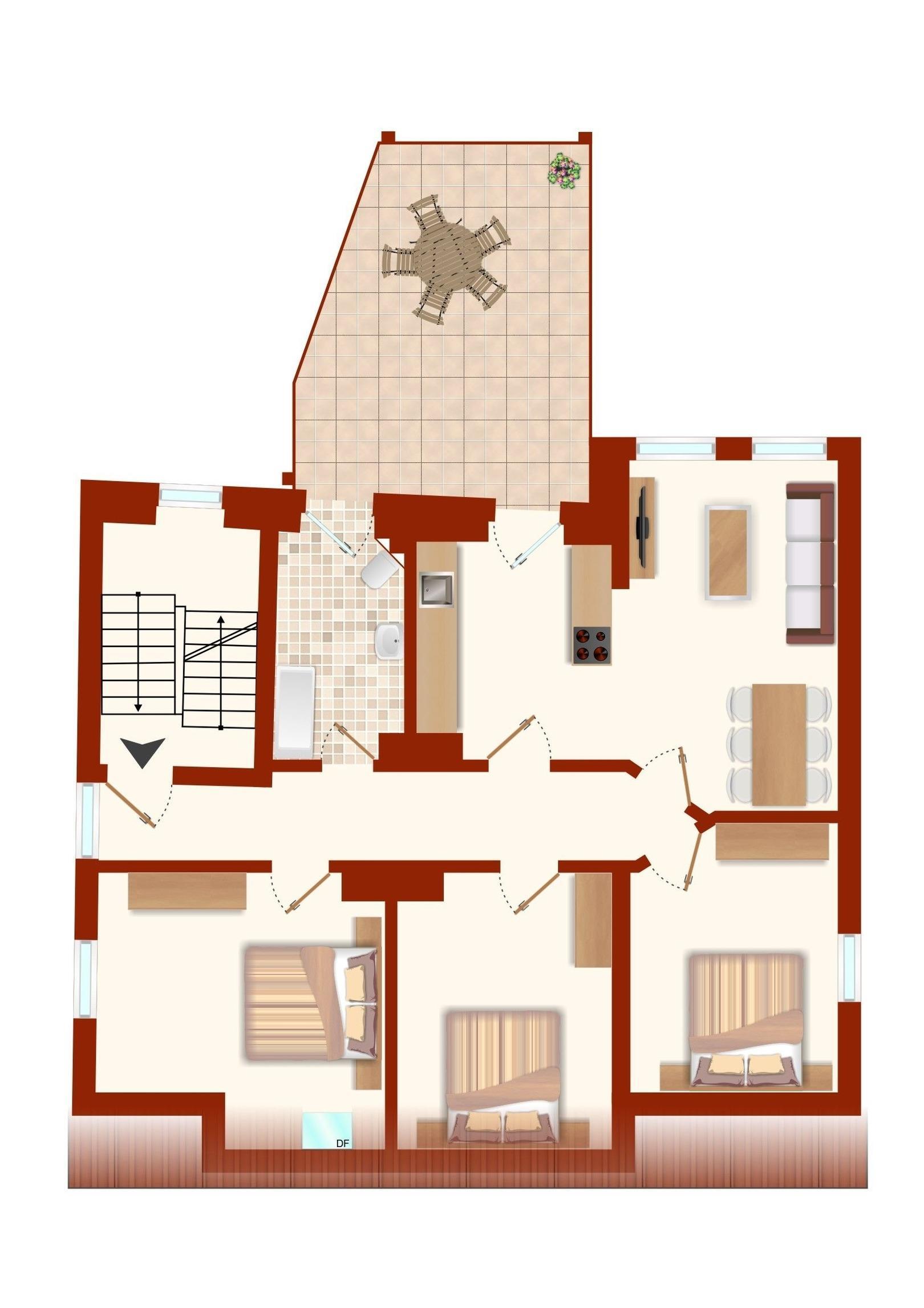 Stilvollen 4-Zimmer-Ferienwohnung für bis zu 6 Personen im Dachgeschoss (2 Stock) mit großem Balkon im Traditionshaus Alte Bäckerei im Herzen von Laboe.