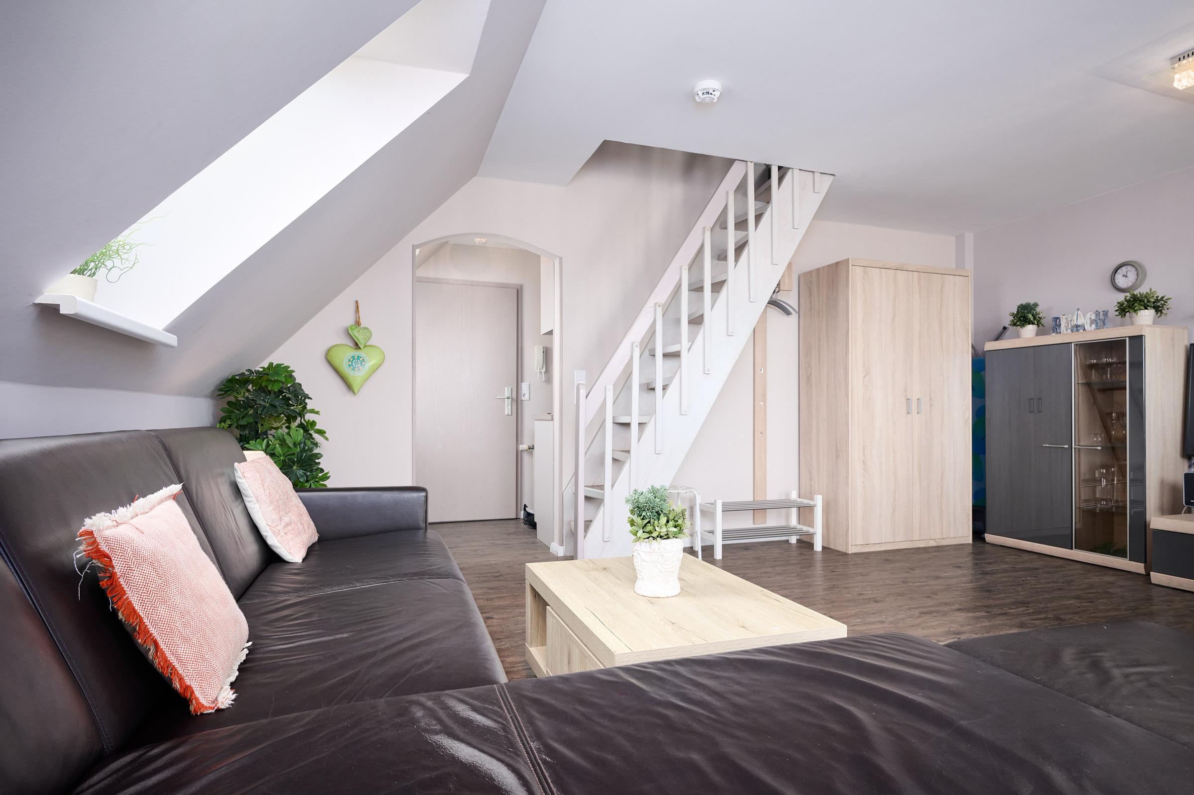 Im schönen Laboe: strandnahe 2-Zimmer-Ferienwohnung im 2. Stock mit 2 Balkonen und Meerblick bietet auf ca. 50 m² auf 2 Ebenen genug Platz für bis zu 4 Personen.
