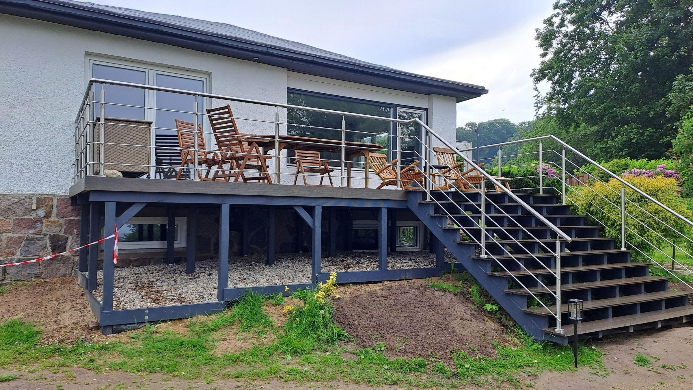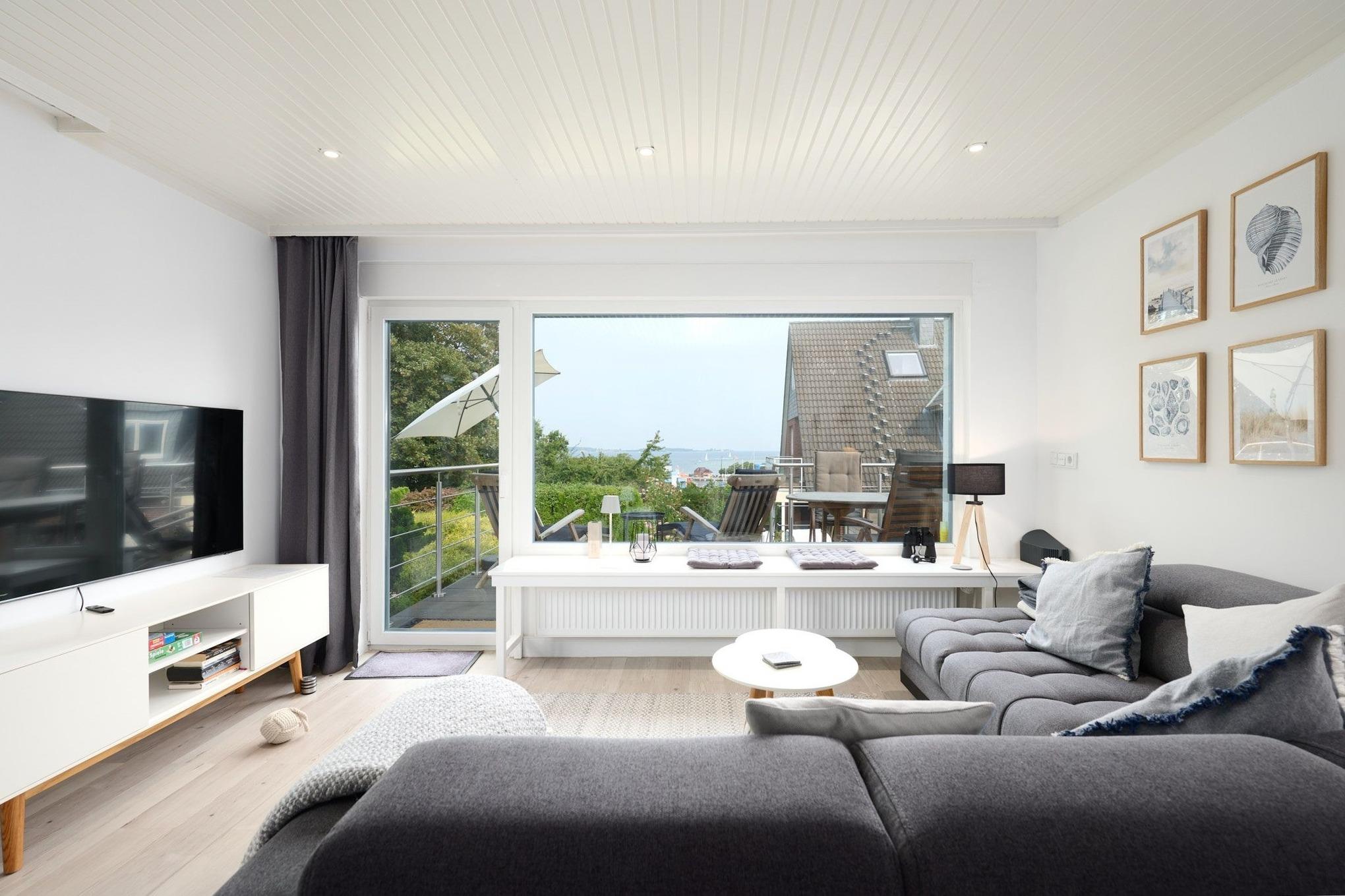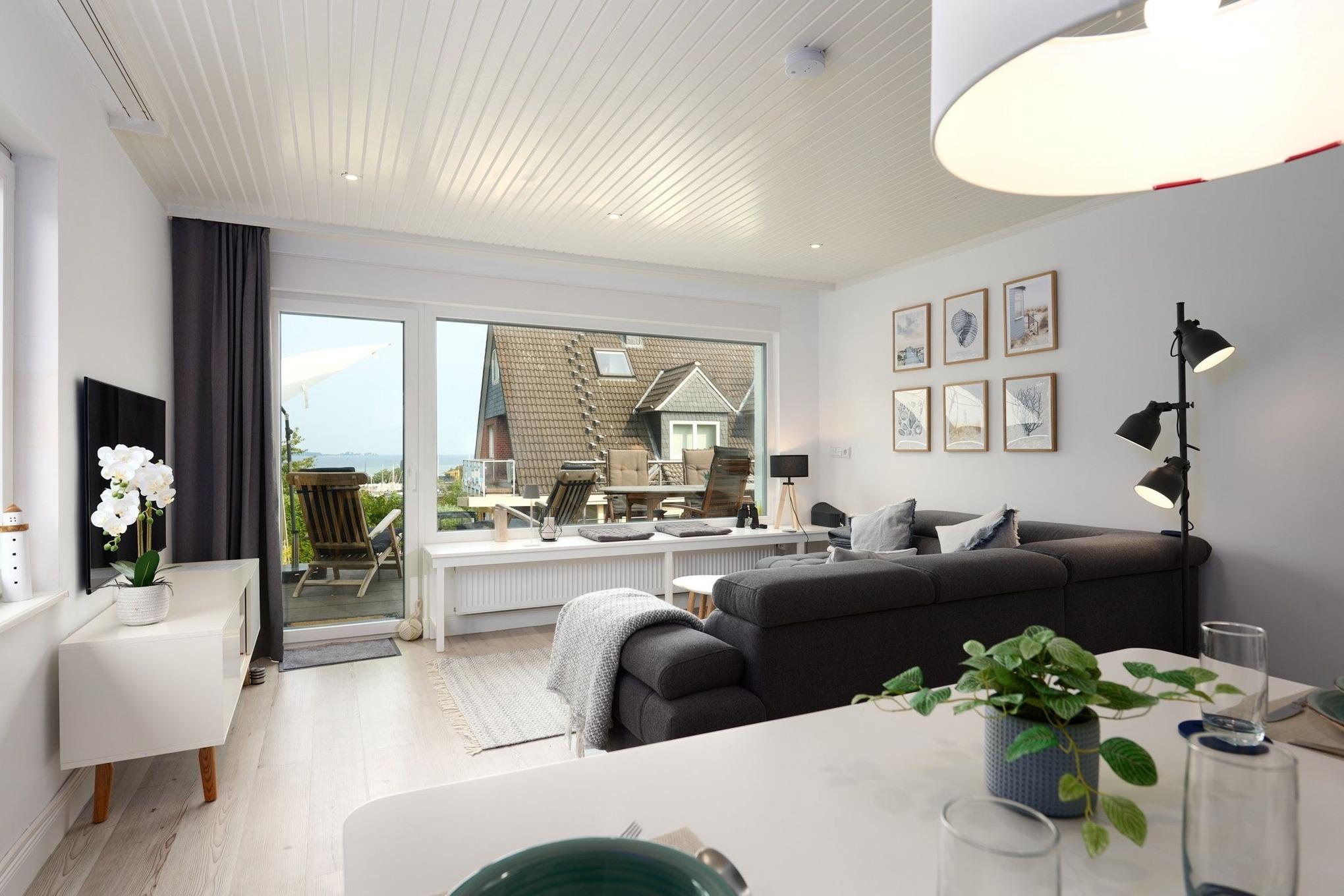 Stilvolle Ferienwohnung mit Meerblick und großer Terrasse in Laboe, ideal für einen erholsamen Ostseeurlaub.