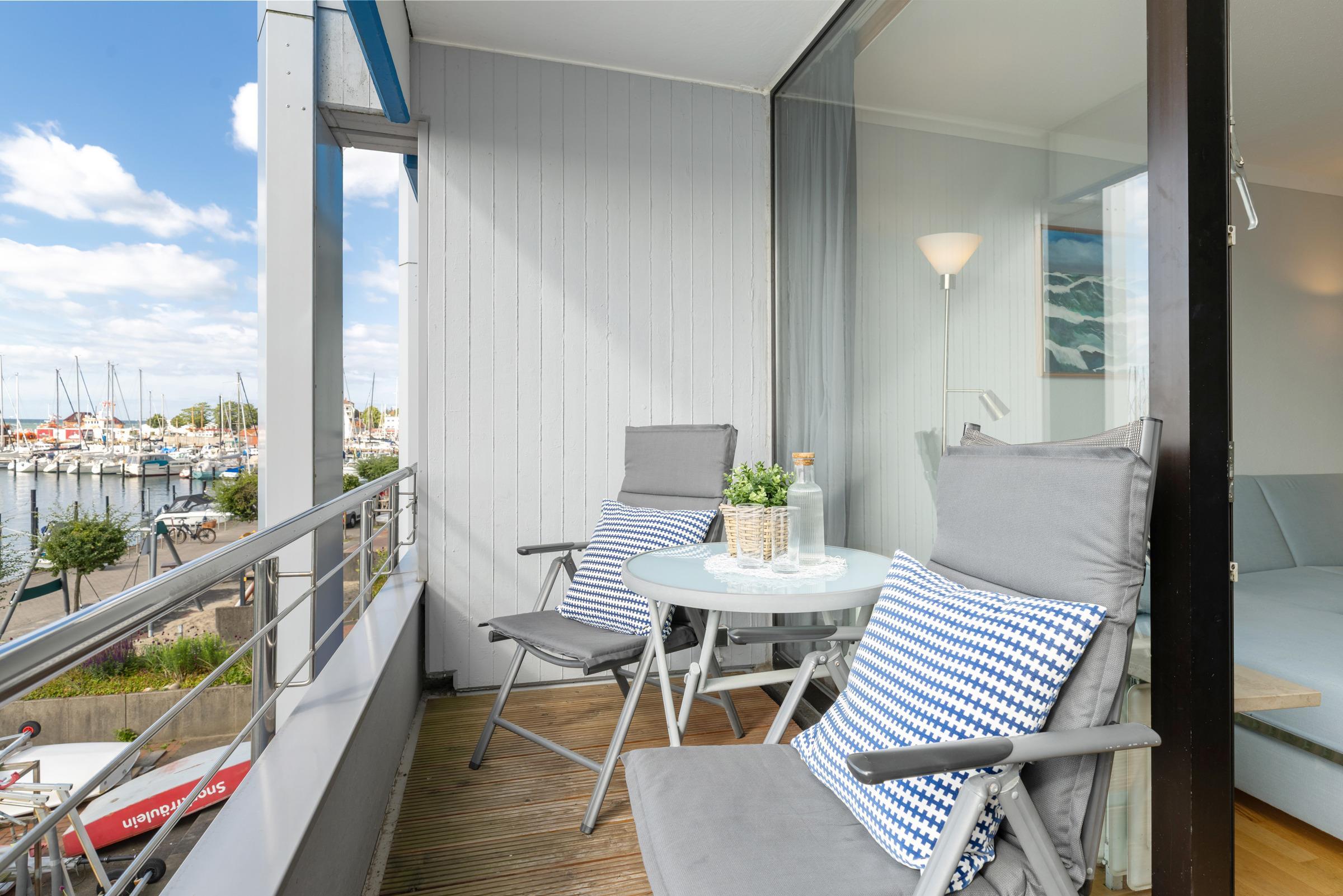 Charmante Ferienwohnung mit Balkon und Hafenblick in Laboe, ideal für erholsame Tage an der Kieler Förde.