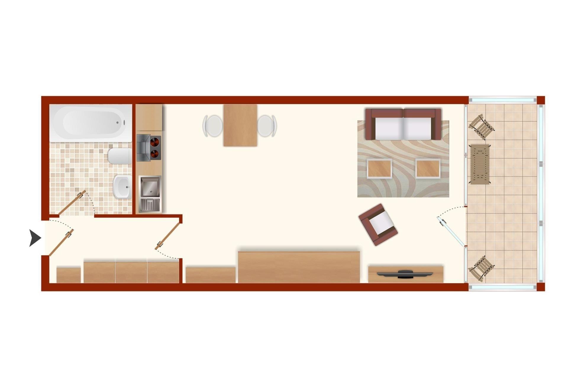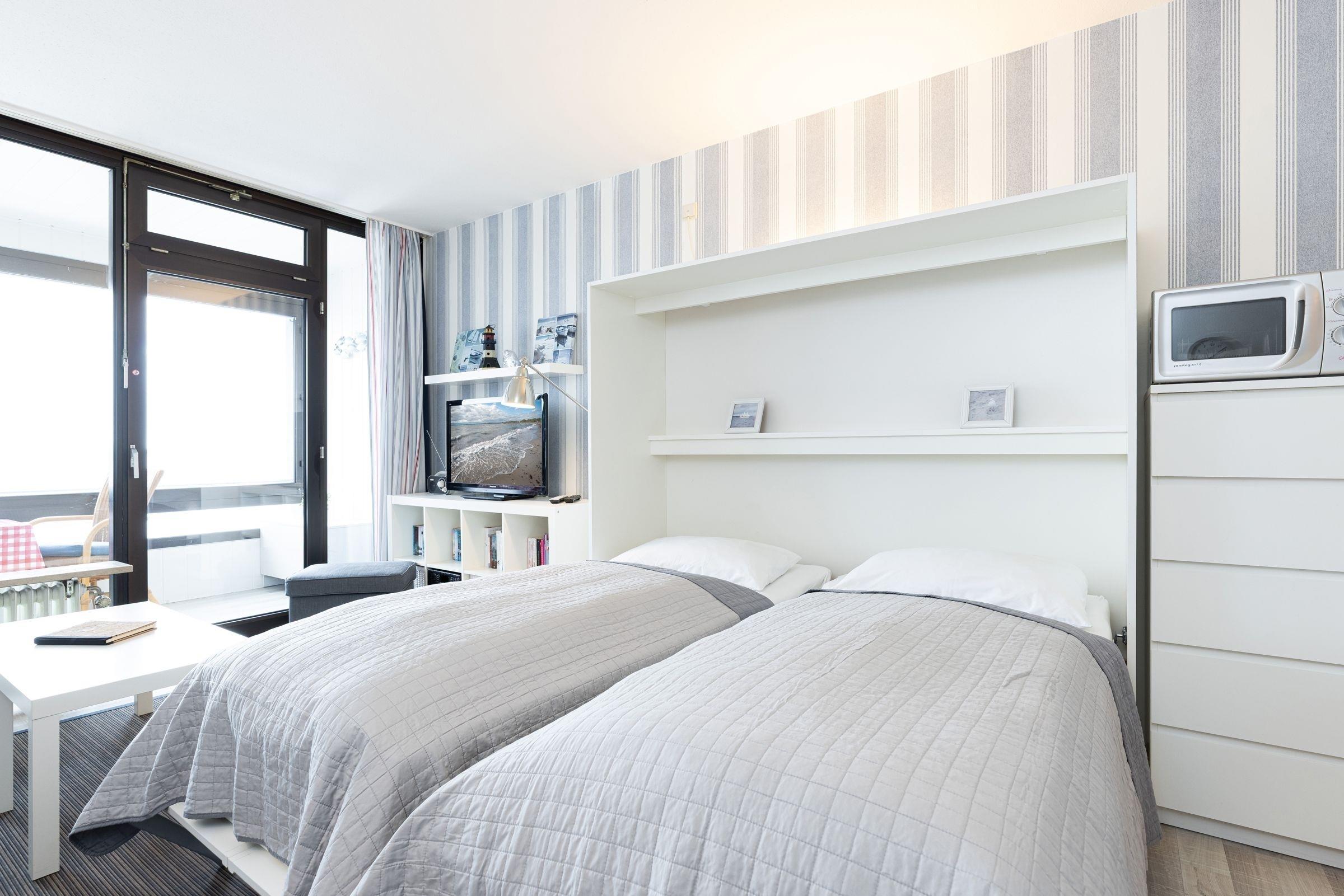 Die kleine, liebevoll eingerichtete Wohnung ist bequem per Fahrstuhl (100x100 cm) zu erreichen. Der kombinierte Wohn/-Ess- und Schlafbereich verfügt über eine kleine Pantry-Küche mit einem Essplatz sowie einer Couch und einem Schrankbett (2x 90x200 cm). Das innenliegende Badezimmer mit Wanne mit Duschfunktion rundet das Angebot ab. Ein Highlight ist sicher die Loggia. Von hier aus können Sie wunderbar den Schiffsverkehr auf der Kieler Förde beobachten. Die Fenster lassen sich übrigens vollständig öffnen, sodass Sie bei Bedarf auch die gute Seeluft reinlassen können. Zum Yachthafen sind es keine 50 m. Überfahrten mit der Fähre nach Kiel oder zum Westufer gehören bei einem Laboe-Aufenthalt zum Pflichtprogramm.