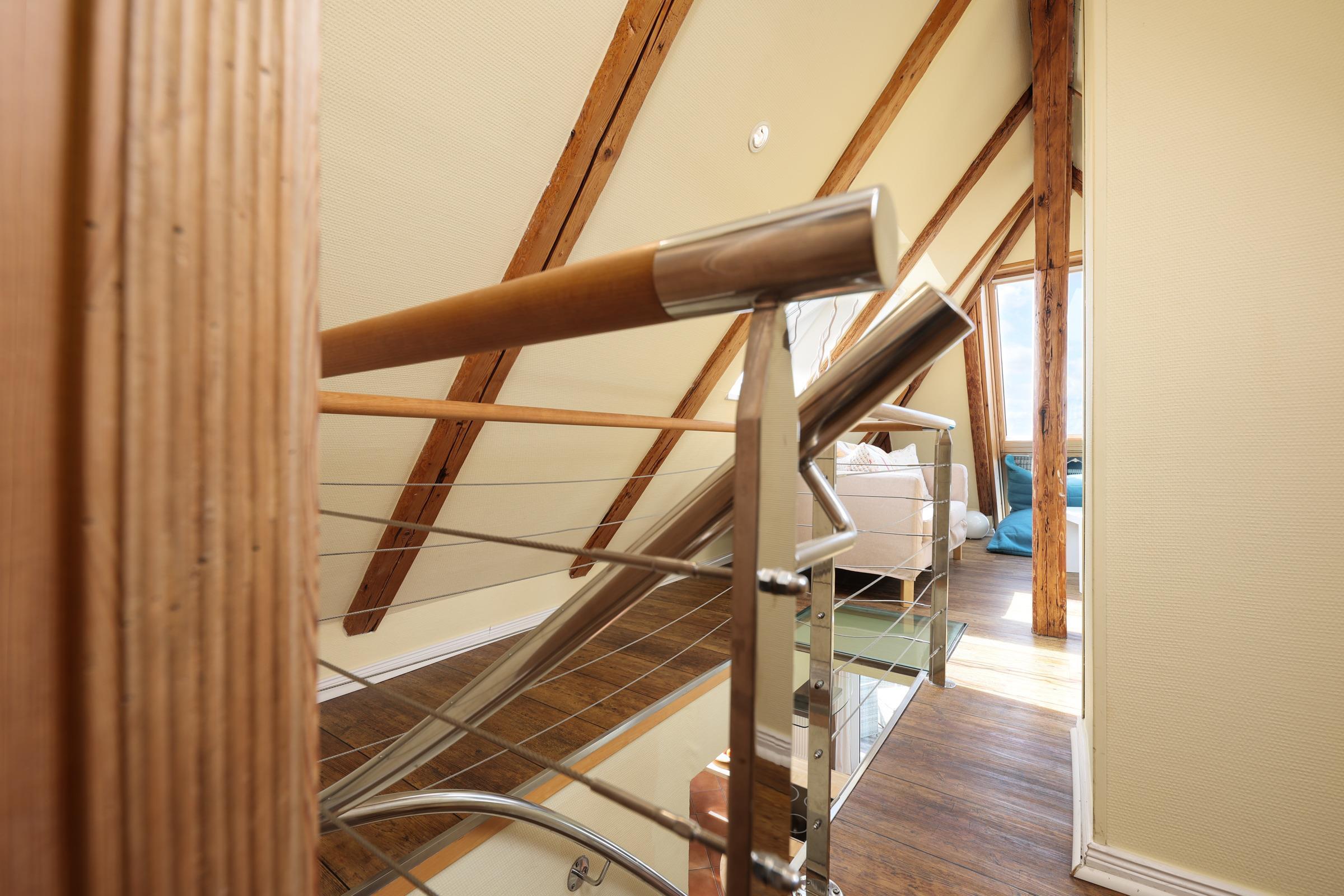 Erleben Sie einen entspannten Aufenthalt in zweiter Reihe im Herzen von Laboe. Nutzen Sie die kurzen Wege zum Strand und beobachten in luftiger Höhe von der Dachterrasse oder darüberliegend vom Cabriofenster aus vorbeiziehende, dicke Pötte, Segler & Kitesurfer - selbst das Ehrenmal von Laboe ist von hier aus gut sichtbar. Die untere Ebene verfügt über einen großzügigen kombinierten Wohn-Ess-Küchenbereich mit gemütlichen Holzbalken.. Entspannen Sie in der Sitzecke mit Smart-TV. oder kochen Sie gemeinsam in der hochwertigen Küchenzeile mit Kochinsel und Sitzplätzen. Ein Schlafzimmer mit Doppelbett (2x 90x200 cm) sowie einem Badezimmer en Suite, ein weiteres Duschbad sowie die möblierte Dachterrasse runden diese Etage ab. Über einen schmalen Treppenaufgang im Schiffsdesign erreichen Sie das Dachgeschoss in der 4. Etage. Das dortige Zweibettzimmer ist separiert vom weiteren Wohnbereich mit gemütlichen Sitzmöbeln, Flachbild-TV und vor allem dem beeindruckenden Ausblick aus dem Cabriofenster Richtung Kieler Förde.