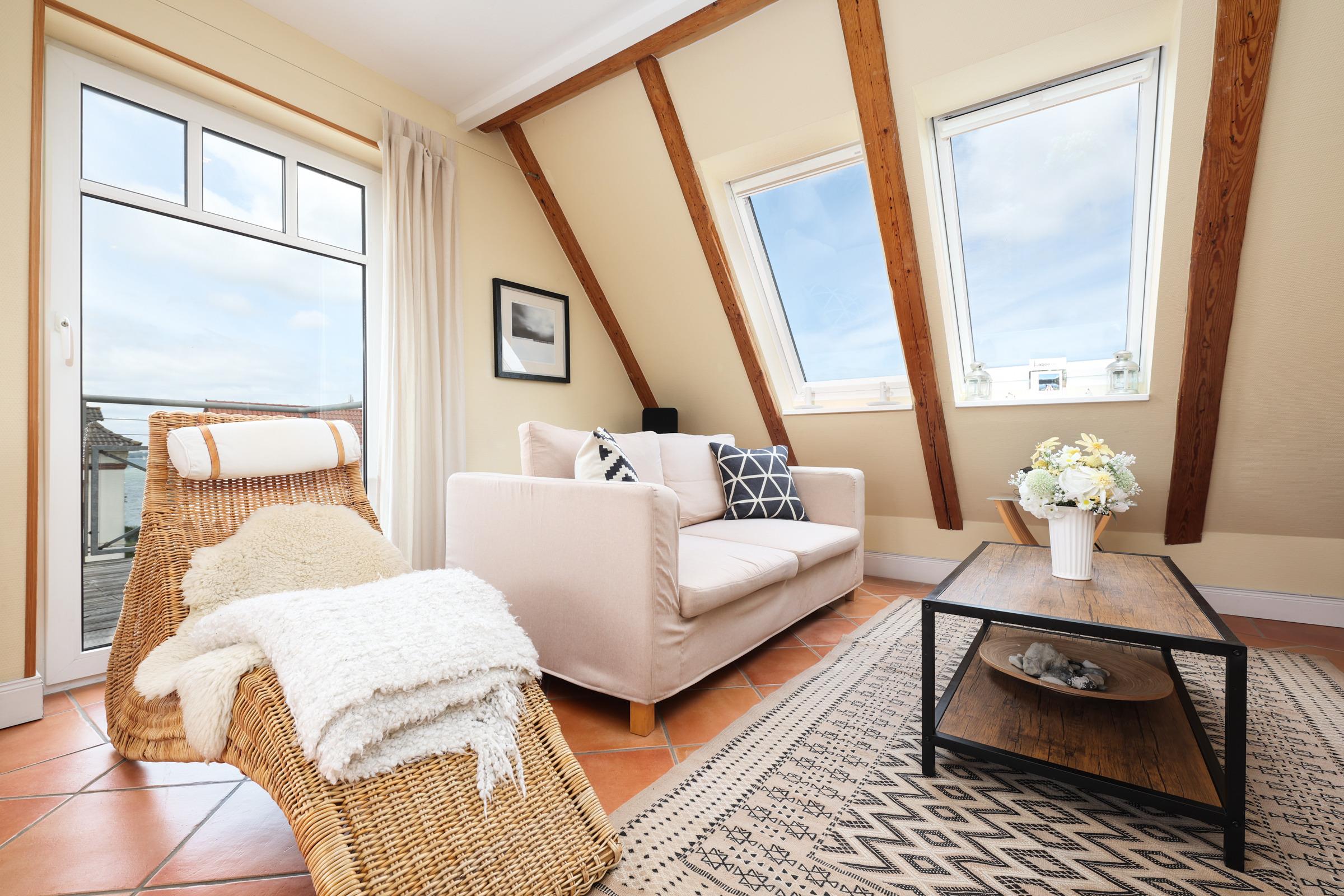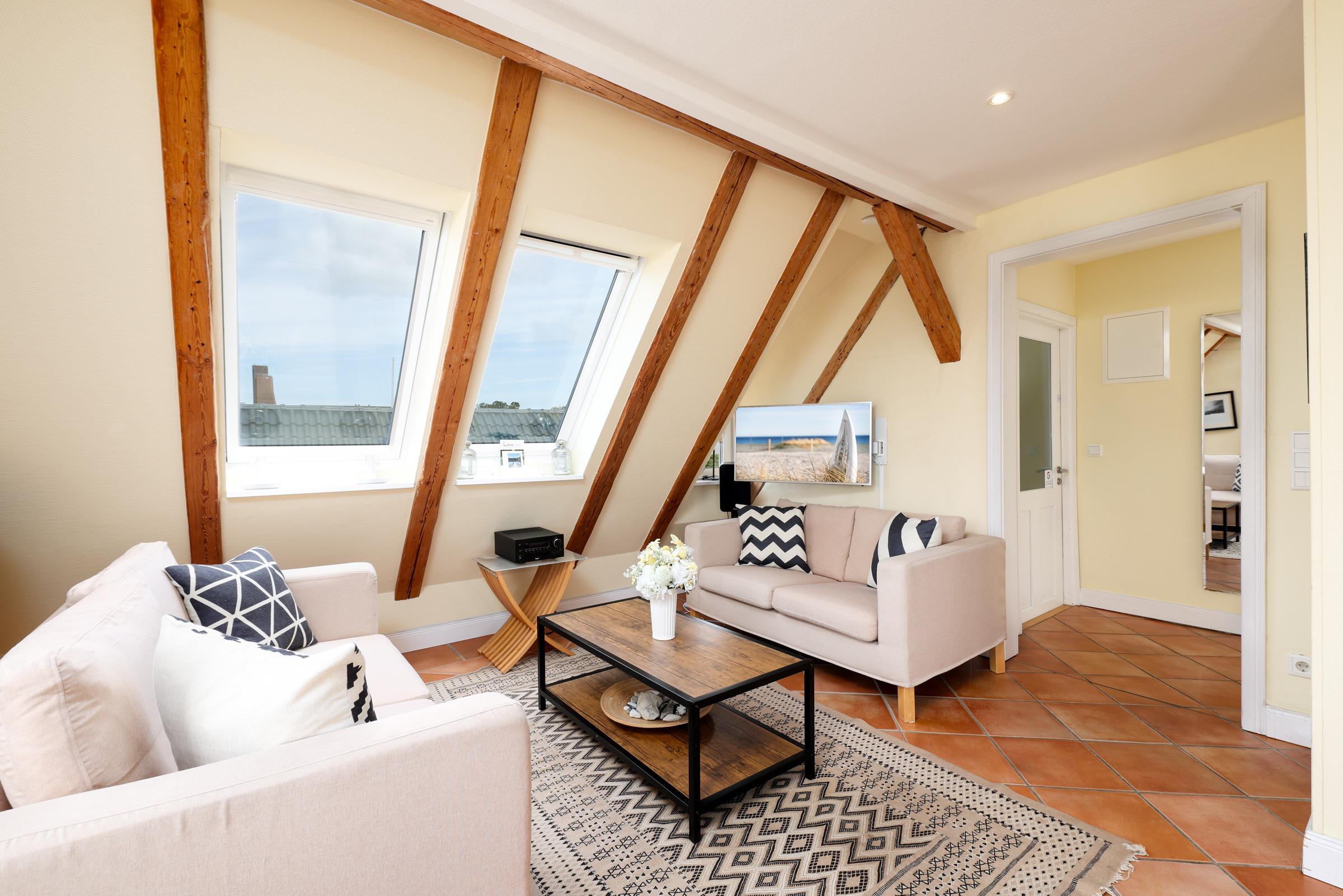 In bester Lage von Laboe: Auf ca. 85 m² erwartet Sie eine top ausgestattete 3-Zimmer-Maisonette-Ferienwohnung in der 3. Etage für bis zu 4 Personen.