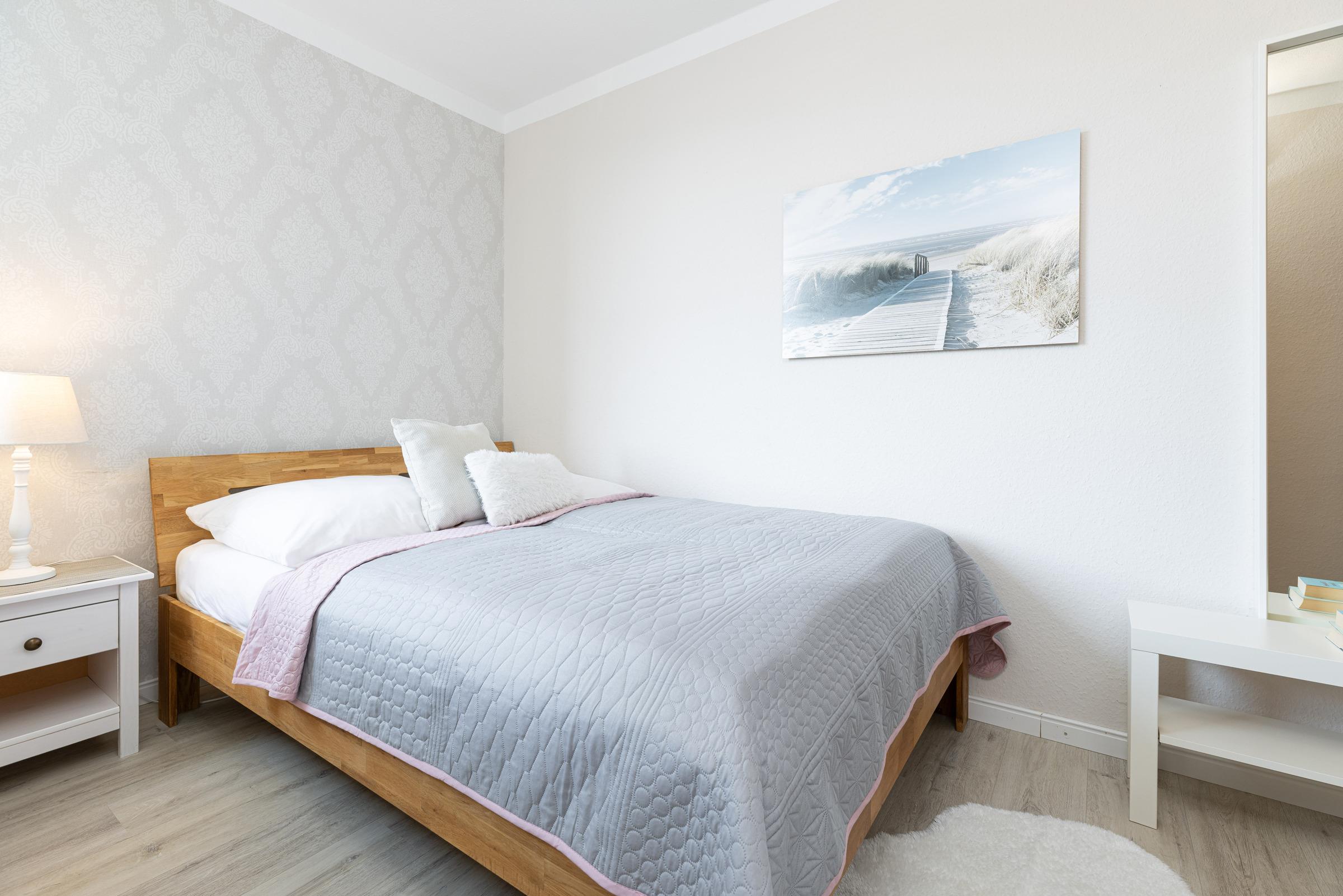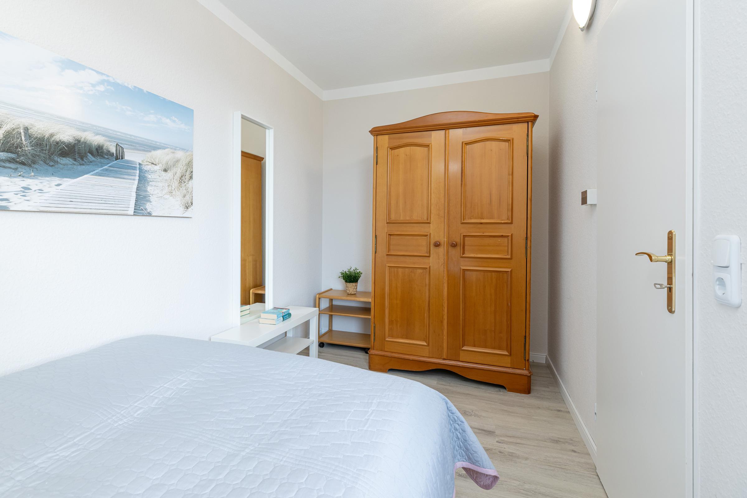 Schlafzimmer: Doppelbett (ca. 140x200 cm), Kleiderschrank