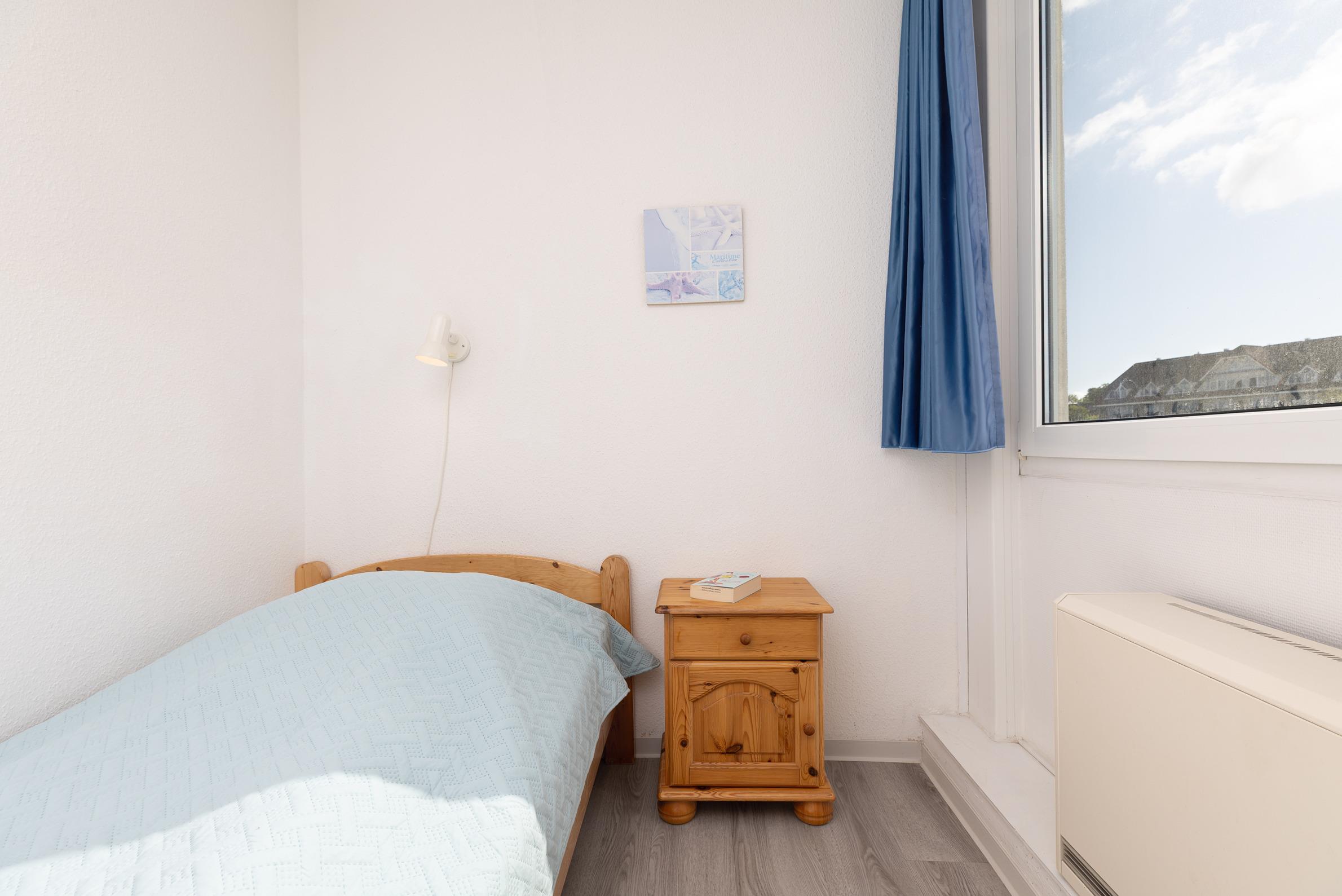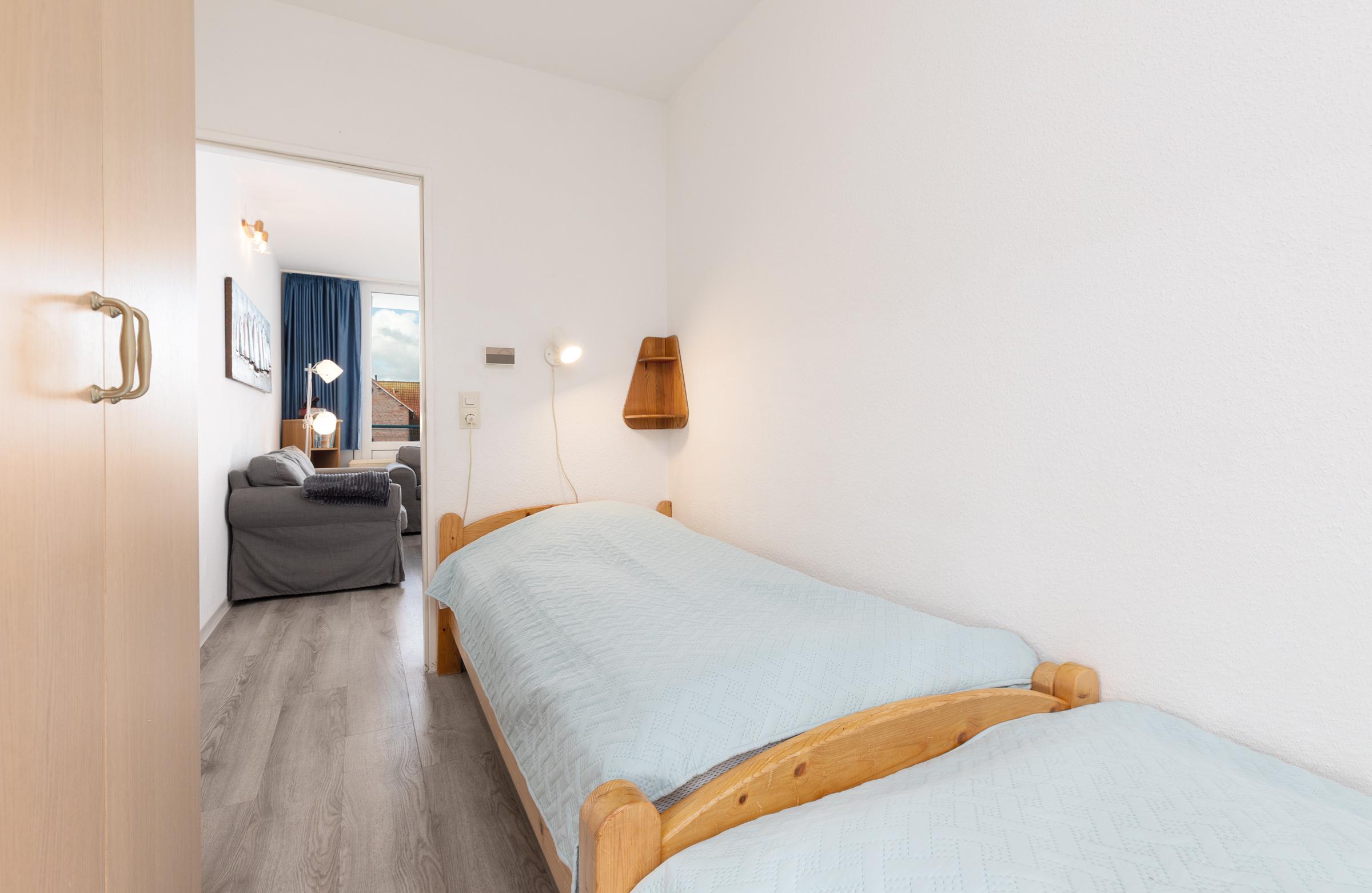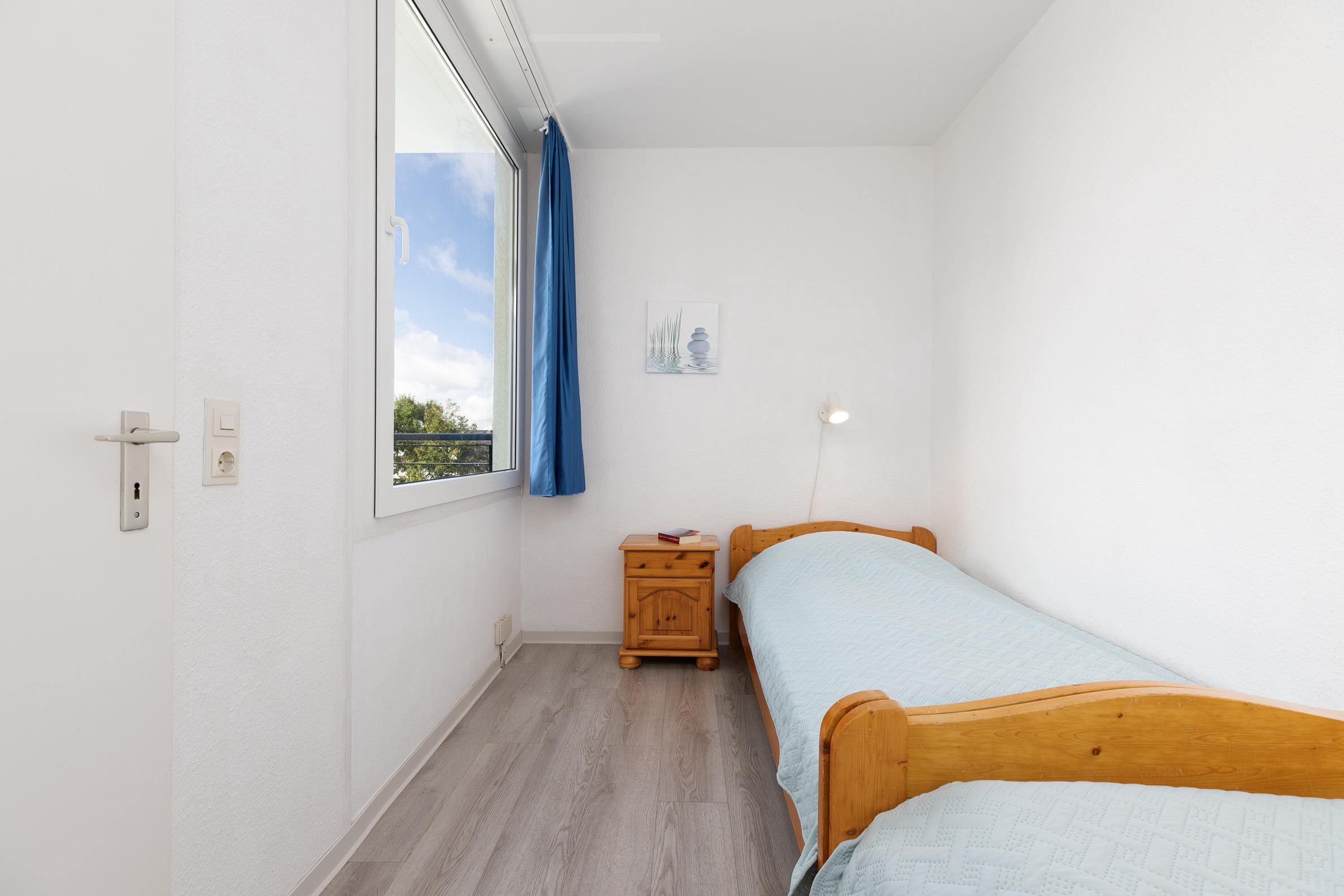Schlafzimmer 2: 2 Einzelbetten (je 90x200cm), Kleiderschrank, Verdunkelung: Vorhänge, kein Platz für Babybett vorhanden
