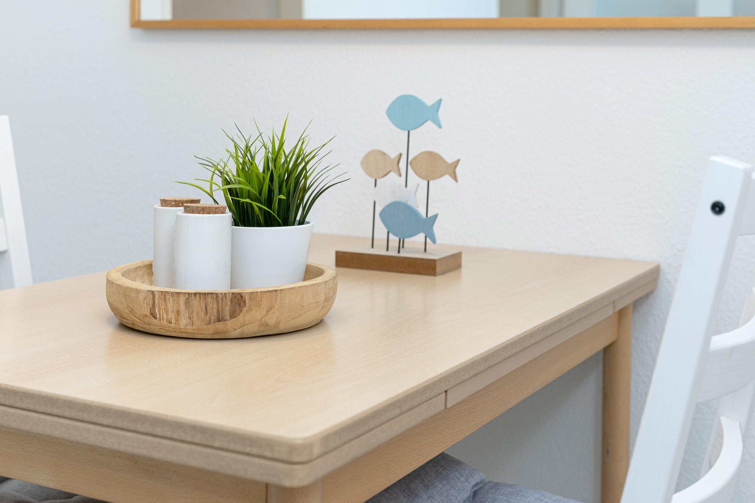Geschmackvolle 2-Zimmer-Ferienwohnung mit Balkon und Meerblick in Laboe, nahe Strand und Hafen.