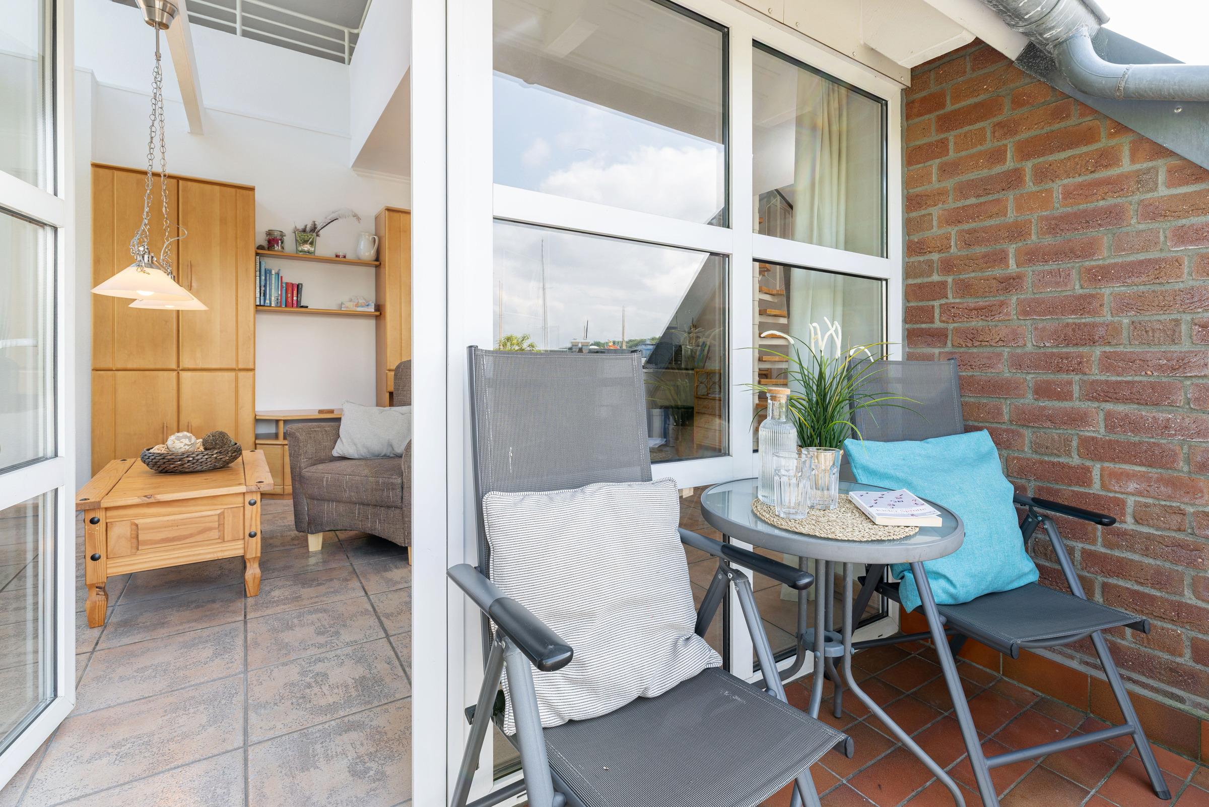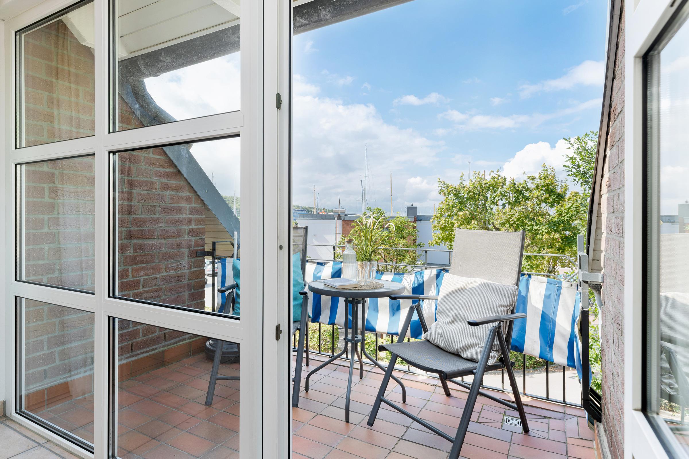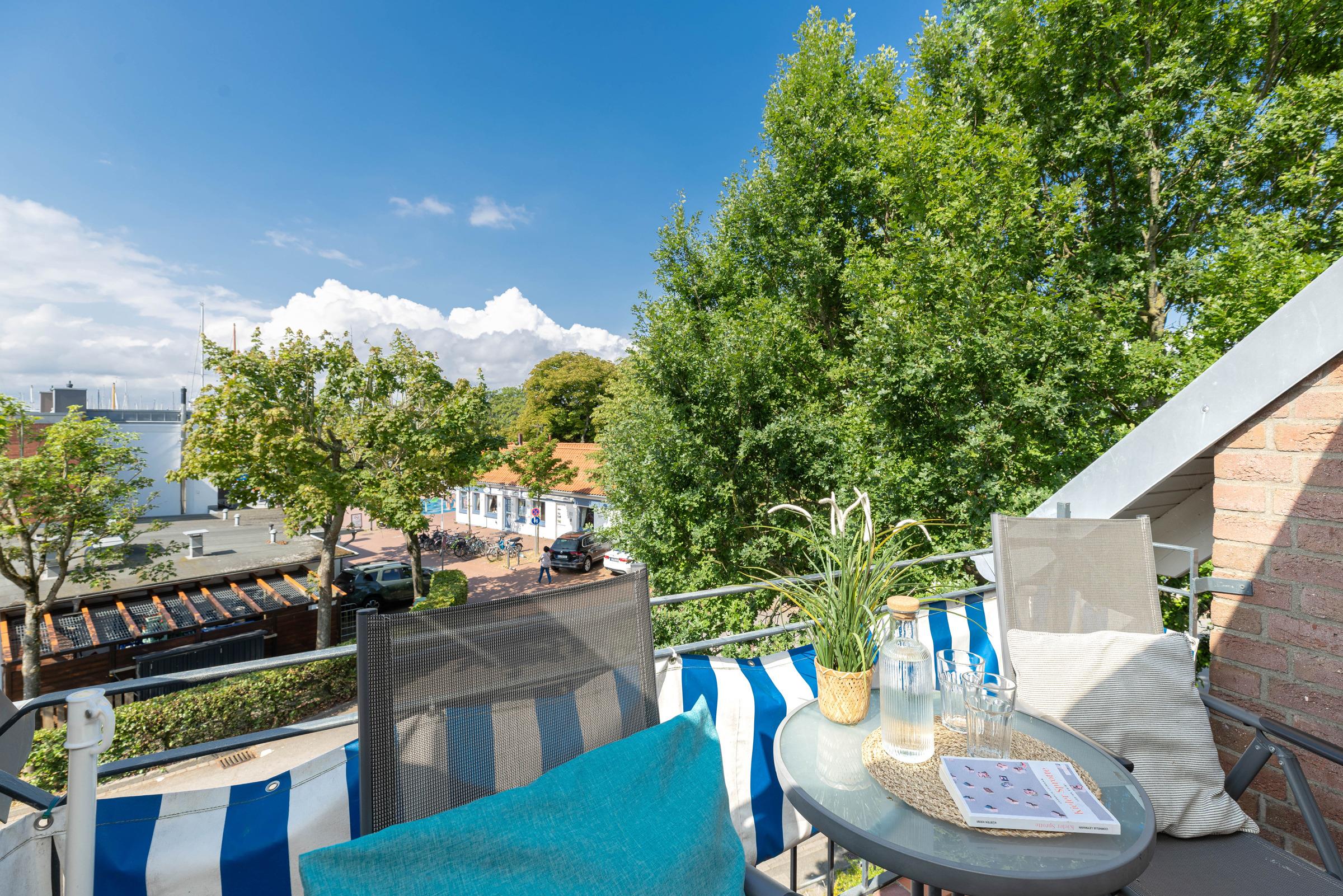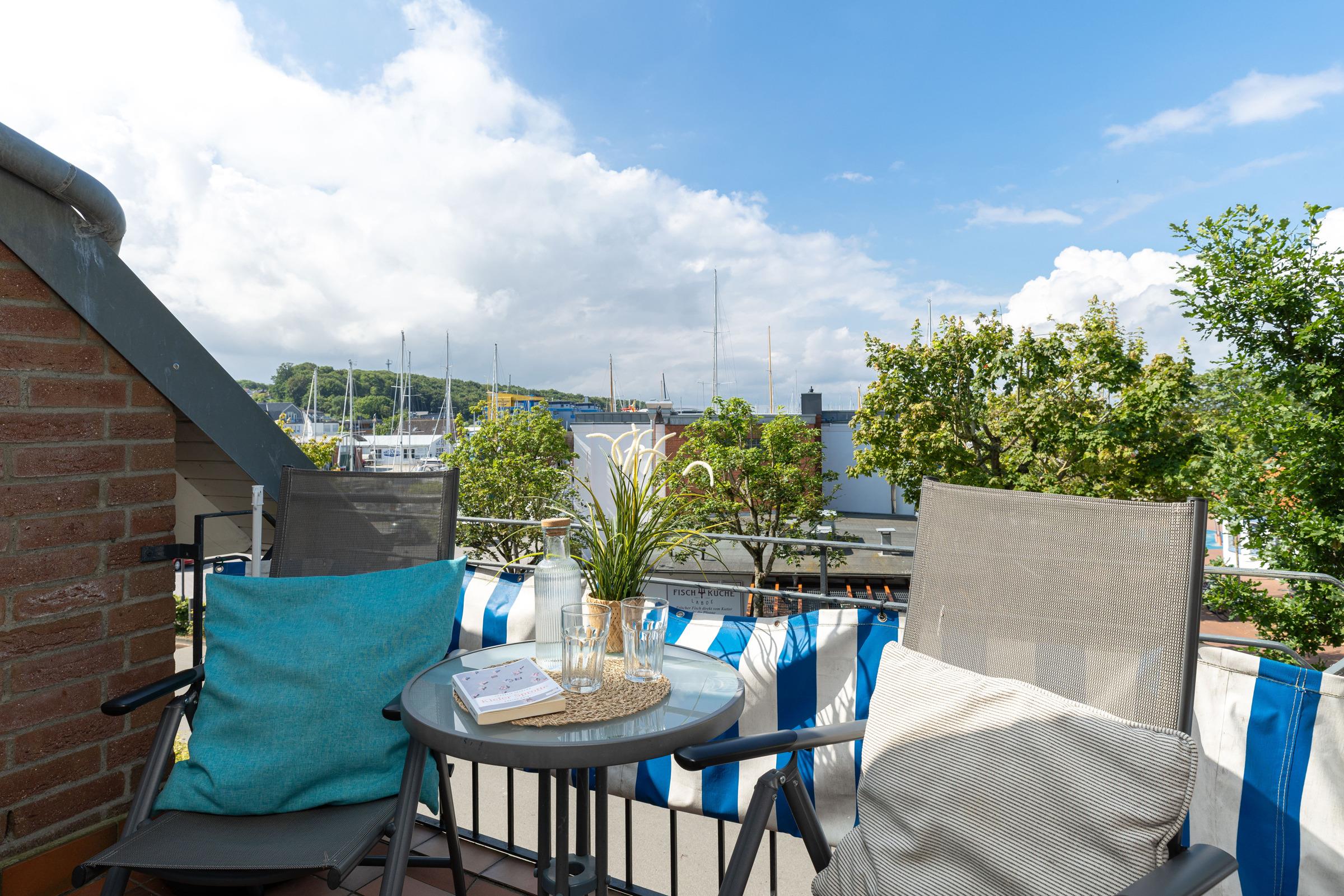 Gemütliche Maisonette-Ferienwohnung mit Balkon und Hafenblick in Laboe, direkt am Meer und strandnah gelegen.
