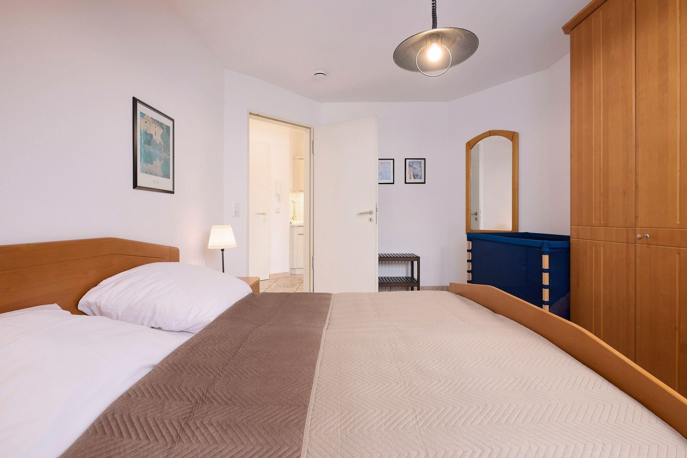 Schlafzimmer 1: Doppelbett, Kleiderschrank, Verdunkelung (Rollo)