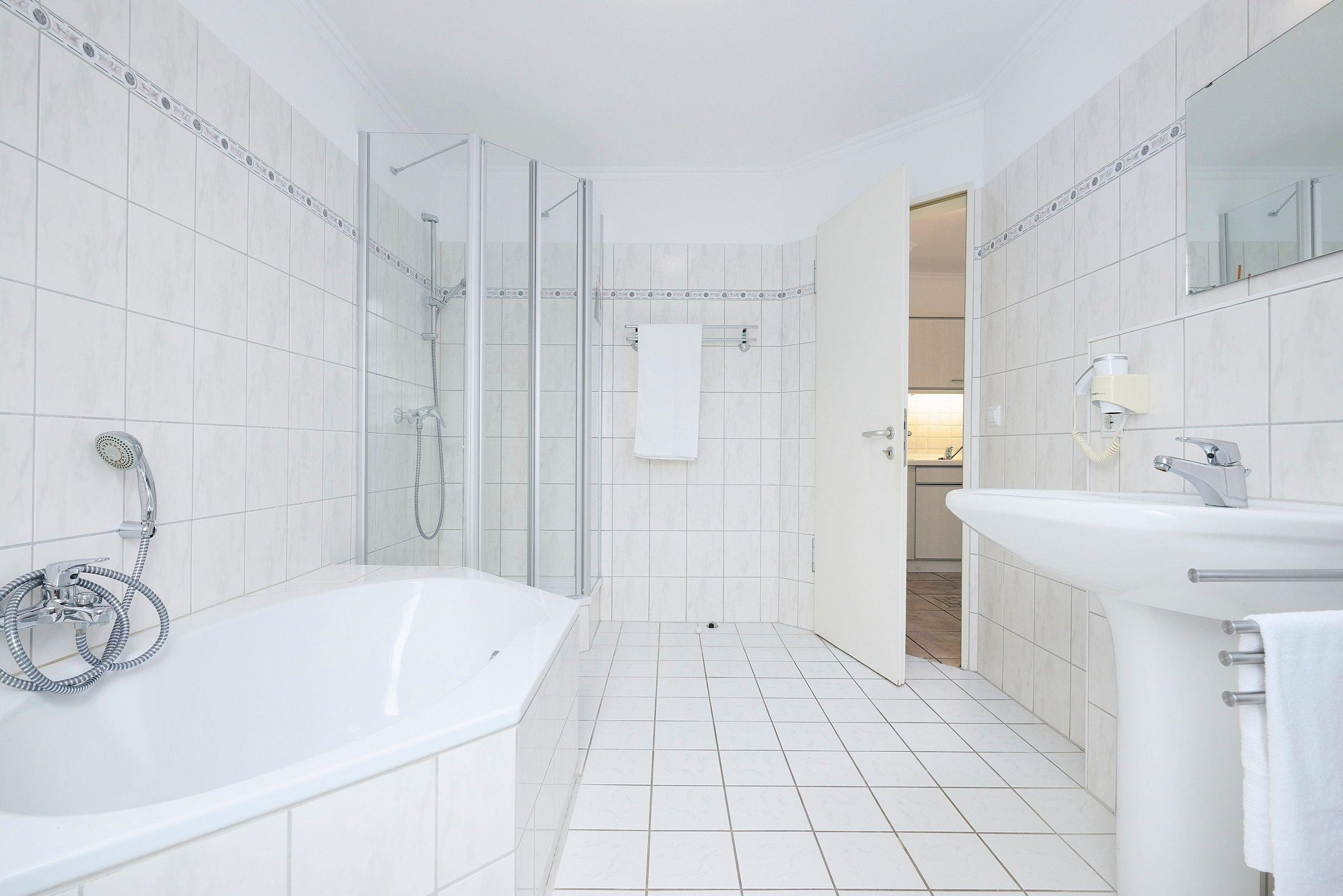 Fahrräder können im Außenbereich abgestellt werden. Im Keller stehen jeweils Waschmaschine und Trockner (Münzapparat) bereit.