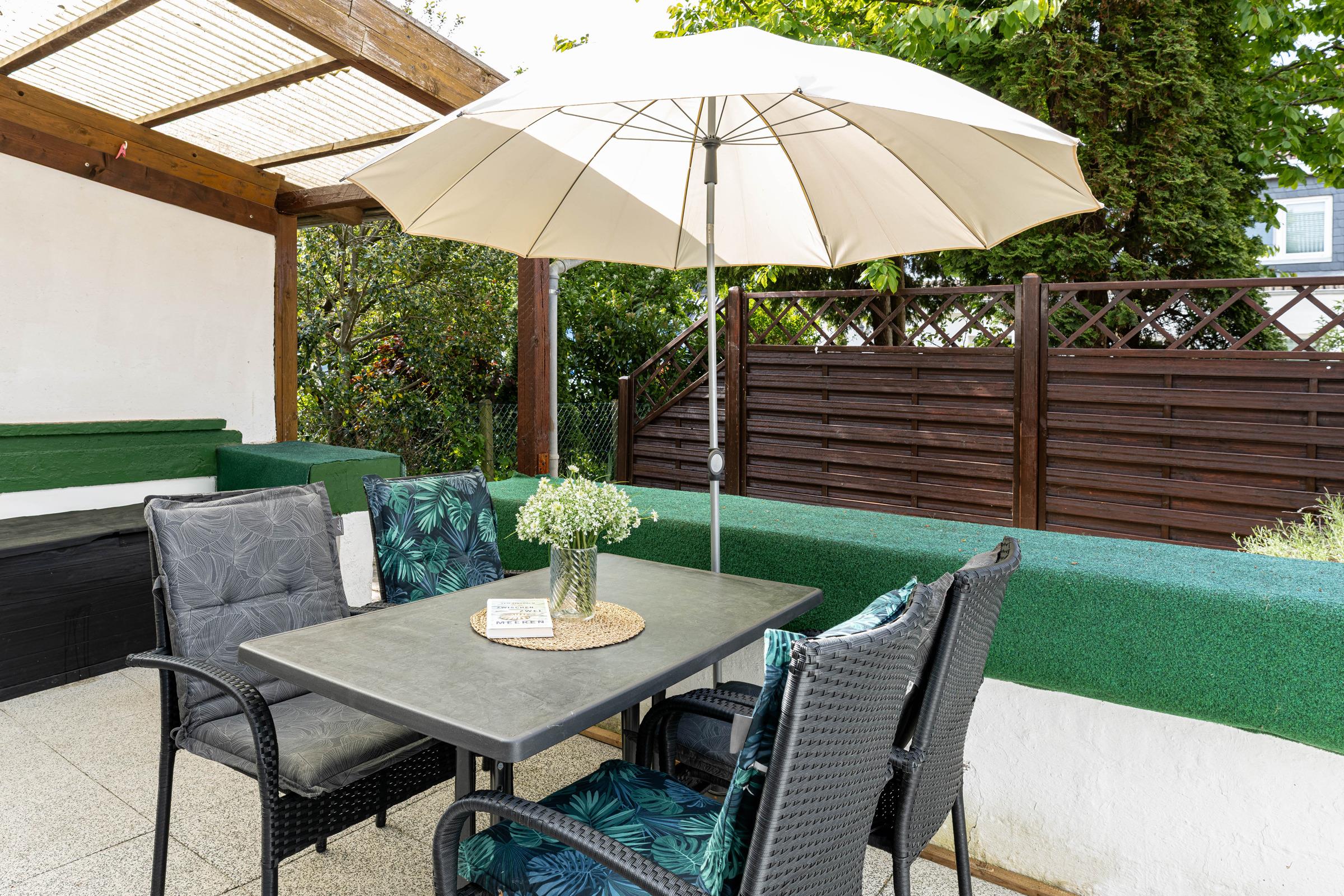 Im Erdgeschoss ist die voll ausgestattete Küche mit einer kleinen Essecke. Im Wohnzimmer haben Sie ausreichend Platz für spannende Spieleabende, kuschelige Stunden vor dem Fernseher oder genießen Sie den Abend mit einem guten Buch. Vom Wohnzimmer gelangen Sie auf die Terrasse. In der ersten Etage sind zwei separate Schlafzimmer. Ein Schlafzimmer mit Doppelbett und Kleiderschrank sowie ein Kinderzimmer mit Einzelbett und Babybettchen. Das Vollbad mit Dusche in der Badewanne befindet sich ebenfalls auf dieser Etage.