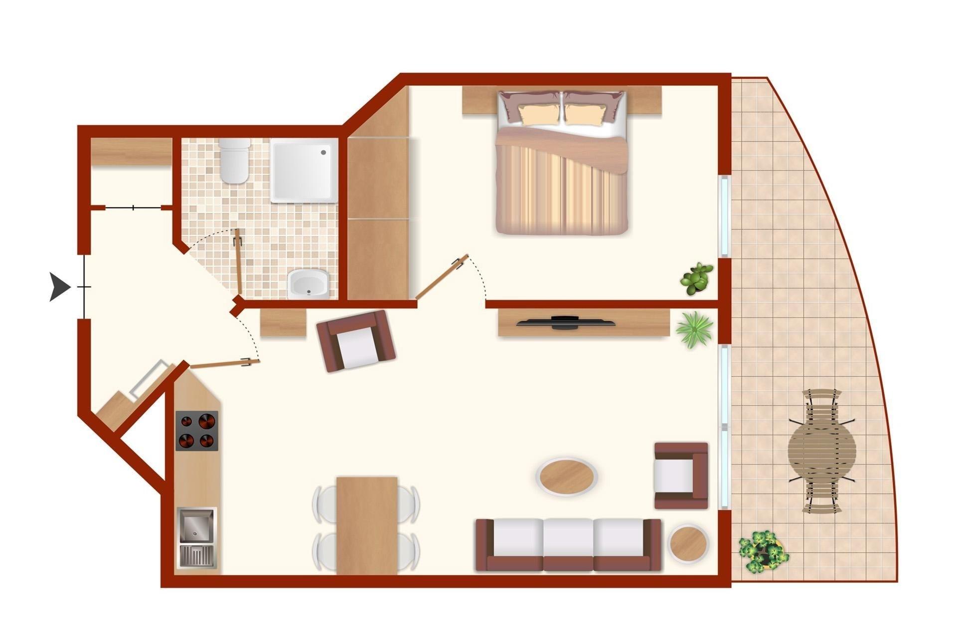 Die 40 m² große Wohnung verfügt über einen Wohn-/Schlafraum mit Schlafsofa, einen Schlafraum mit Doppelbett, Farb-TV, Stereo-Anlage, eine gut ausgestattete Küchenzeile, Essecke sowie über ein helles Badezimmer mit Dusche. Ein eigener Balkon erwartet Sie ebenfalls.