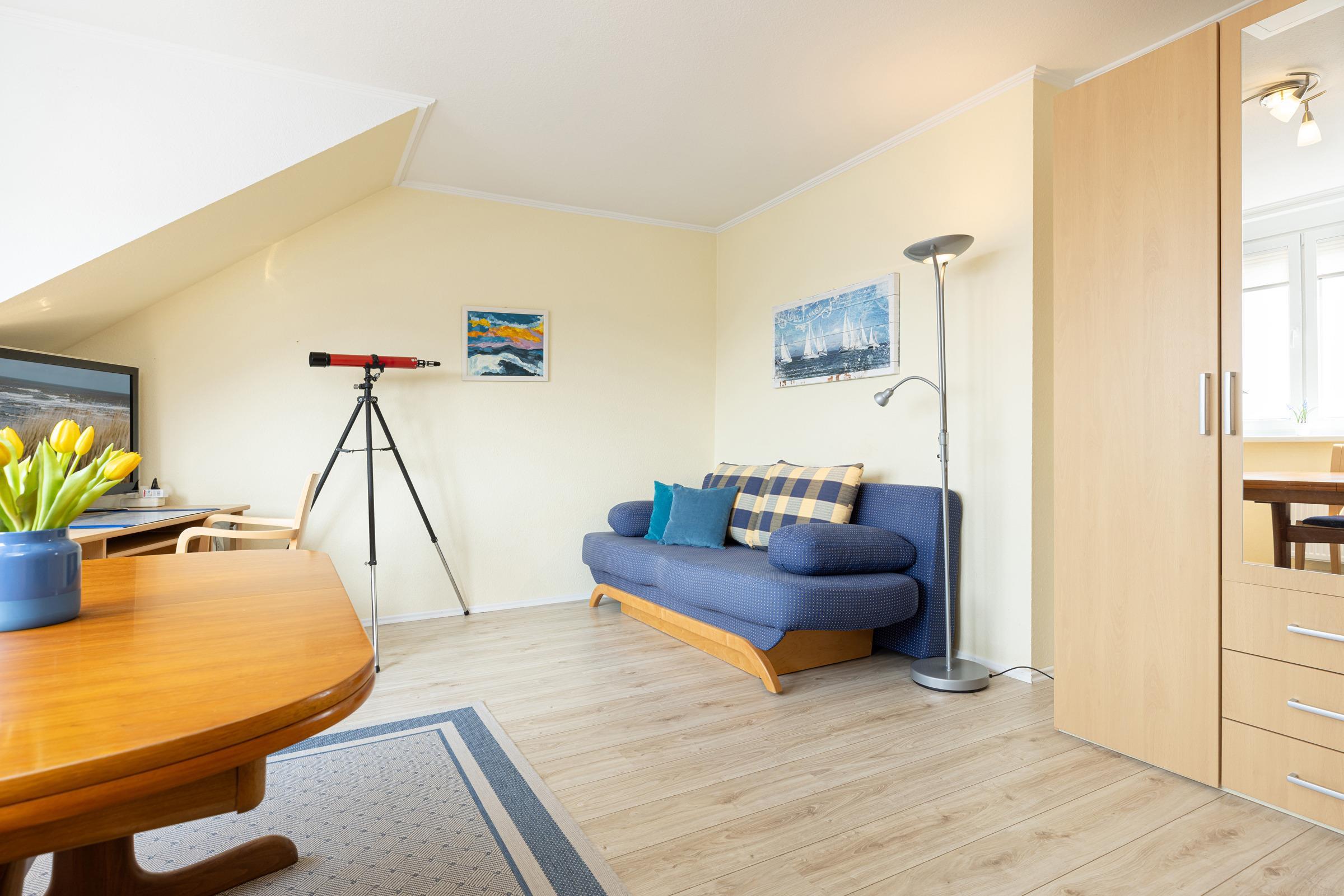 Wohnzimmer: Schlafcouch (160x190 cm), TV, Verdunkelung: Rollos