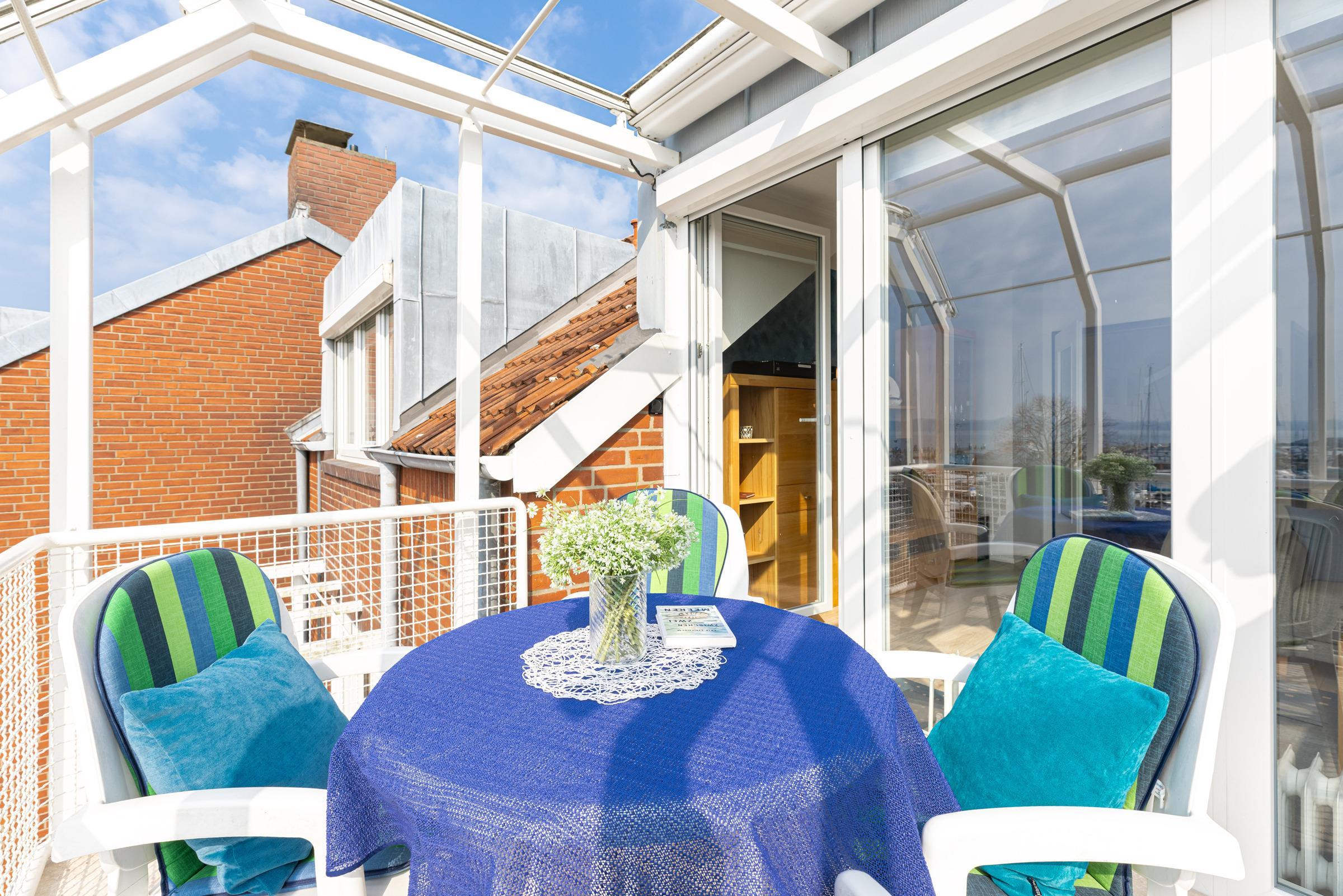 Moderne Ferienwohnung Ostseekrabbe in Laboe mit Balkon und Meerblick, ideal für erholsamen Urlaub an der Kieler Förde.