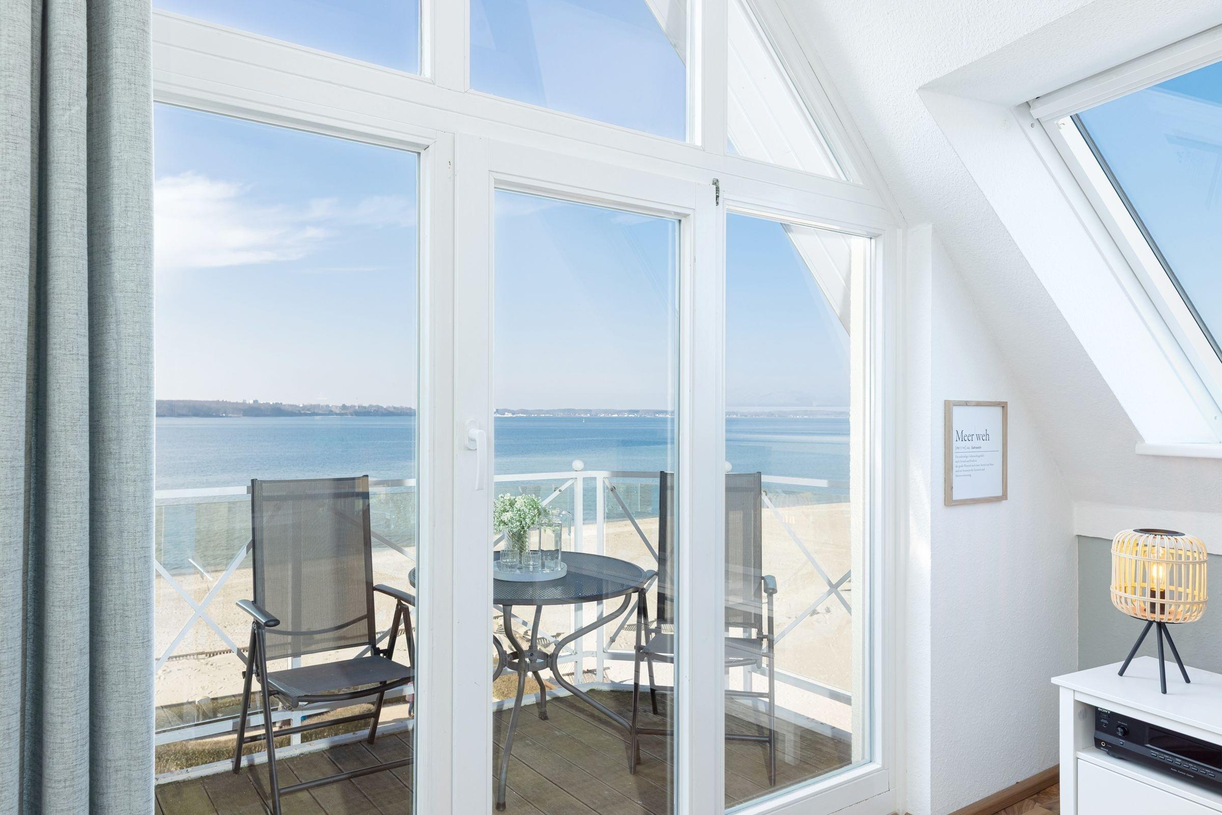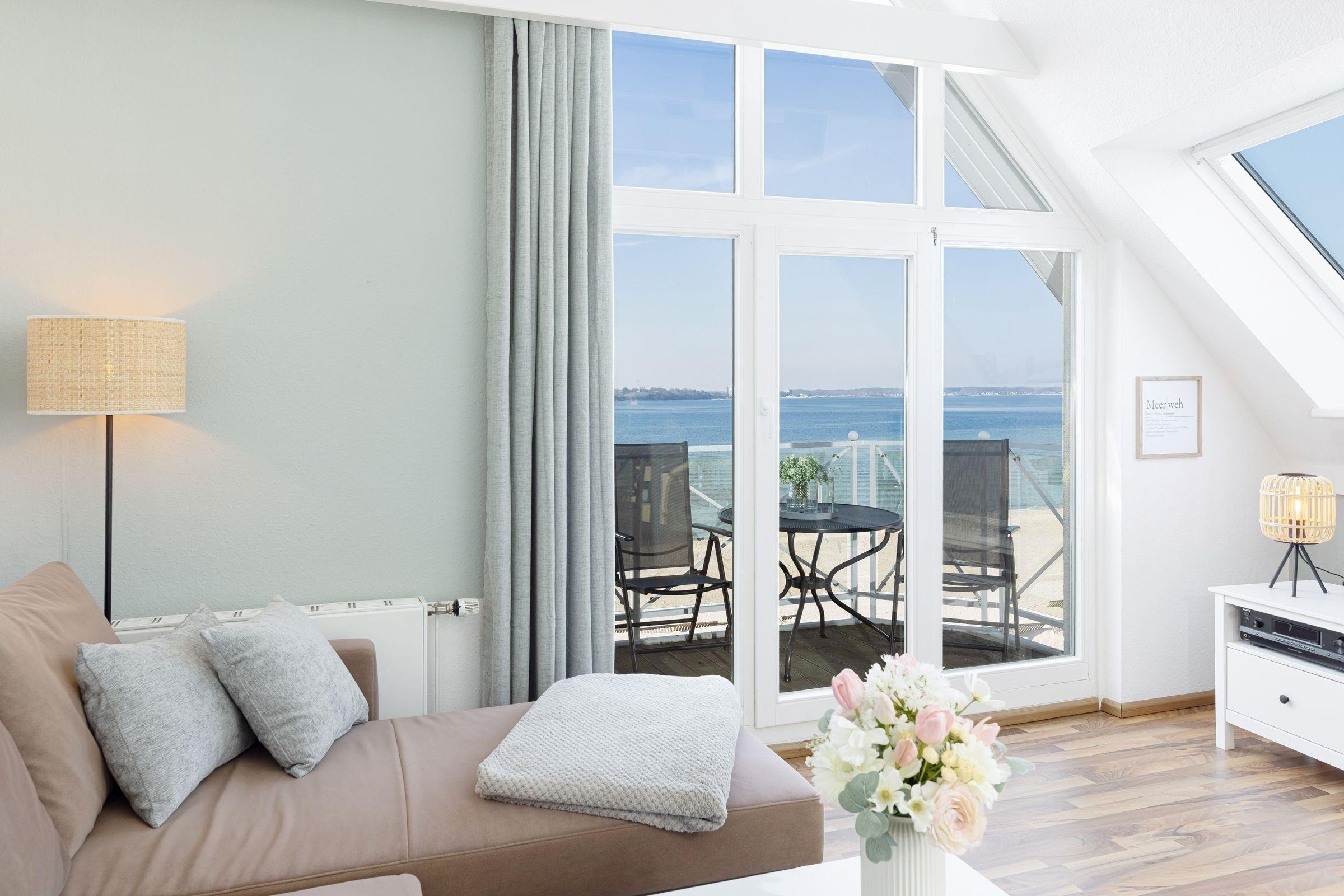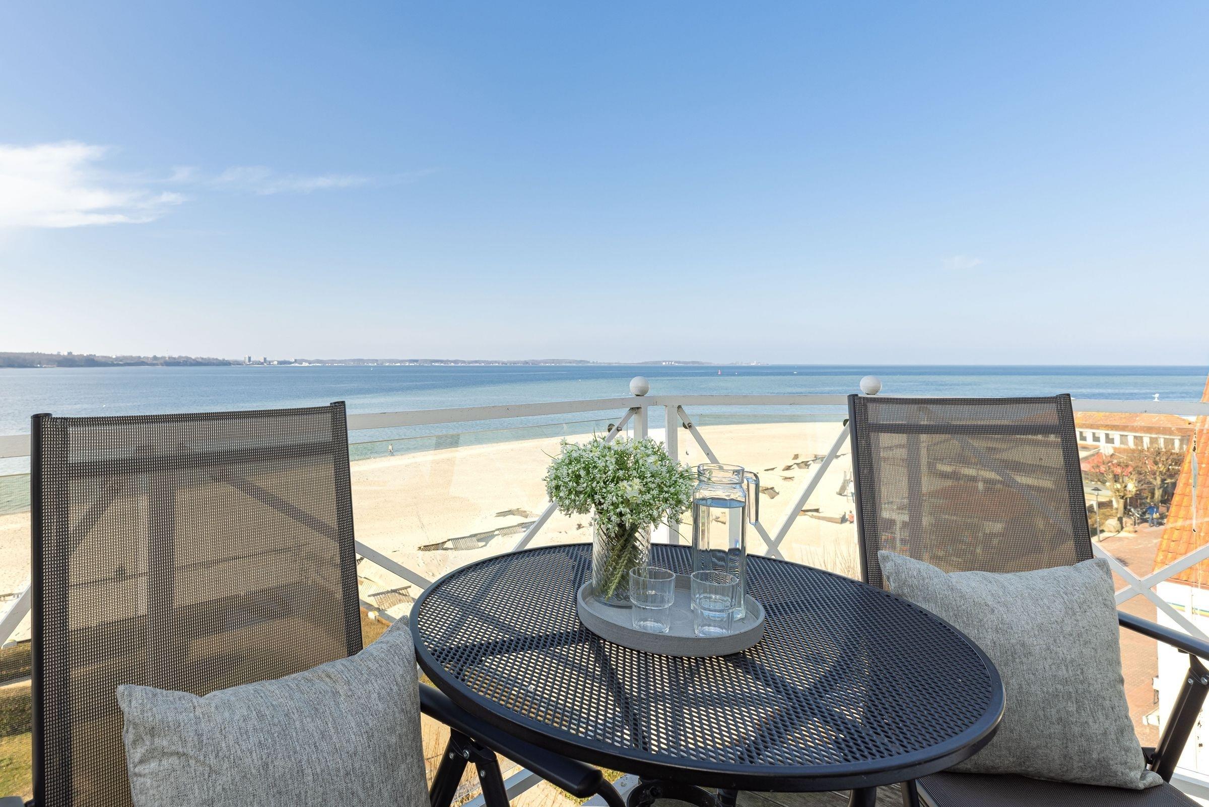 Erleben Sie die Ferienwohnung Traumsicht Laboe mit Balkon und atemberaubendem Meerblick direkt an der Strandpromenade.