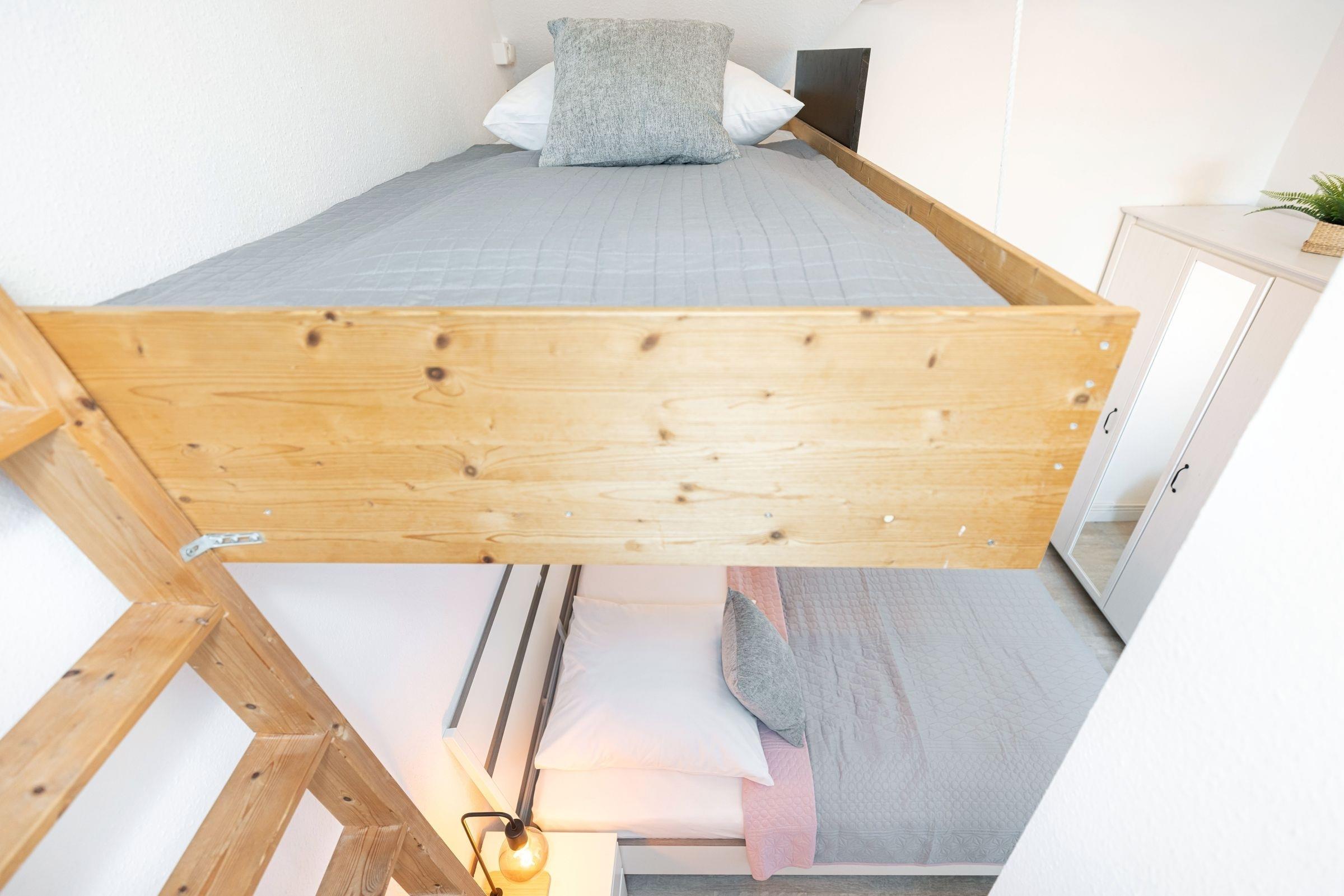 Schlafzimmer 2: Doppelbett (2x 80x200 cm), Hochbett für Kinder (ca. 100x200 cm)