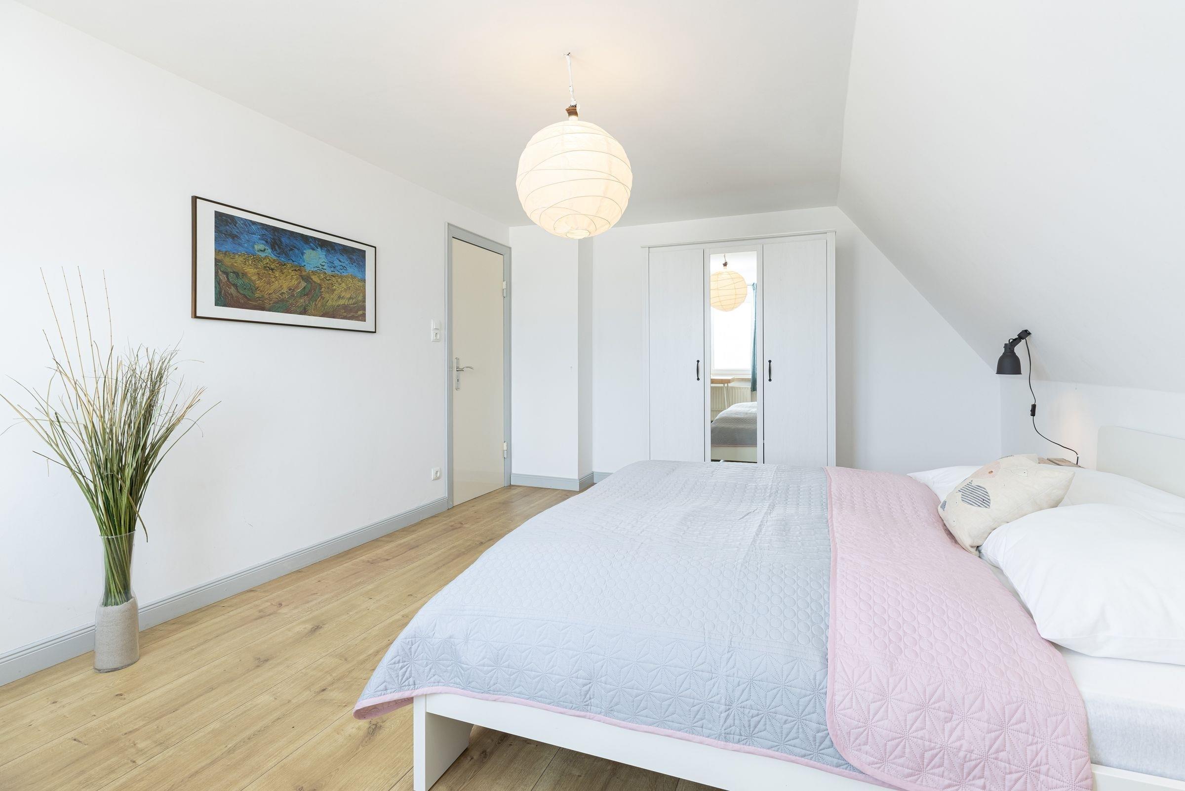 Schlafzimmer 1: Doppelbett (ca. 180x200 cm), Kleiderschrank, Verdunkelung (Vorhänge)