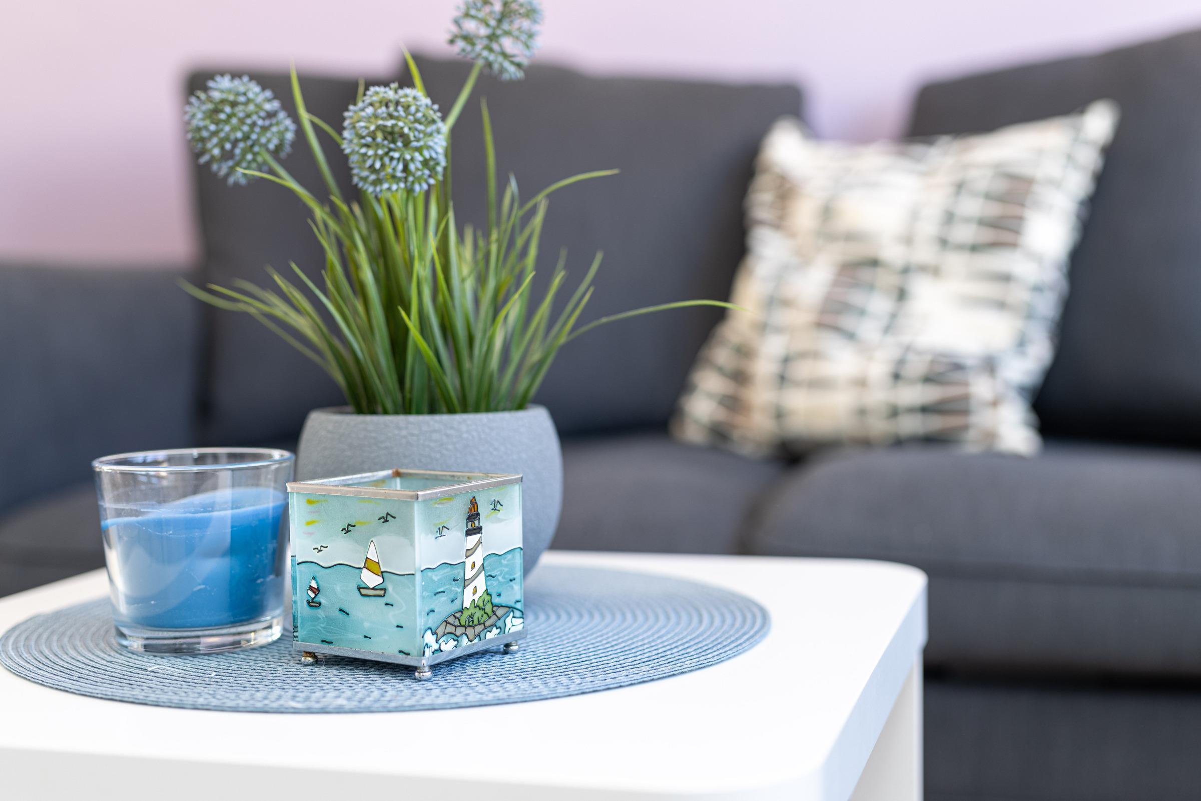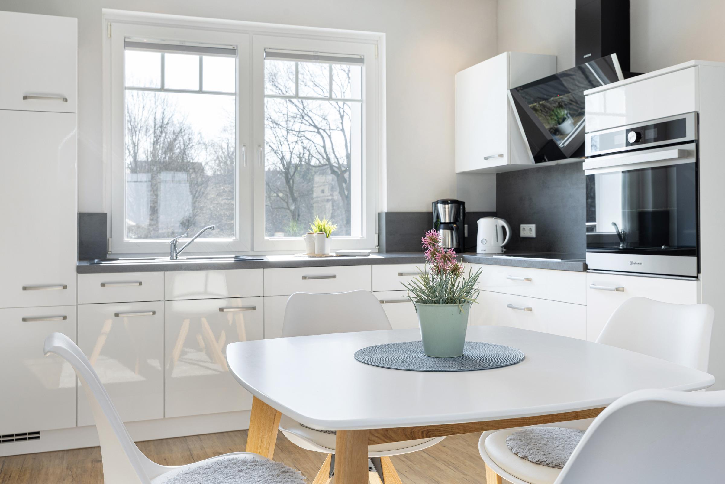 Mit viel Herzblut wurde die für 2 Personen ausgelegte Wohnung in der 1. Etage eines kleinen Mehrfamilienhauses eingerichtet. Charme & Gemütlichkeit, gepaart mit moderner Ausstattung und dazu Blicke auf die Förde und einen großen Garten und den dahinterliegenden Kurpark.