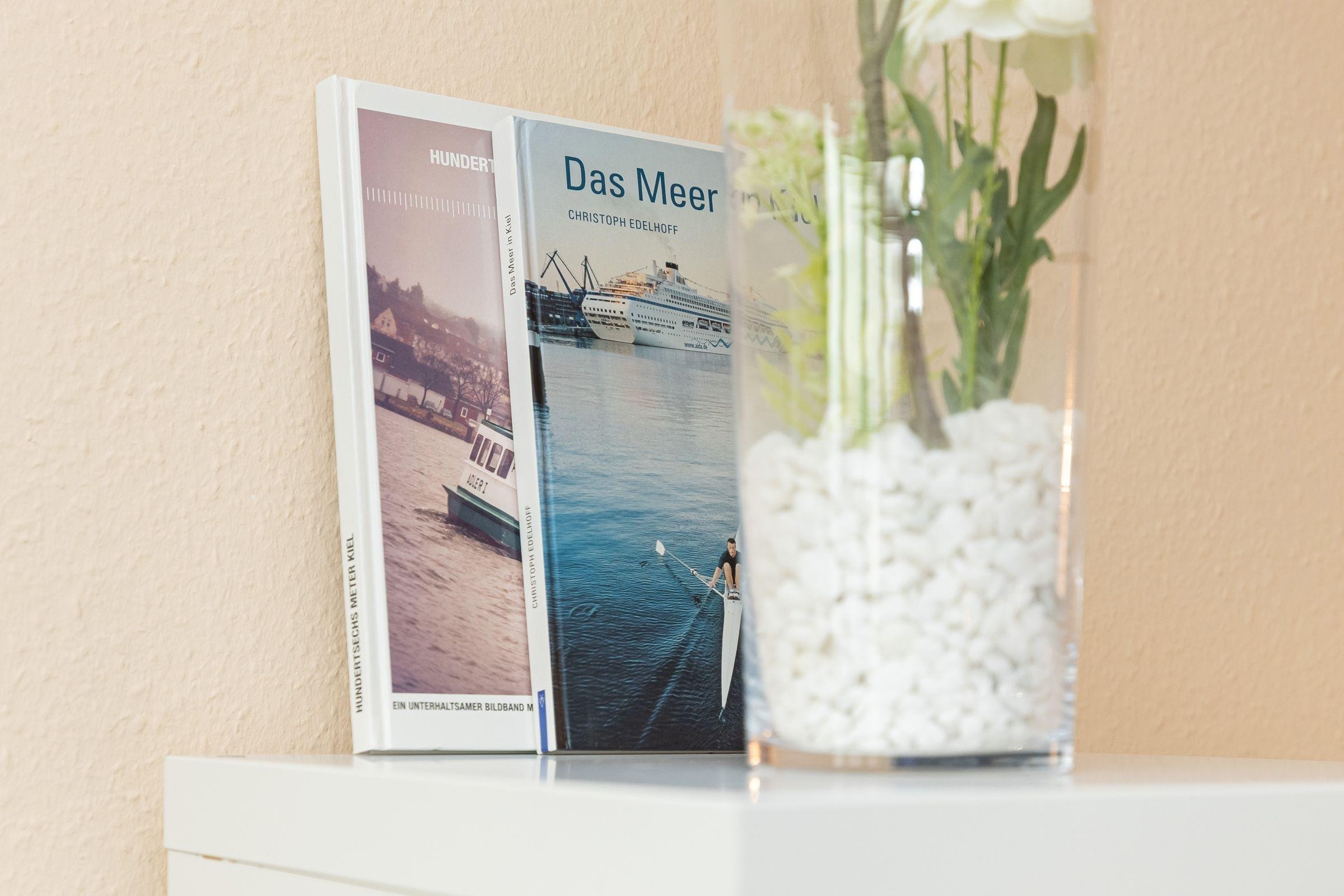 Moderne Ferienwohnung in Laboe mit seitlichem Meerblick und Strandlage.