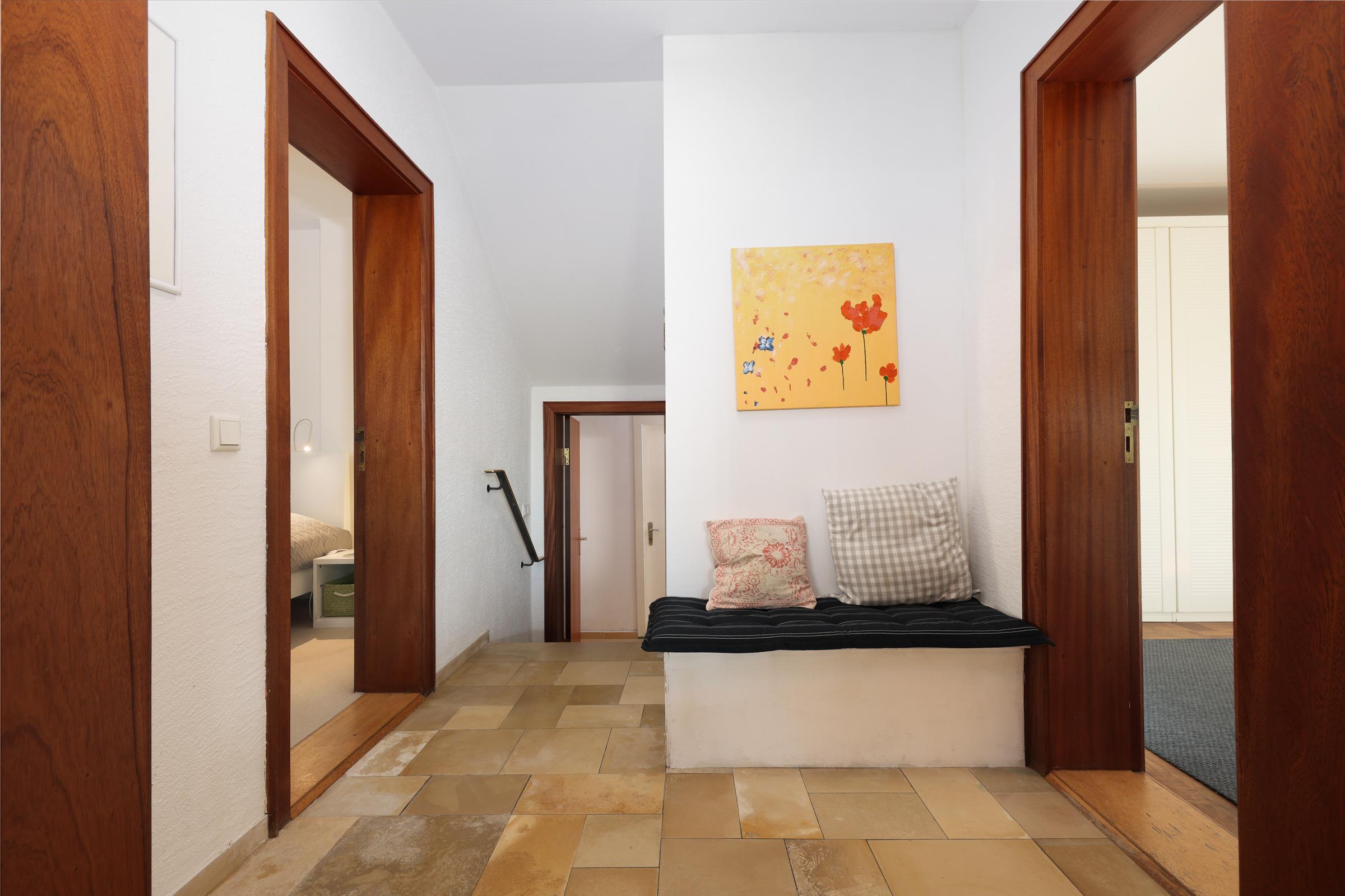 Für Ihr Auto und Fahrrad ist ebenfalls gesorgt. Es befinden sich ein Autostellplatz und eine überdachte Abstellmöglichkeit für das Fahrrad direkt vor dem Haus. Gehbehinderte möchten bitte darauf achten, dass das Appartement nur über eine etwas steilere Außentreppe zu erreichen ist.