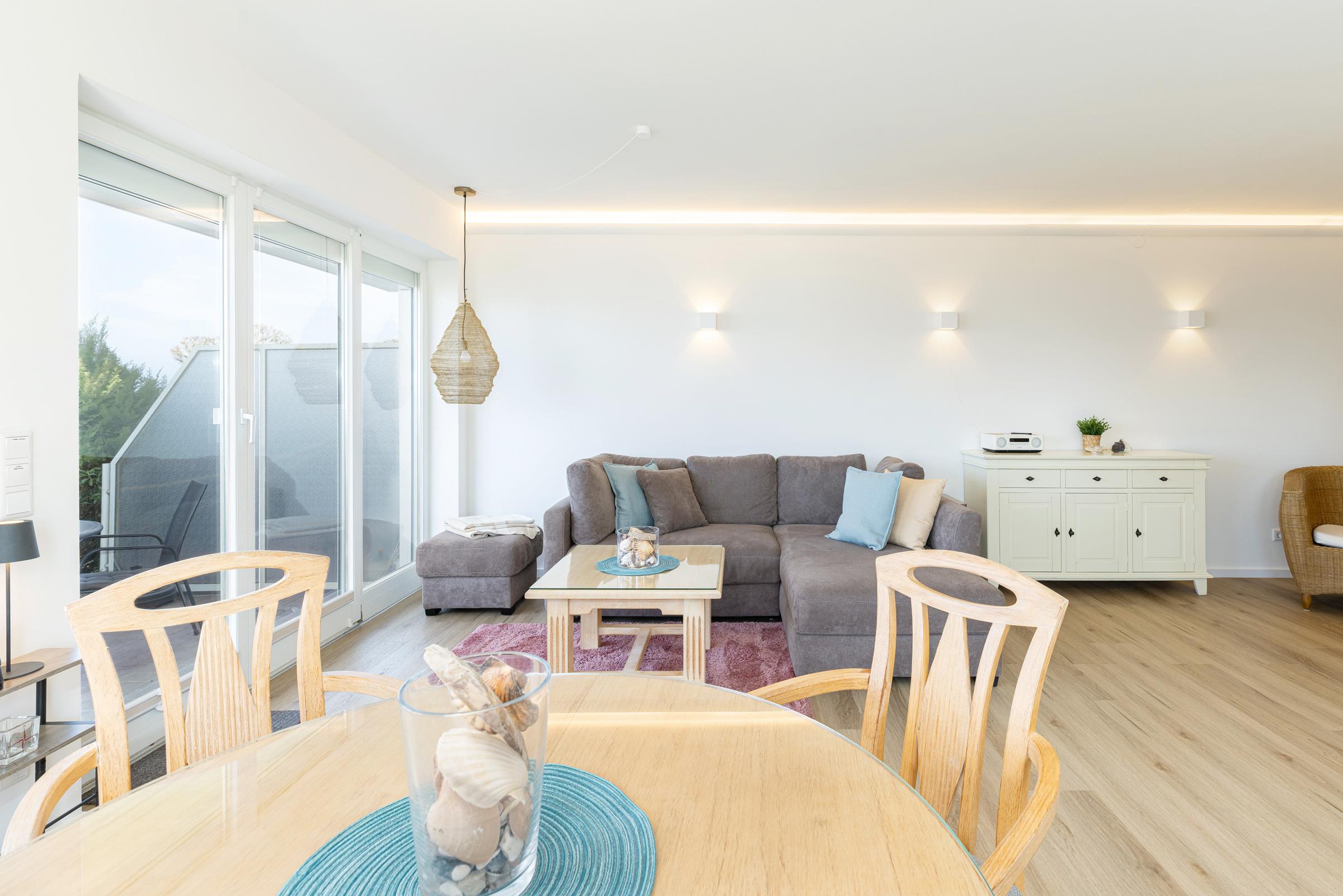 Exklusive Ferienwohnung Sehpferdchen mit Terrasse und Meerblick in Laboe, direkt an der Strandpromenade.