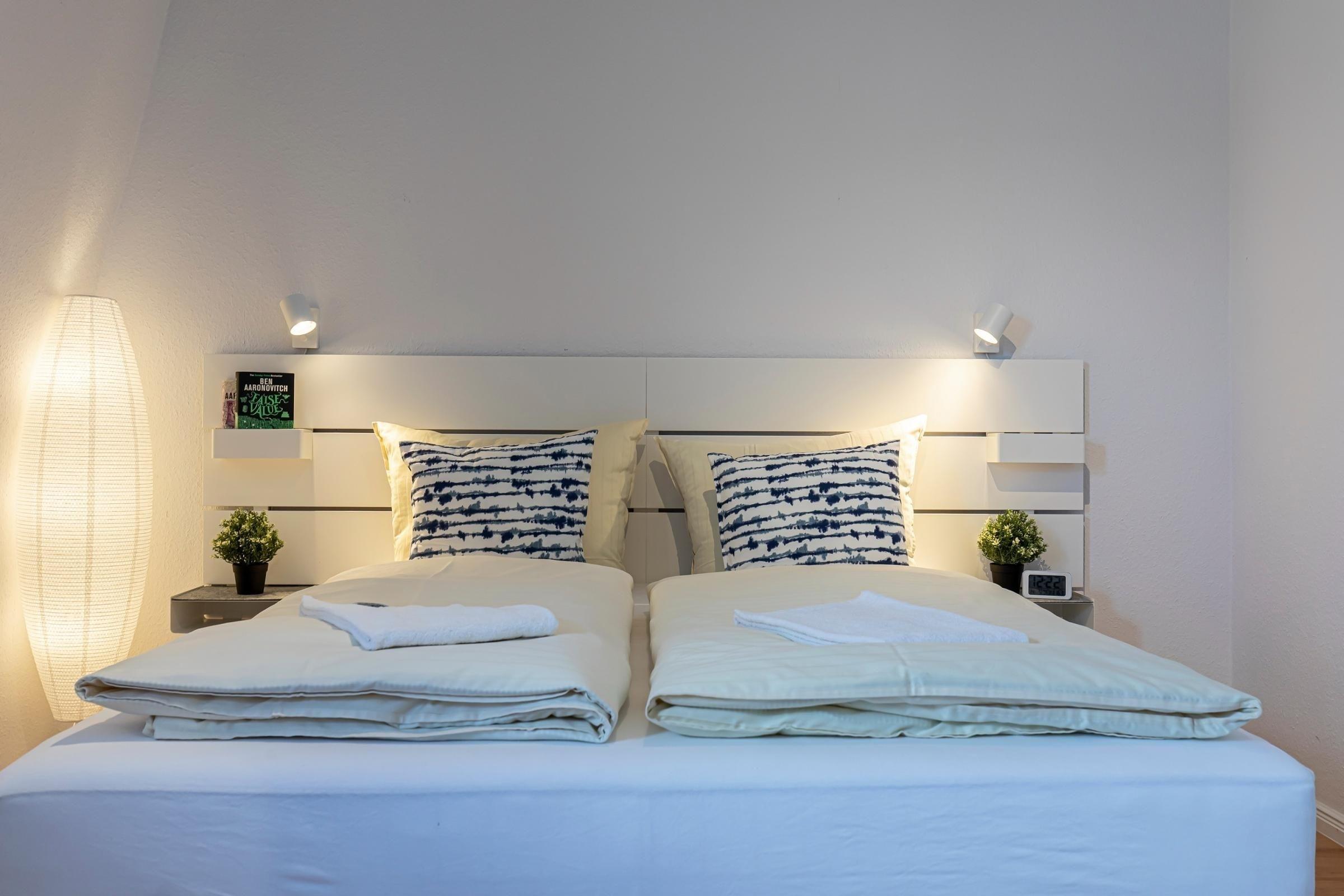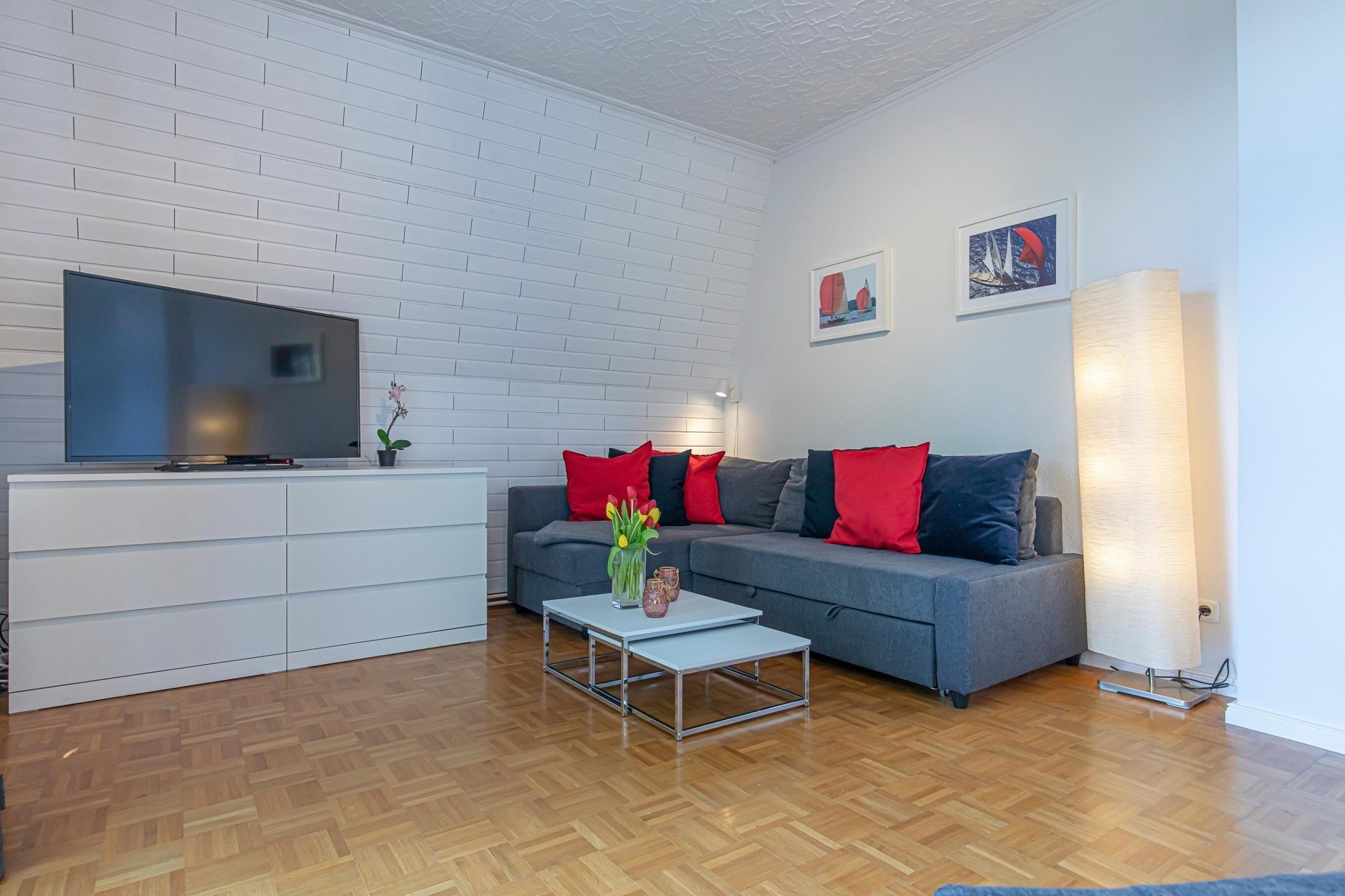 Diese Wohnung bietet Ruhe und Entspannung und ist dabei nur wenige Meter von Strand und Hafen entfernt. Vom Wohnzimmer aus erstreckt sich der Sonnenbalkon (morgens und ab dem frühen Nachmittag) mit eigenem Strandkorb. Die Wohnung verfügt über ein Schlafzimmer mit großem Doppelbett (160x200 cm) und Kleiderschrank, ein kombiniertes Wohn-und Schlafzimmer mit bequemer Schlafcouch und eine separate, moderne Küche mit eigenem Essbereich. Das WC befindet sich in einem separaten Zimmer und das ebenfalls moderne Badezimmer mit fast ebenerdiger Duschwanne, großem Spiegel und Fenster runden Ihren Aufenthalt ab.