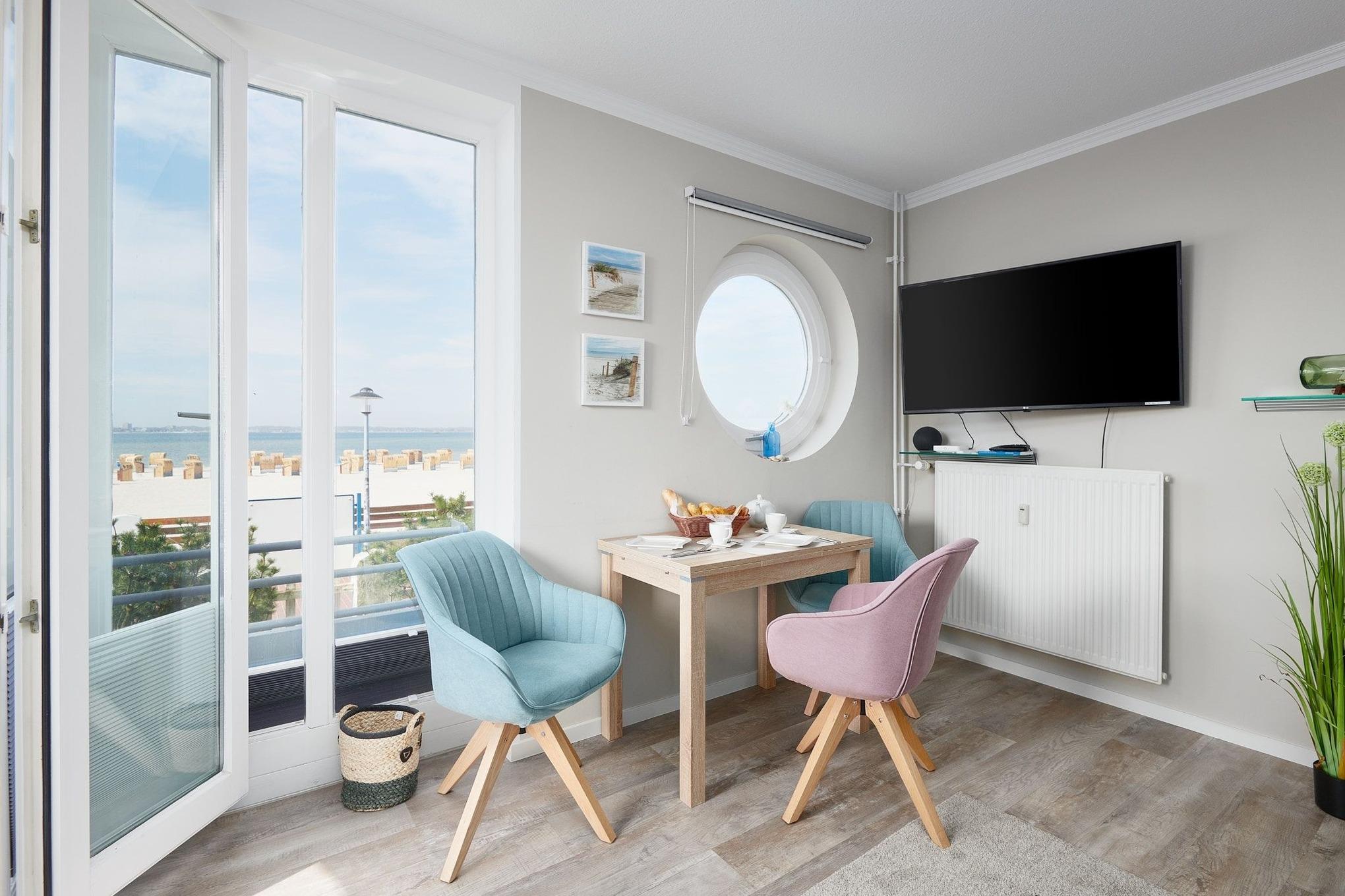 Moderne Ferienwohnung mit Balkon und Meerblick in Laboe, ideal für erholsame Strandtage und Naturerlebnisse.
