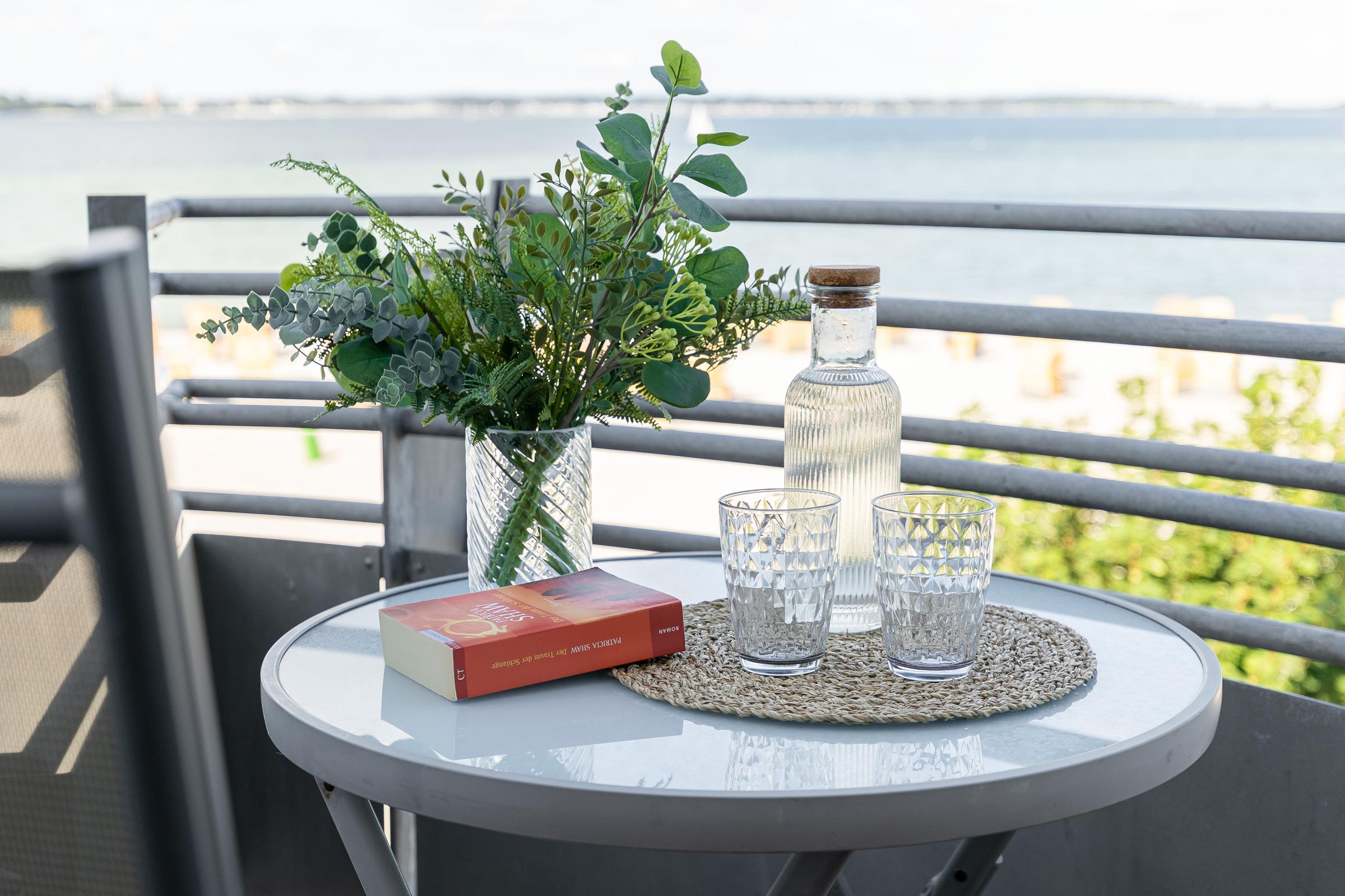 Maritime Ferienwohnung Passat mit Balkon und Meerblick in Laboe, nur wenige Meter vom Strand entfernt.