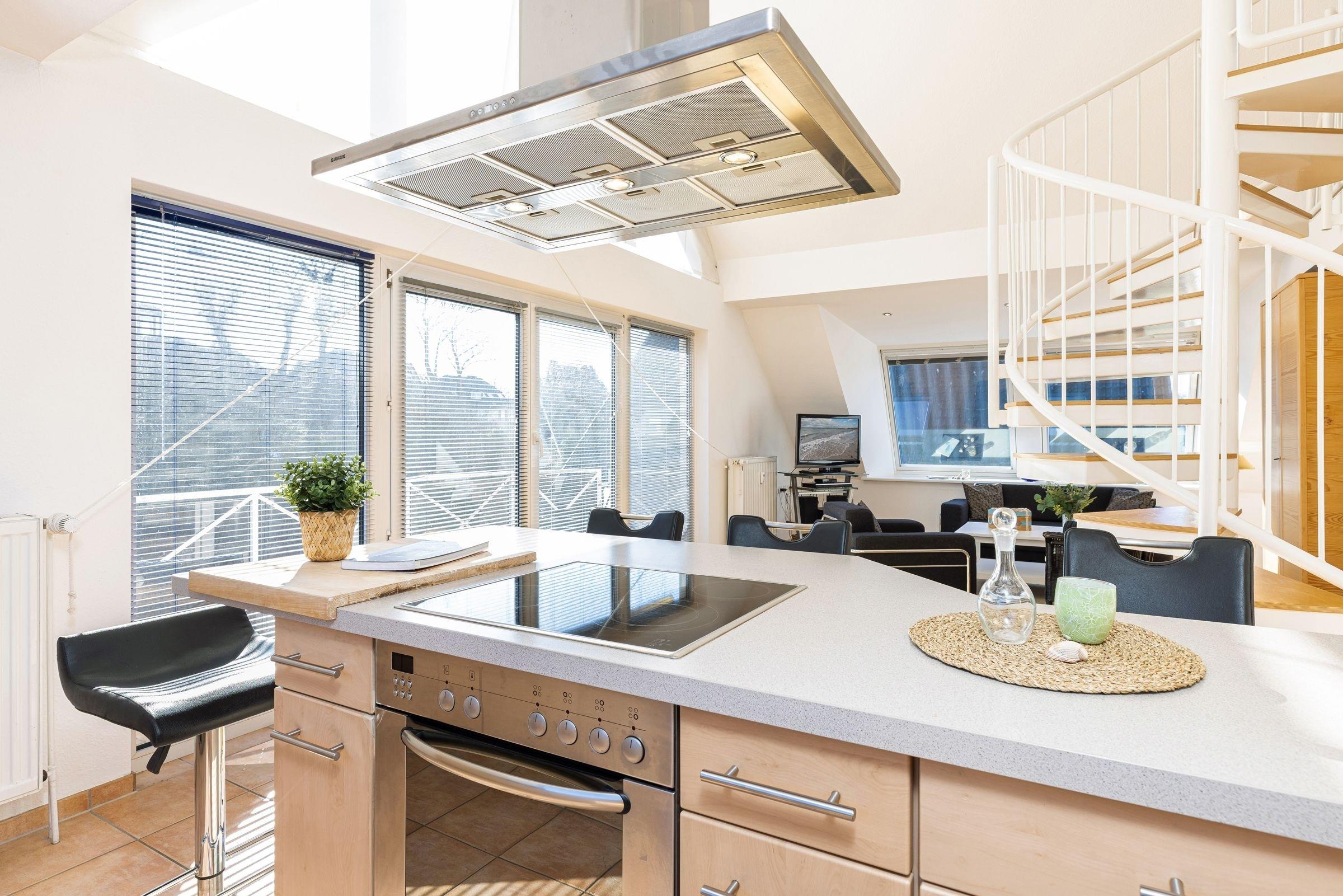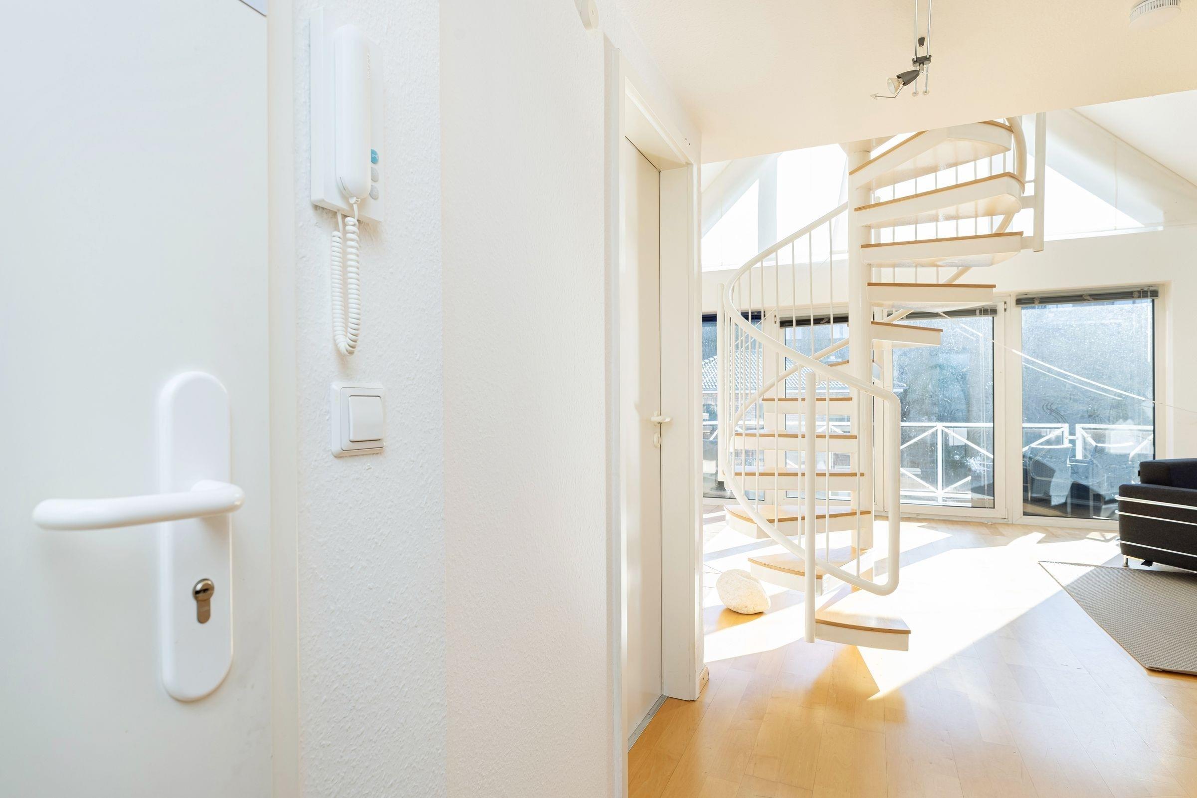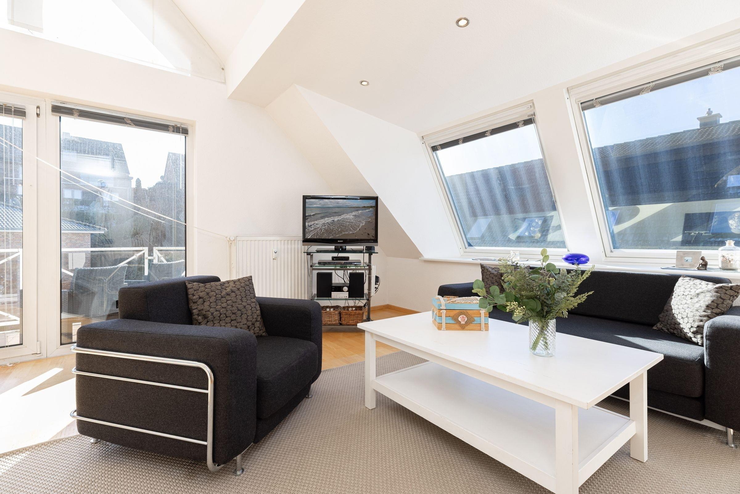 In diesem traumhaften Galerie-Appartement können Sie einen wunderschönen Urlaub erleben. Der kombinierte Wohn-Essbereich mit der offenen Küchenzeile und einem Schlafzimmer mit zwei Einzelbetten befindet sich auf der unteren Ebene. Ebenso das große, tageslichthelle Badezimmer mit zwei Waschtischen und Badewanne sowie Waschmaschine und Trockner. Auf dem Balkon mit gemütlichen Lounge-Möbeln können Sie den Tag noch einmal Revue passieren lassen. Der zweite, offene Schlafbereich befindet sich auf der oberen Ebene und ist mit einem Doppelbett ausgestattet. Sie gelangen über eine Wendeltreppe vom Wohnzimmer aus auf die Galerie. Der Ortskern, der malerische Hafen und der feinsandige Ostseestrand sind in wenigen Minuten zu Fuß zu erreichen.