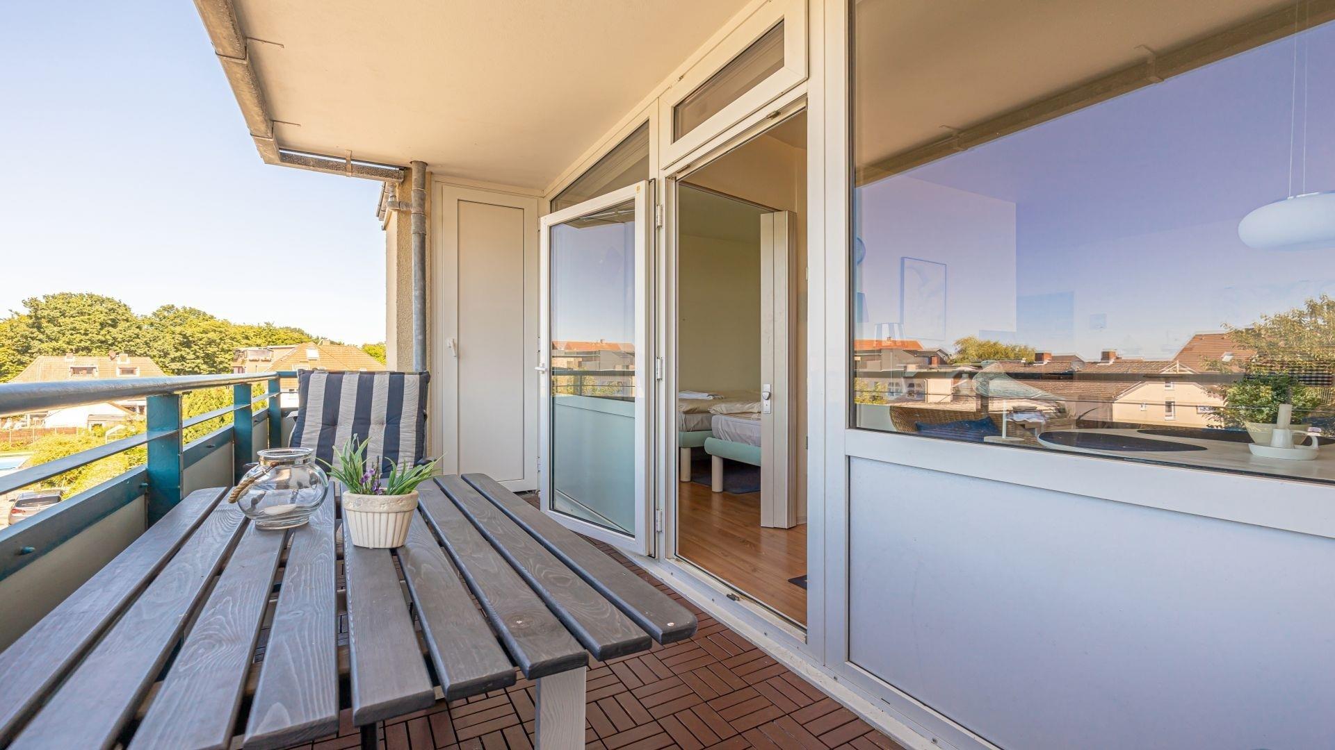 Ferienwohnung Küstensegler in Laboe mit Balkon, maritimem Flair und kleinem Ostseeblick, perfekt für bis zu 4 Personen.