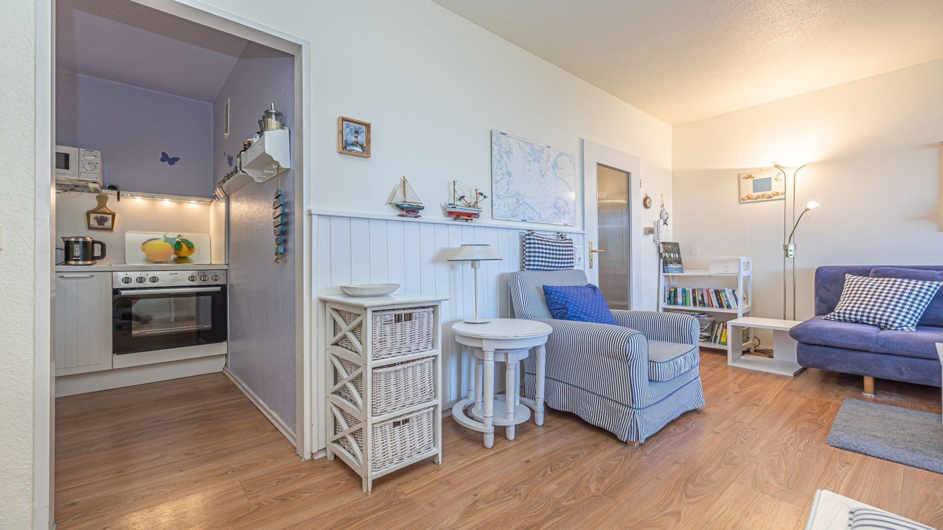 Zentral in Laboe am Probsteier Platz befindet sich diese liebevoll eingerichtete 40 m² große 2-Zimmer-Ferienwohnung für max. 4 Personen.