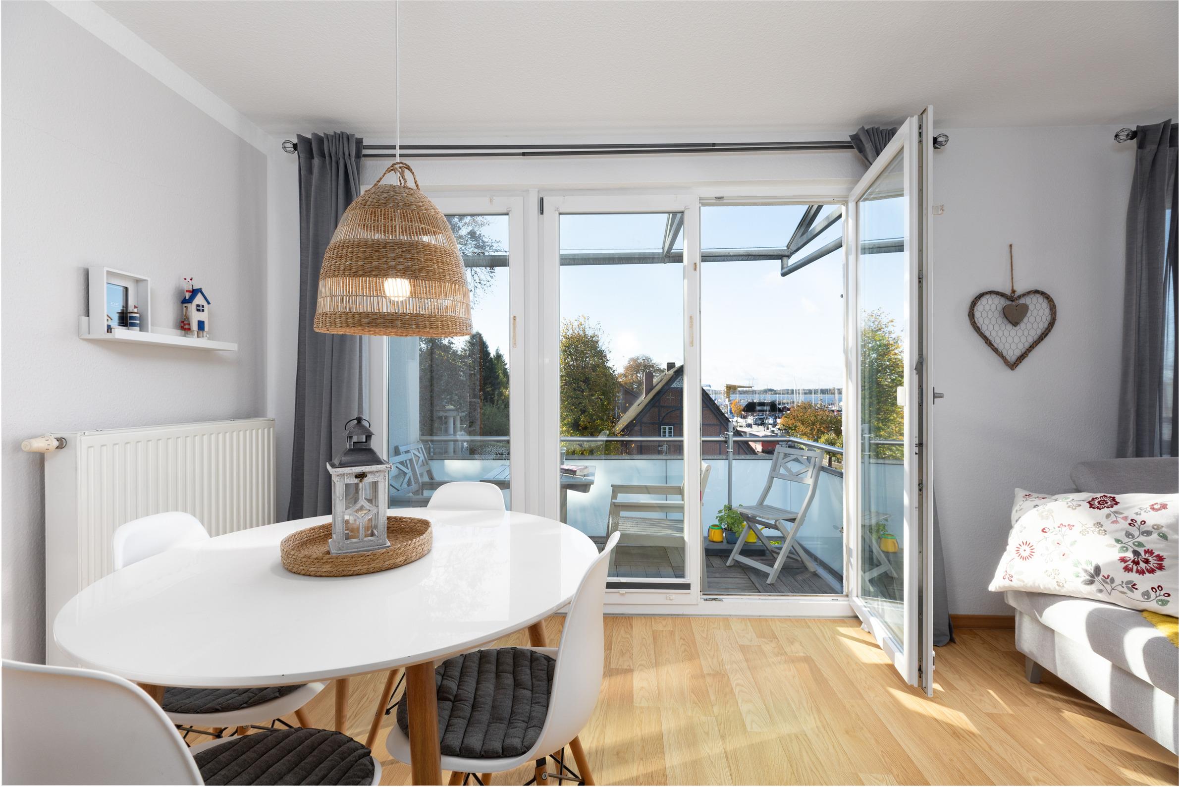 Moderne 3-Zimmer-Ferienwohnung mit Balkon im Herzen von Laboe, nur wenige Schritte vom Strand und Hafen entfernt.