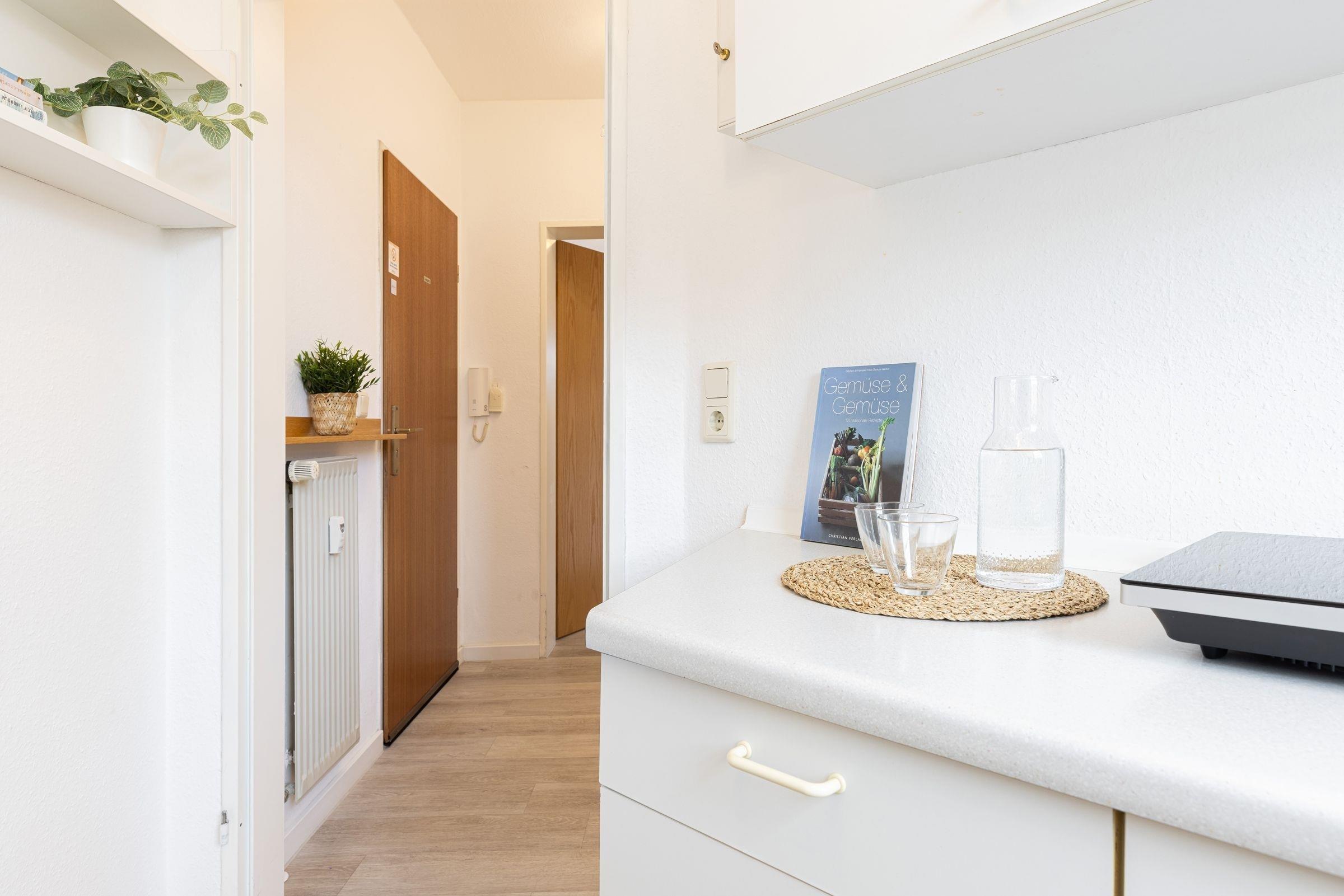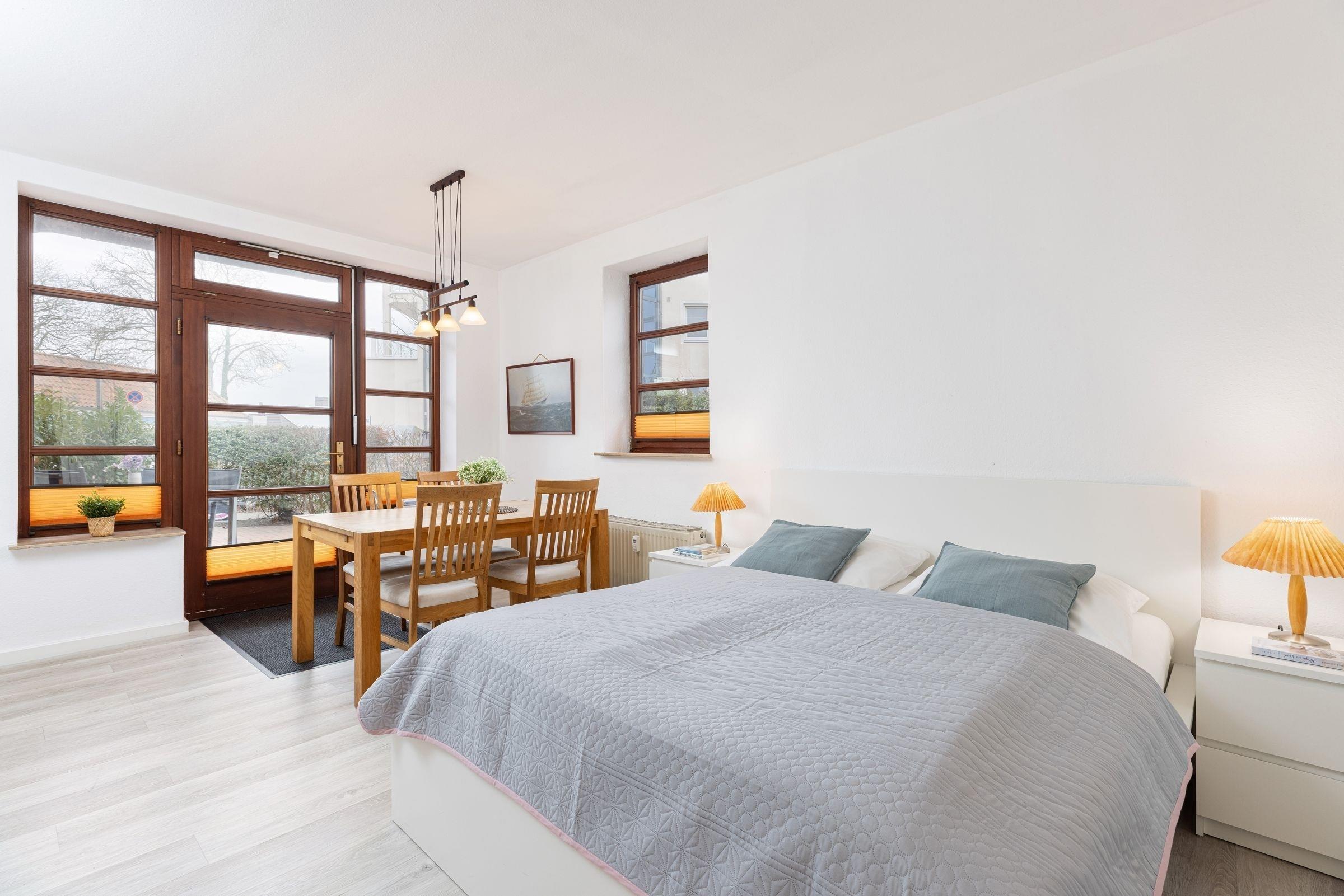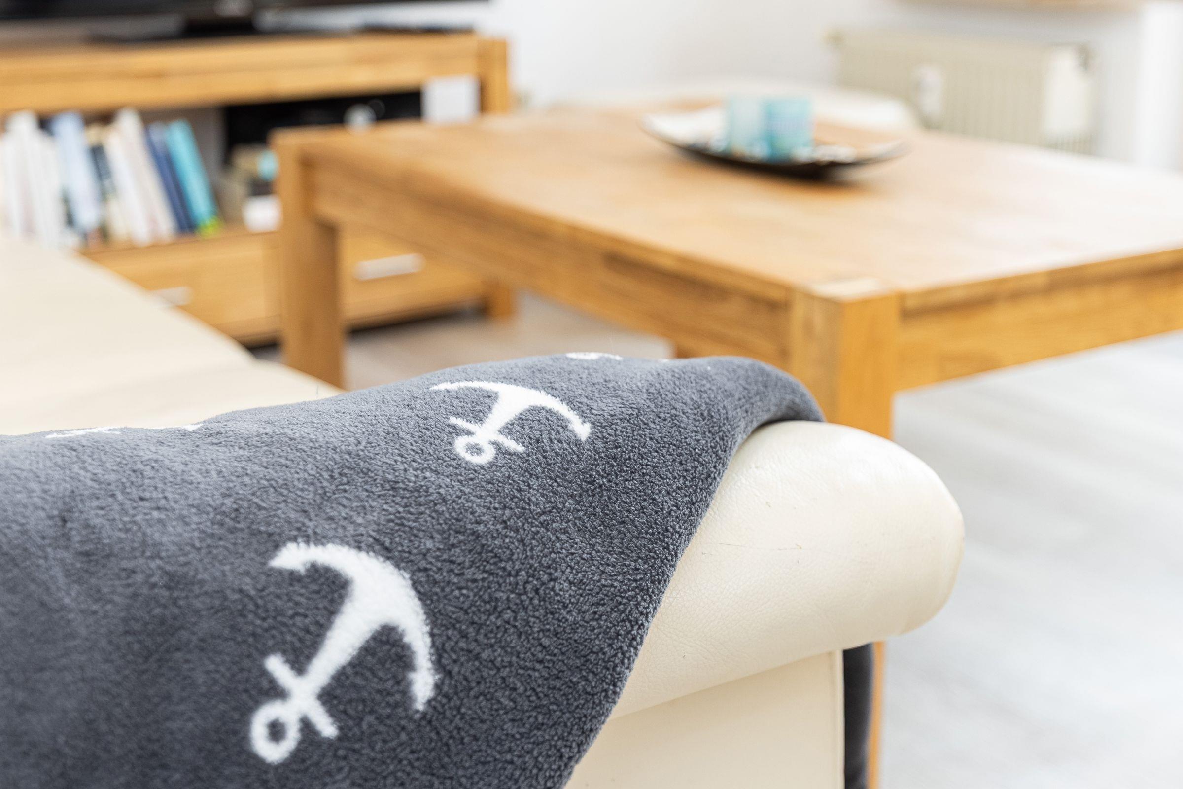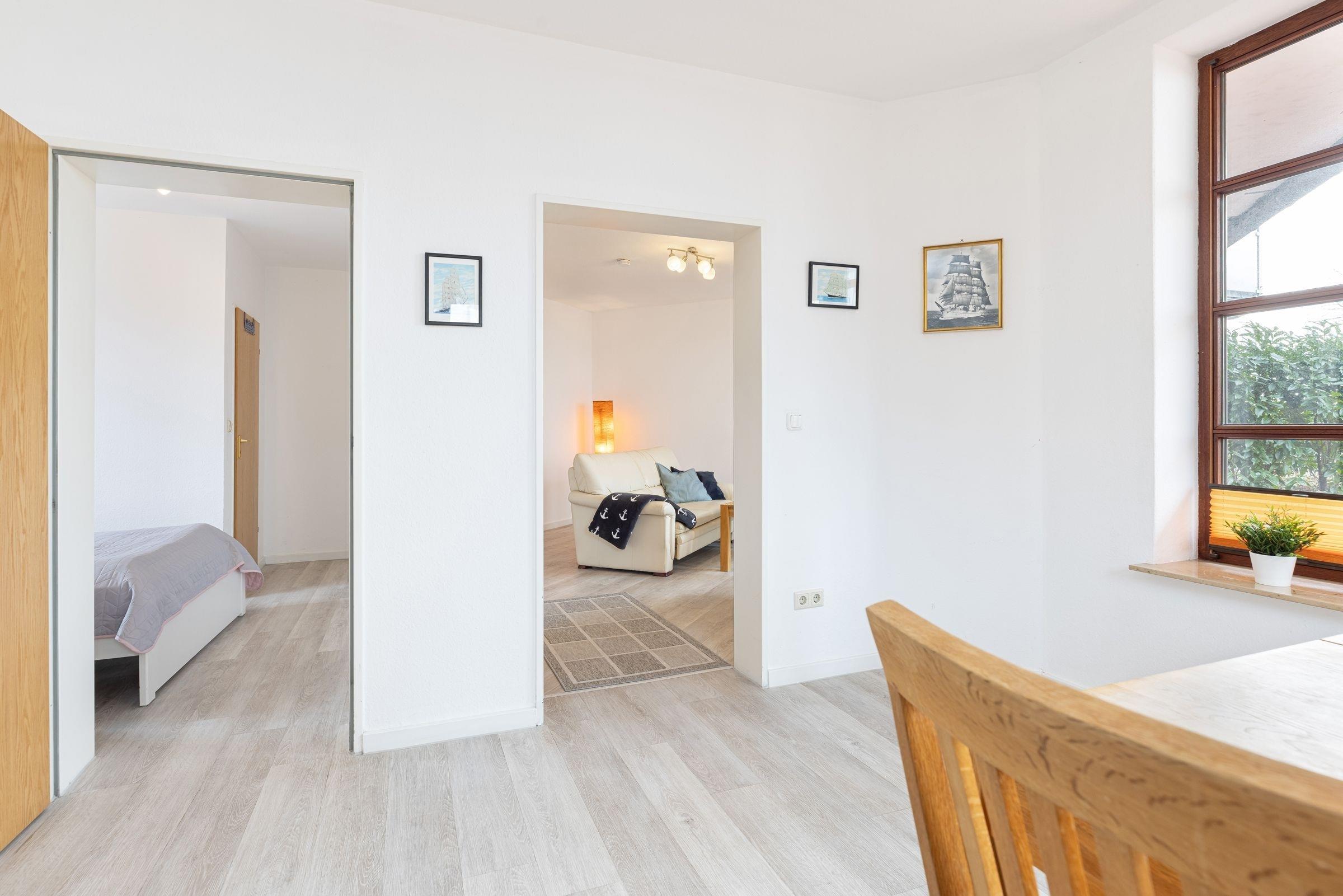 Die modern eingerichtete 3-Zimmer-Ferienwohnung für bis zu 4 Personen befindet sich im Erdgeschoss eines Appartement- und Wohnhauses am Laboeer Hafen mit eingeschränktem Blick auf die Kieler Förde.
