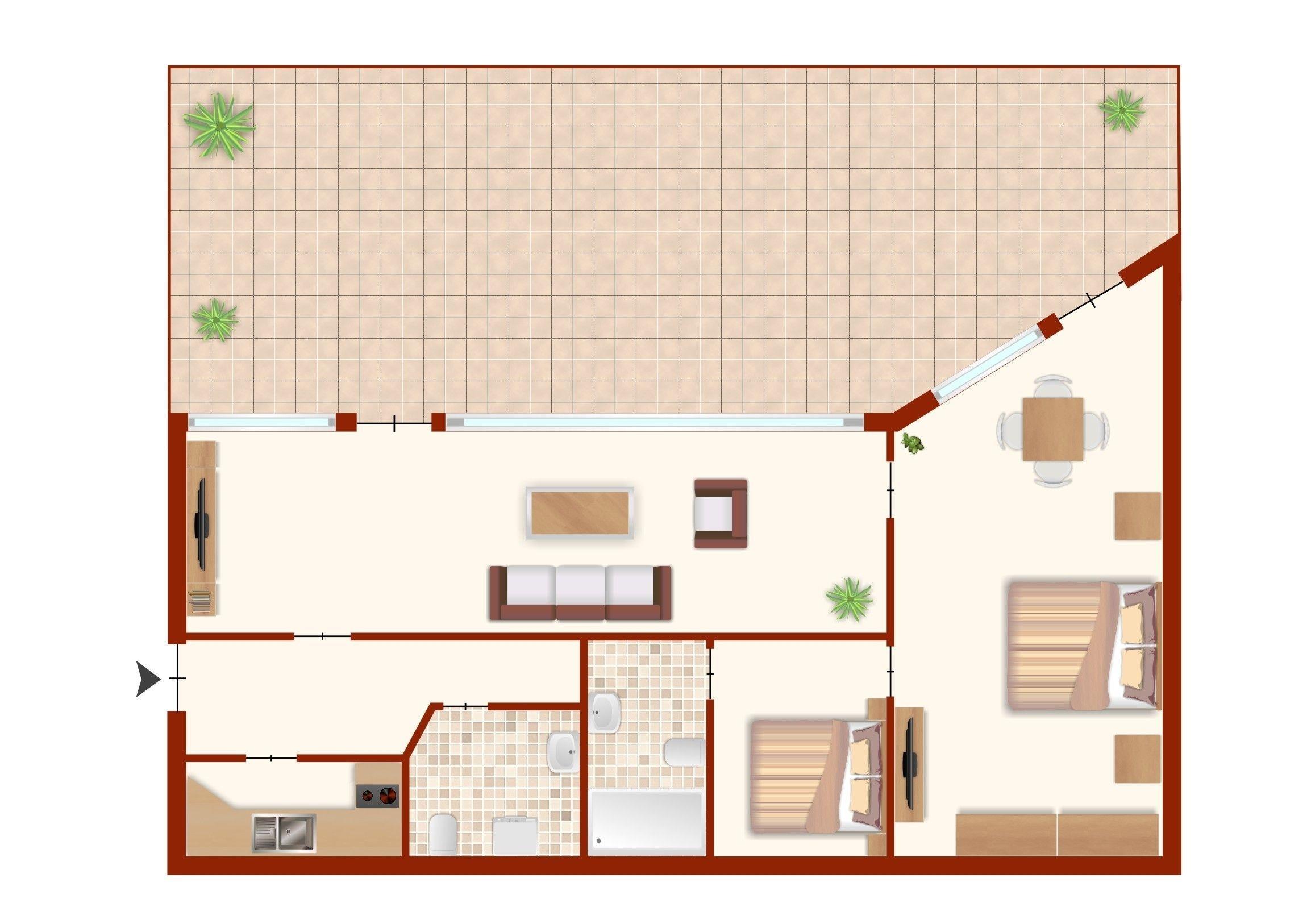Die Wohnung Sandkorn bringt die besten Voraussetzungen für einen unvergesslichen Ostseeurlaub mit sich: Sie bietet eine kleine, separate Küche (Mikrowelle mit Backofenfunktion), ein Gäste-WC, ein Wohnzimmer mit Zugang zur Terrasse (die über einen barrierearmen Eingang verfügt), ein Schlafzimmer (Doppelbett 180x200 cm) mit abgegrenzten Essbereich und Zugang zur Terrasse, ein Durchgangsschlafzimmer (Doppelbett 140x200 cm) mit angrenzendem Duschbad. Genießen Sie die herrlichen Sonnenuntergänge auf Ihrer möblierten Terrasse.