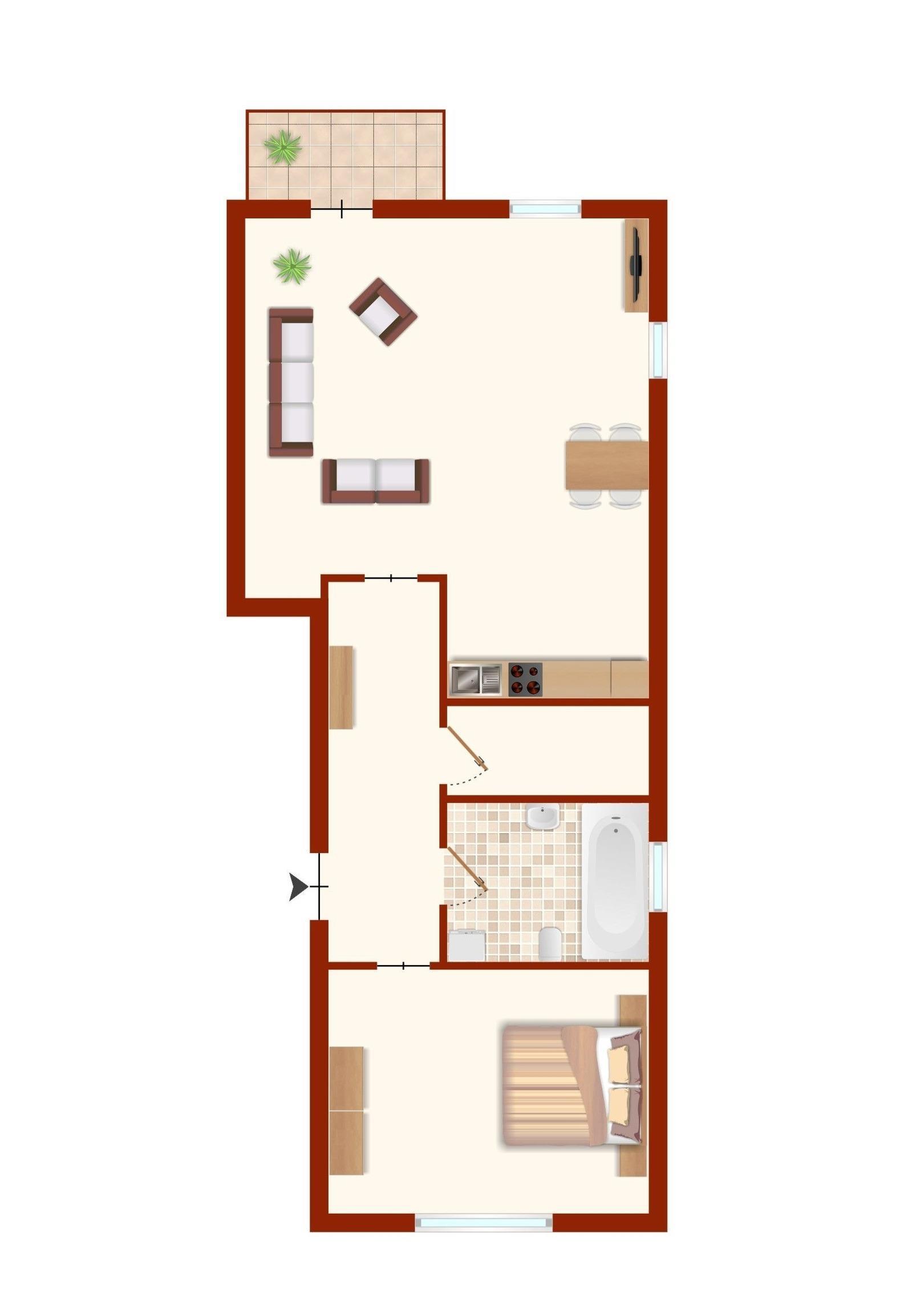 Diese helle und freundliche Wohnung im Erdgeschoss eines Mehrfamilienhauses ist ruhig gelegen. Die Wohnung ist aufgeteilt in Wohnzimmer mit integrierter Kochnische, Schlafzimmer und Bad. Das Schlafzimmer ist mit einem Doppelbett (2x 90x200 cm) ausgestattet und der Kleiderschrank bietet ausreichend Raum für Ihre Garderobe. Das Badezimmer ist mit einer Badewanne mit Duschabtrennung ausgestattet.