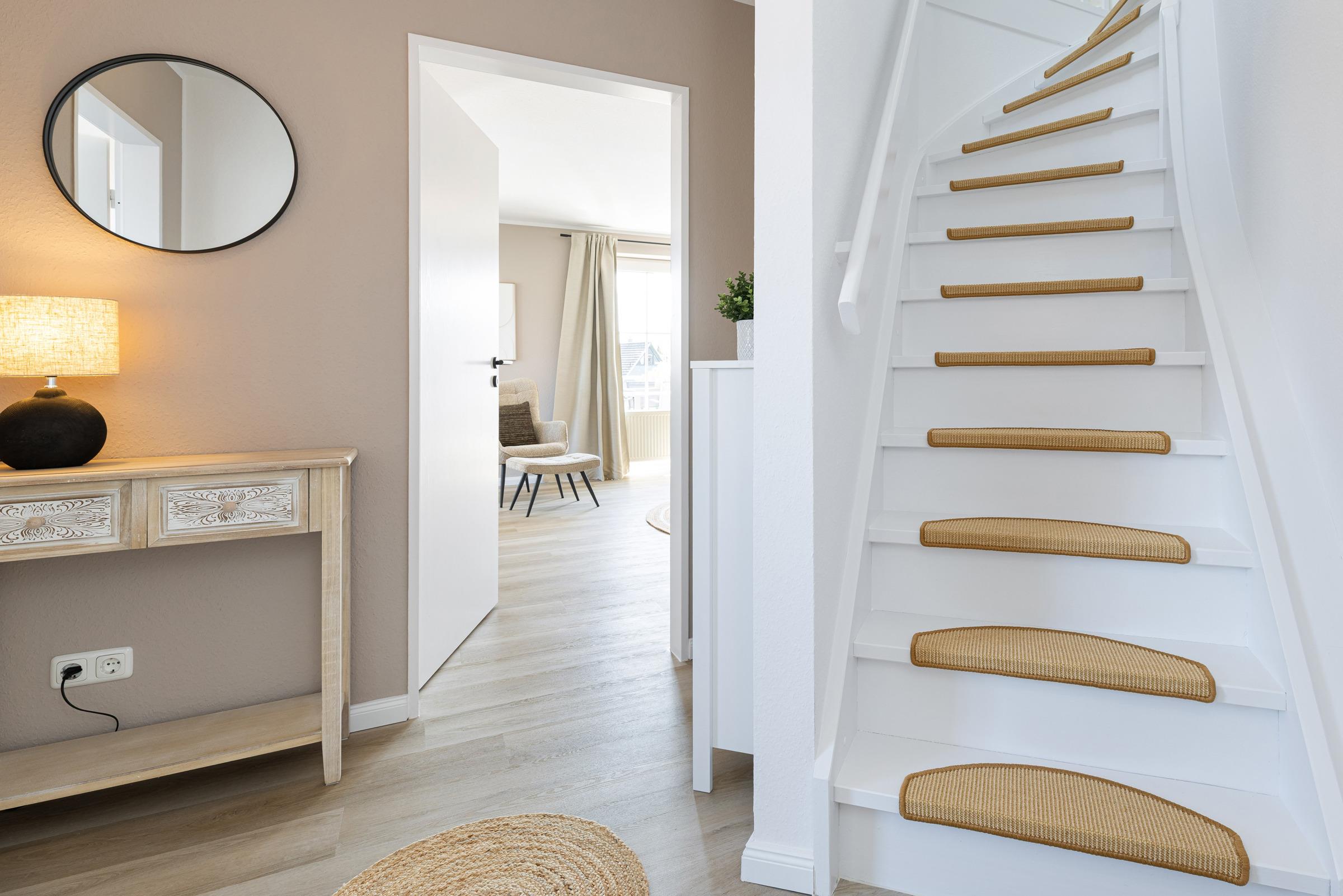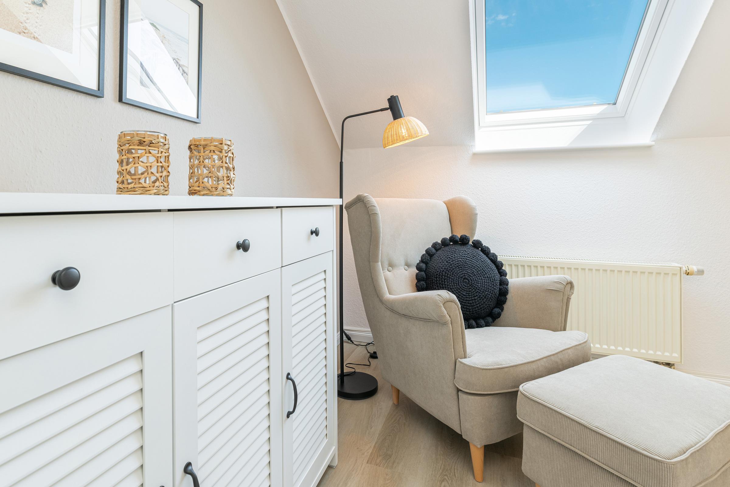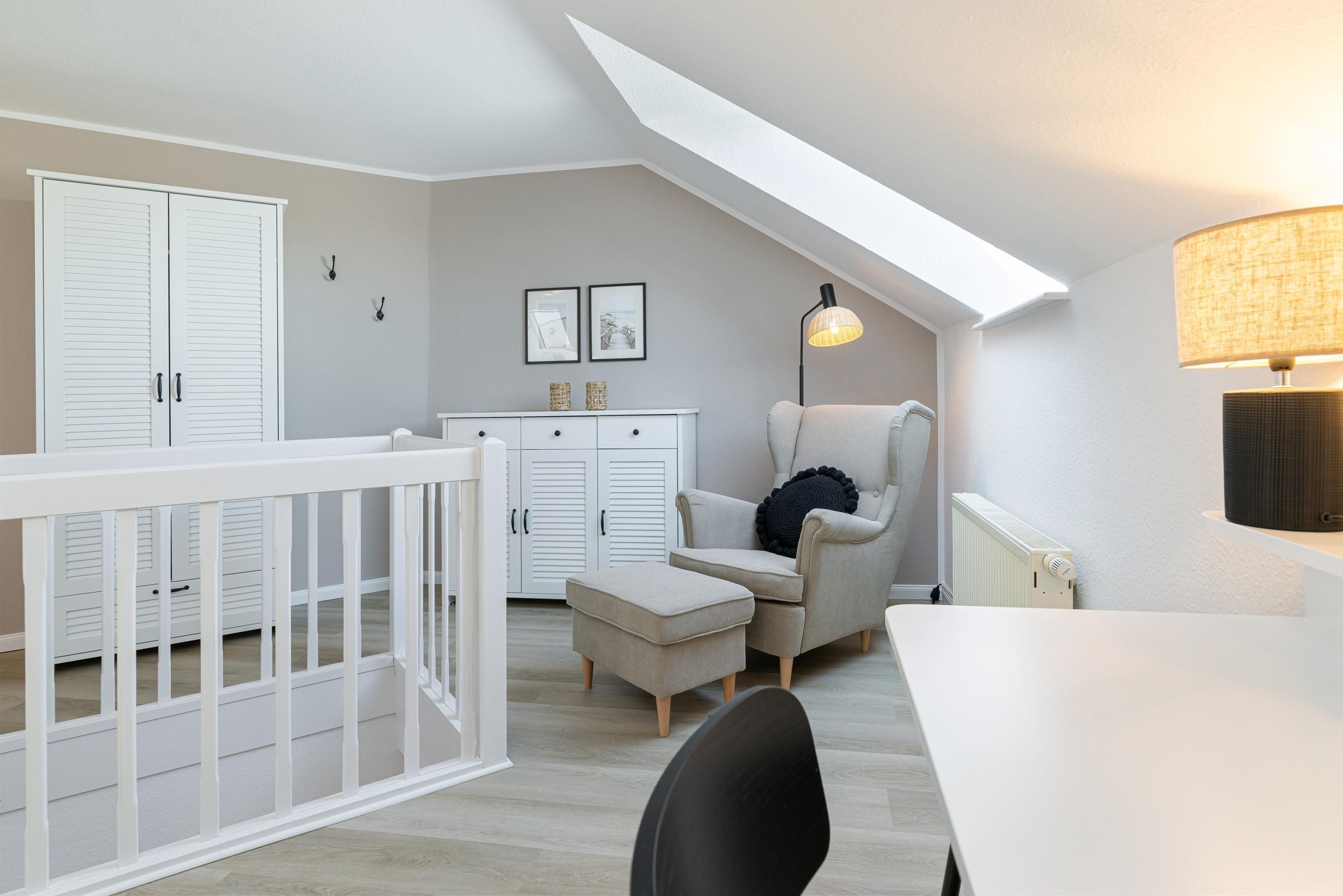 Die modern eingerichtete Maisonette-Wohnung Flat White empfängt Sie im zweiten Stock des Haus Baltic Laboe und bietet auf 67m² genug Platz und Erholung für vier Urlauber.