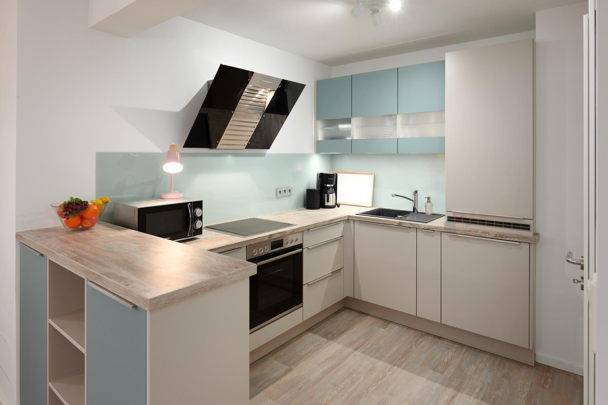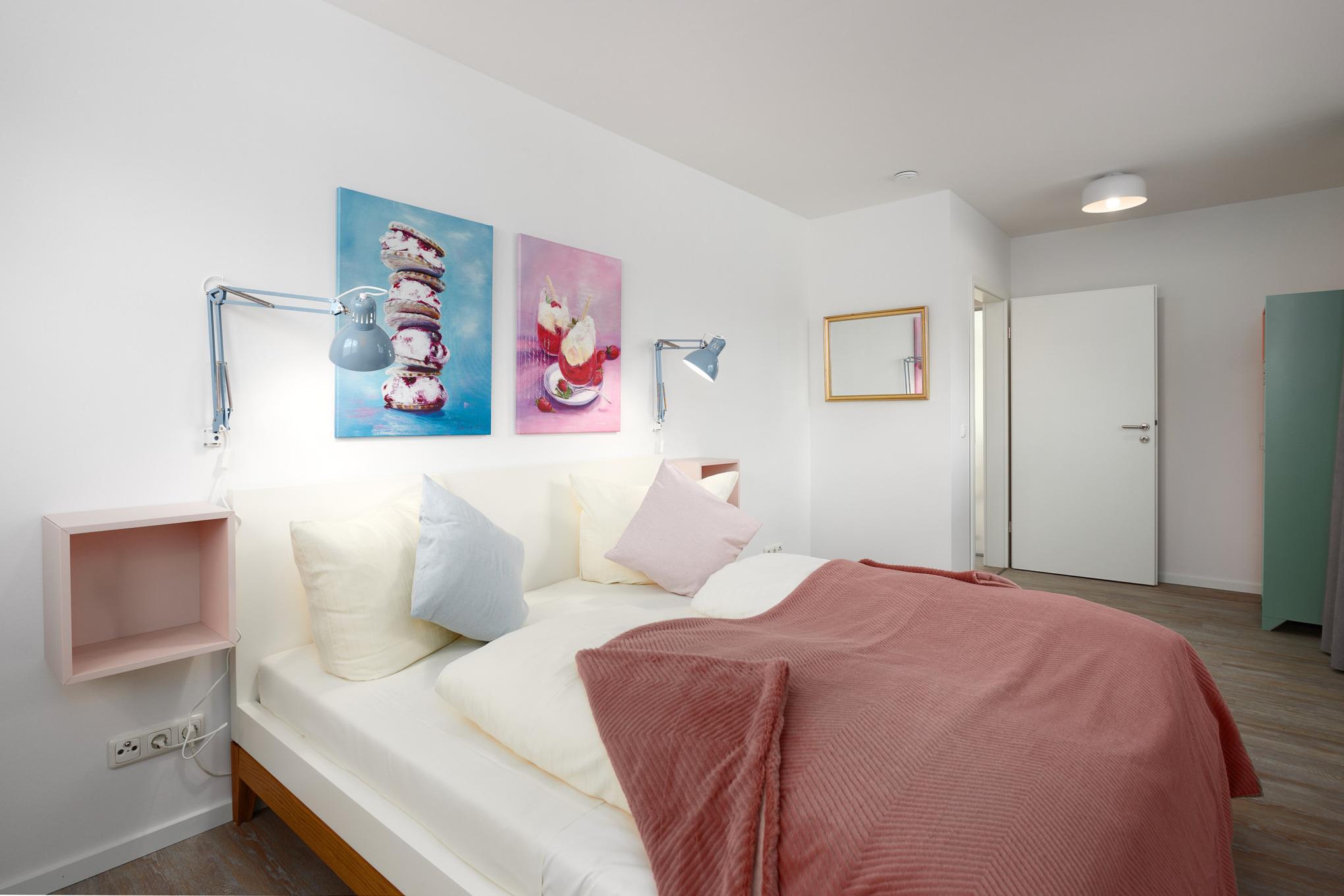 Die moderne Ferienwohnung überzeugt mit einem hellen Wohnbereich, der mit gemütlichem Sofa und großem Flachbild-TV zum Entspannen einlädt. Von hier gelangen Sie auf die sonnige Terrasse mit nordöstlicher Ausrichtung, die mit Gartenmöbeln und einem Strandkorb ausgestattet ist und auch das Grillen erlaubt. Die offene Küche bietet alles, was Sie im Urlaub benötigen: Geschirrspüler, Backofen, Induktionskochfeld, Kühlschrank mit Gefrierfach, Kaffeemaschine und viele weitere Annehmlichkeiten. Am Esstisch finden alle Gäste bequem Platz. Zwei separate Schlafzimmer mit komfortablen Doppelbetten sorgen für erholsame Nächte. Das Tageslichtbad ist modern ausgestattet mit bodengleicher Dusche, WC, beleuchtetem Kosmetikspiegel und Haartrockner.