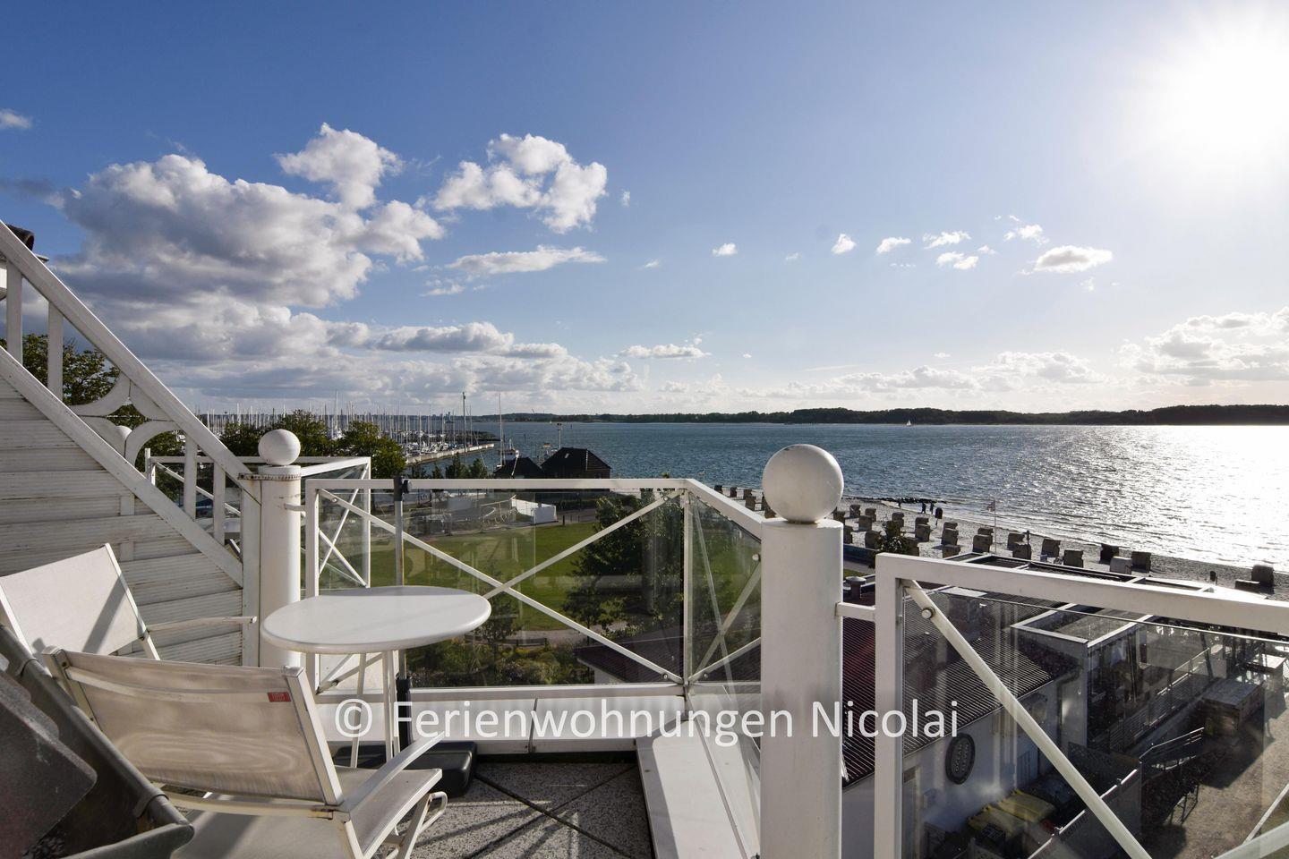 Das Appartement 25 liegt in 1. Reihe direkt an der Strandpromenade Laboe mit Panorama Blick auf die Kieler Förde, den Hafen, den Strand und die Ostsee