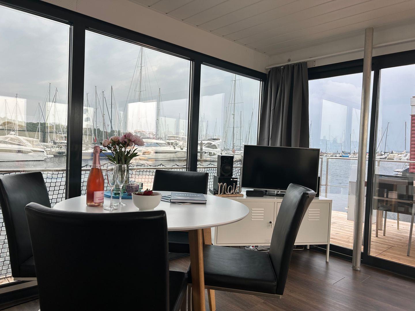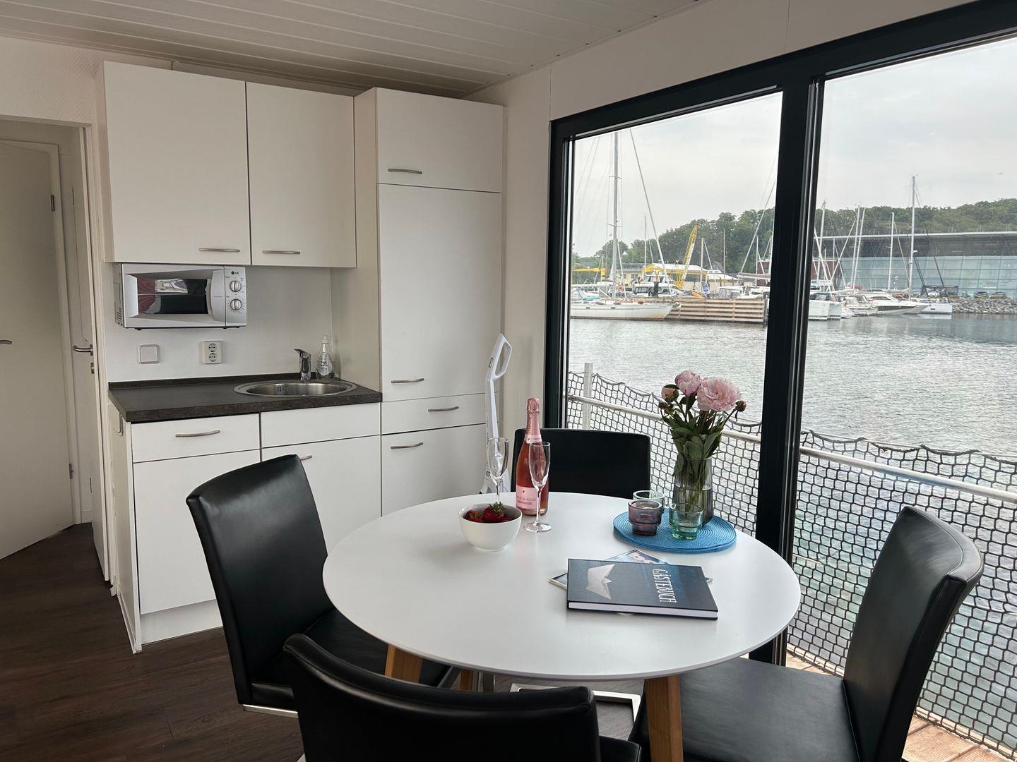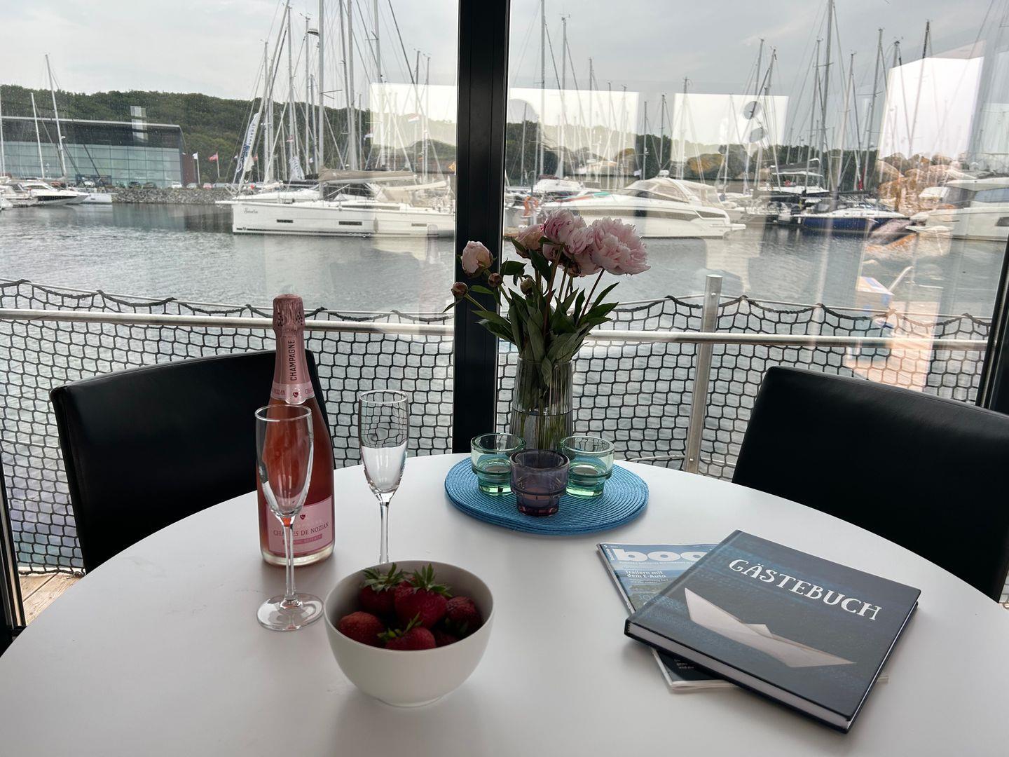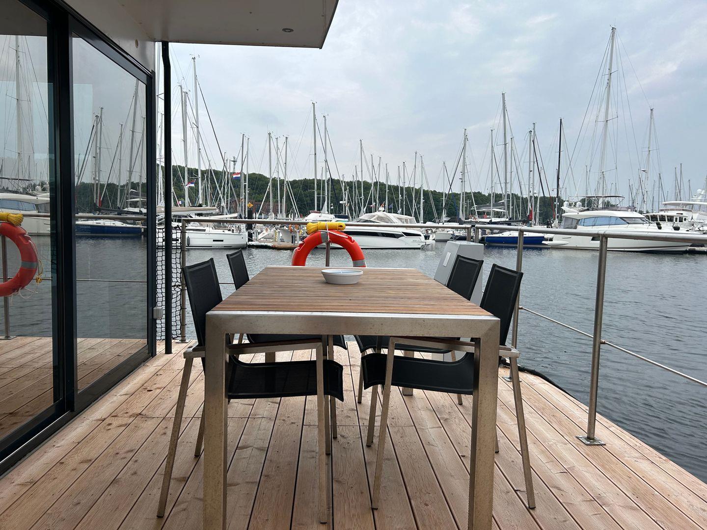 15 qm Terrasse am Bug, möbliert, + Dachterrasse 25 qm, Kostenfreier Parkplatz am Hafen