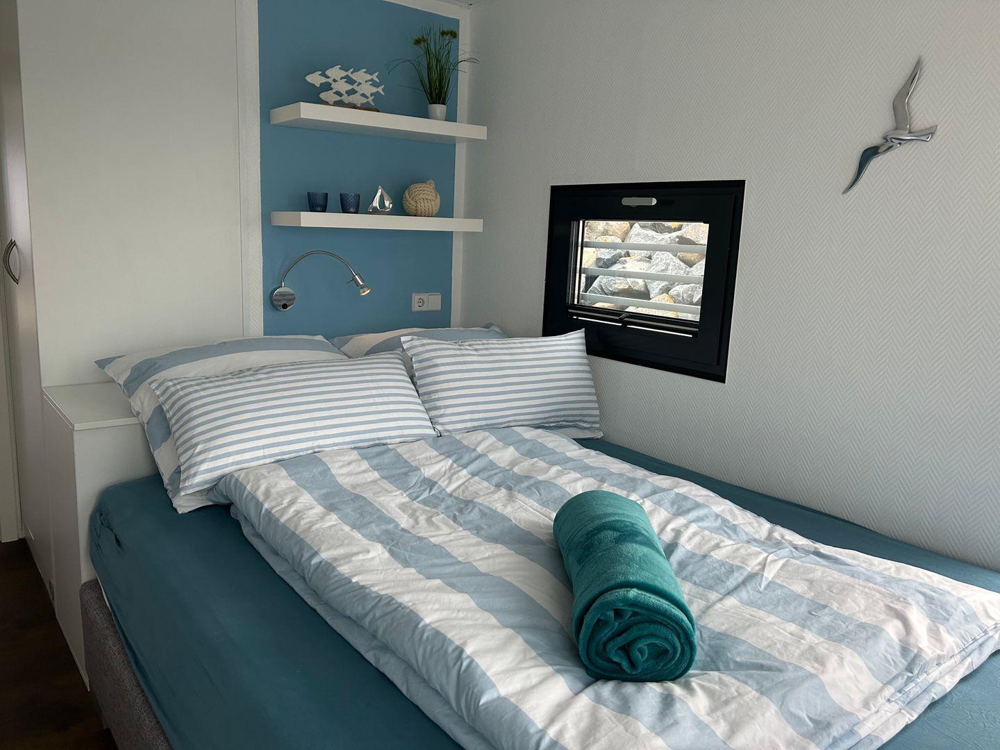 Schlafmöglichkeiten für 4 Personen: 2 Schlafzimmer mit Doppelbett, Bettwäsche jeweils inklusive.