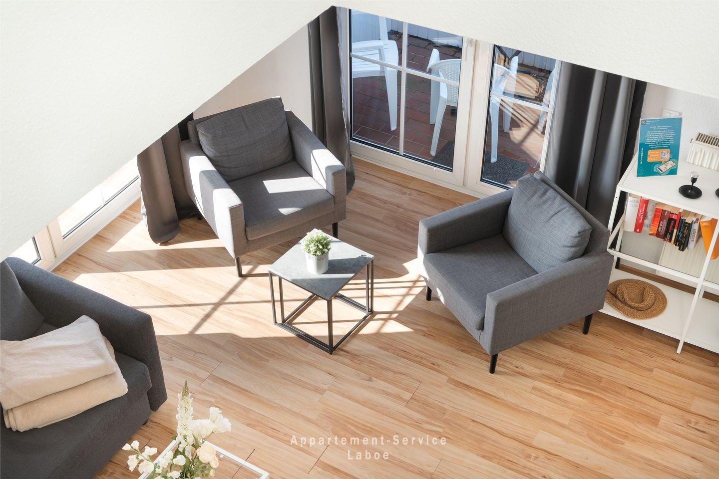 Gemütliche Maisonette-Ferienwohnung W20 in Laboe mit großer Dachterrasse und nur 450 m zum Strand – ideal für erholsame Ostseeferien.