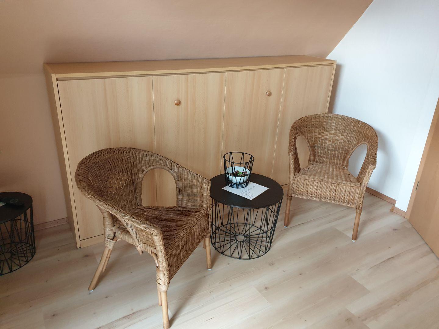 FeWo Feld PU1: Ca. 45?m² große 2-Zimmer-Wohnung im 1. OG mit sonniger Dachterrasse, geeignet für bis zu 3 Personen. Wohnbereich mit Sitzgruppe, TV, DVD-Player, WLAN und Einzelschrankbett. Offene Küchenzeile mit Essplatz. Separates Schlafzimmer mit Doppelbett. Modernes Bad mit Dusche/WC, kleiner Flur mit Garderobe. Dachterrasse mit Sitzmöbeln. Eigener PKW-Stellplatz vorhanden. Nichtraucherwohnung, keine Haustiere.