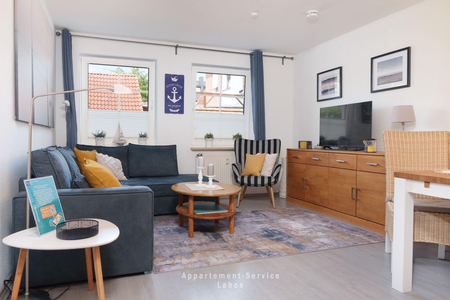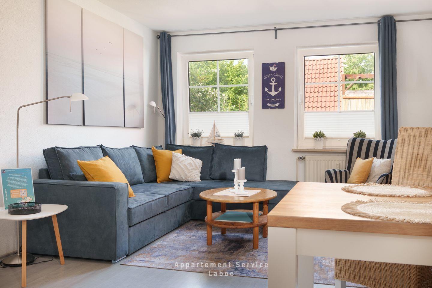Gemütliche 2-Zimmer-Ferienwohnung in Laboe, nur 150 m vom Strand mit Wellnessgarten, Pool und WLAN.