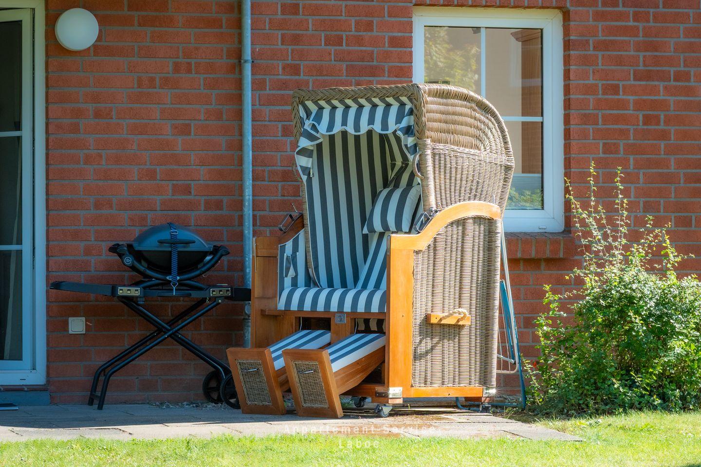 Gemütliche 2-Zimmer-Ferienwohnung mit Terrasse und Strandkorb, nur 450 m vom Strand in Laboe entfernt.