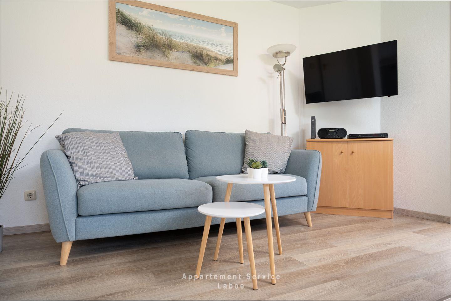 Die Wohnung ist so gestaltet, dass du dich sofort wohlfühlst. Vom kleinen Flur mit Garderobe, wo du Jacken und Taschen verstauen kannst, geht es ins Wohnzimmer, das mit einer gemütlichen Sitzgruppe und viel Licht punktet. Hier kannst du nach einem langen Tag an der frischen Ostseeluft die Füße hochlegen, deinen Lieblingsfilm schauen oder einfach entspannen. Und dank kostenfreiem WLAN kannst du deinen Liebsten direkt Fotos von deinem traumhaften Urlaub schicken oder nach dem besten Fischrestaurant in der Umgebung suchen.