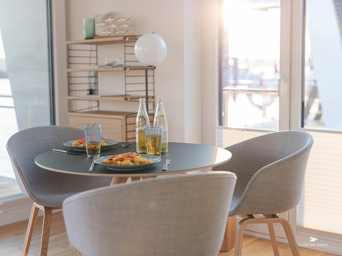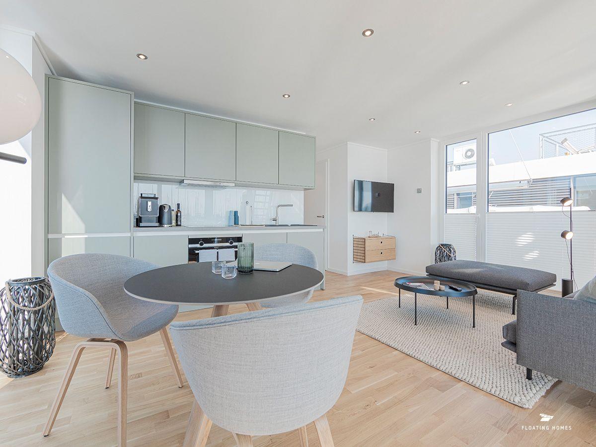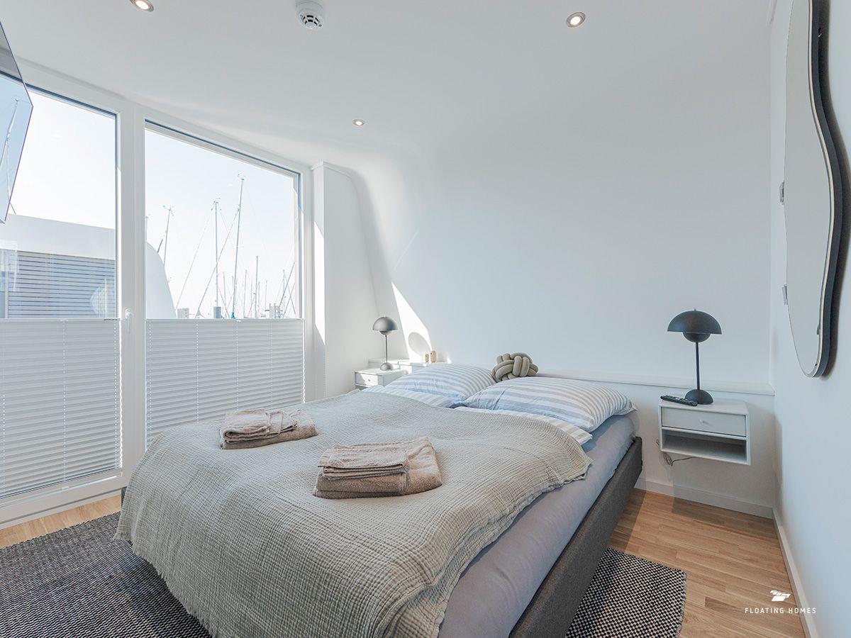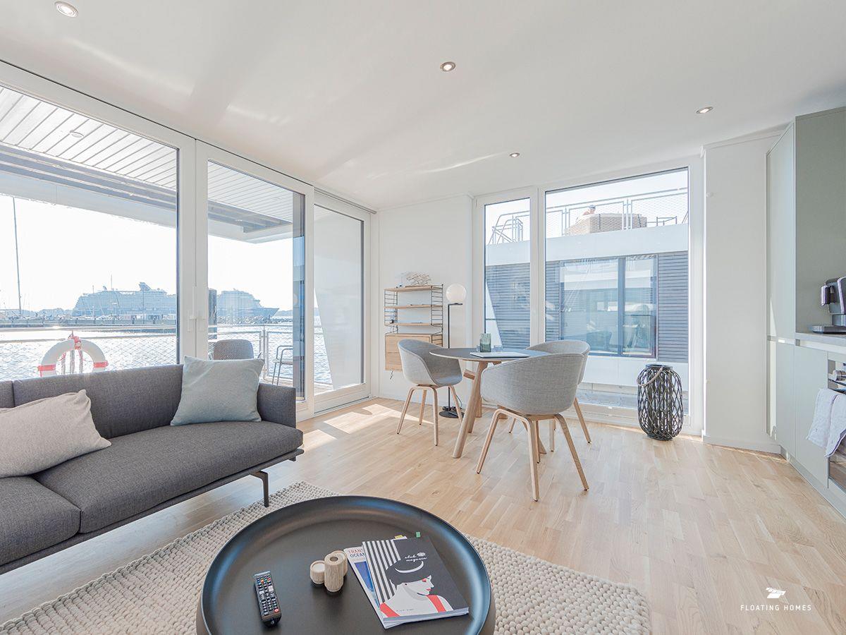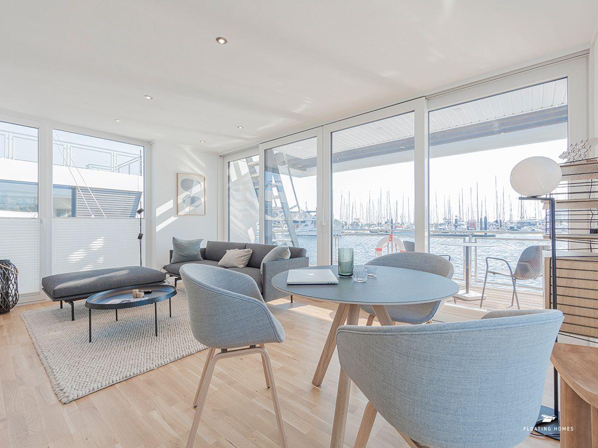 Das Hausboot ist über einen kurzen Bootssteg erreichbar und bietet auf 50 m² Wohnfläche alles, was du für einen exklusiven und entspannten Aufenthalt brauchst. Der großzügige Wohn-Essbereich mit einer bequemen Wohnlandschaft und Panoramafenstern gibt dir das Gefühl, direkt über dem Wasser zu schweben. Öffne die Schiebetüren zur Sonnenterrasse am Bug und genieße die frische Ostseeluft. Rundum verdunkelbare Plissees und eine Infrarotheizung sorgen für Privatsphäre und Behaglichkeit – zu jeder Jahreszeit.