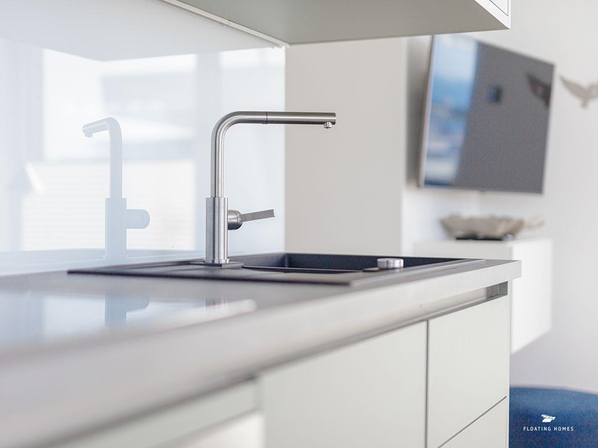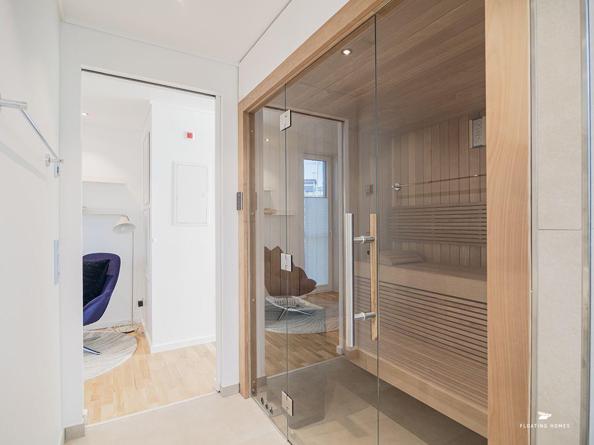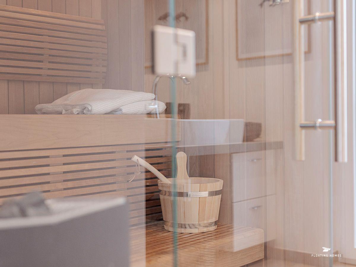 Das Schlafzimmer mit komfortablem Bett und das moderne Duschbad mit WC und Waschbecken ergänzen den exklusiven Wohnkomfort. Und als besonderes Highlight steht dir an Bord sogar eine großzügige Sauna zur Verfügung, die für noch mehr Entspannung sorgt.