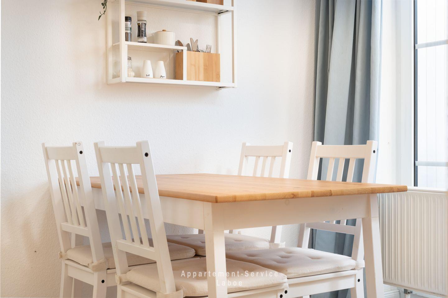 In der Küche kannst du dir problemlos deine Lieblingsgerichte zubereiten, ob Frühstück oder gemütliches Abendessen. Der Essplatz direkt daneben lädt dazu ein, in entspannter Atmosphäre zusammenzusitzen und gemeinsam leckere Mahlzeiten zu genießen.
