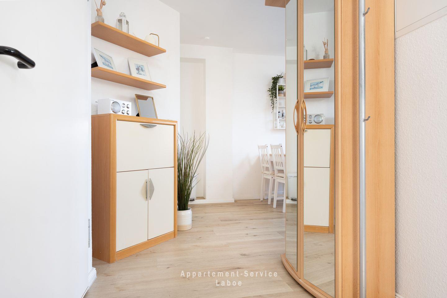 Moderne Maisonette-Ferienwohnung in Laboe mit Loggia, WLAN, Strandnähe und kostenfreiem Strandkorb für entspannte Ostseeferien.
