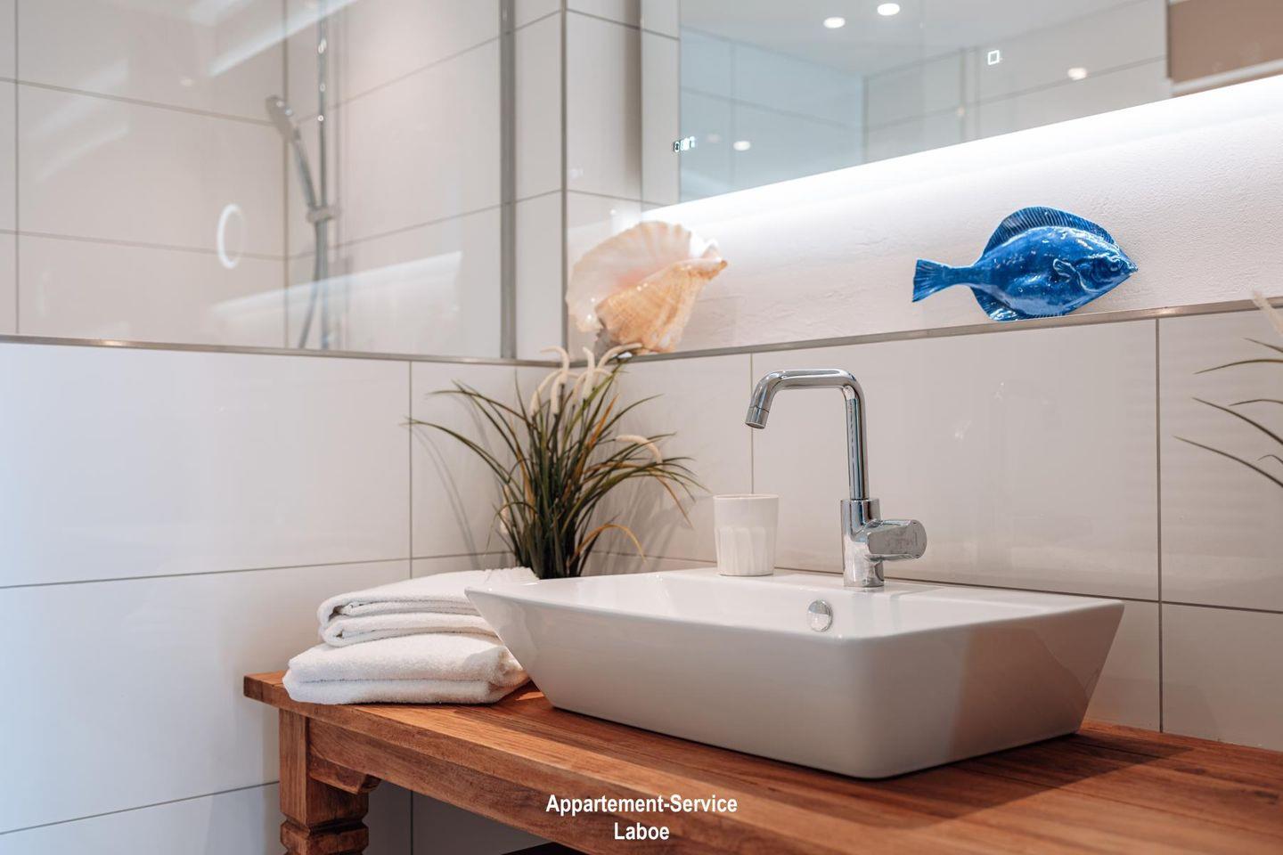 FeWo BeachHouse: 2-Zimmer-Wohnung, ca. 80?m², für bis zu 4 Personen. Wohnzimmer mit Schlafcouch, Esstisch, TV und WLAN. Schlafzimmer mit Doppelbett. Zwei Bäder mit Dusche. Voll ausgestattete Küche: Induktionsherd, Backofen, Mikrowelle, Spülmaschine, Kühlschrank mit Gefrierfach. Eigene Terrasse, gemeinschaftlicher Garten. PKW-Stellplatz inkl. Zentrale Lage, 100?m zum Hafen, Strand und Einkaufsmöglichkeiten fußläufig erreichbar. Haustiere auf Anfrage.