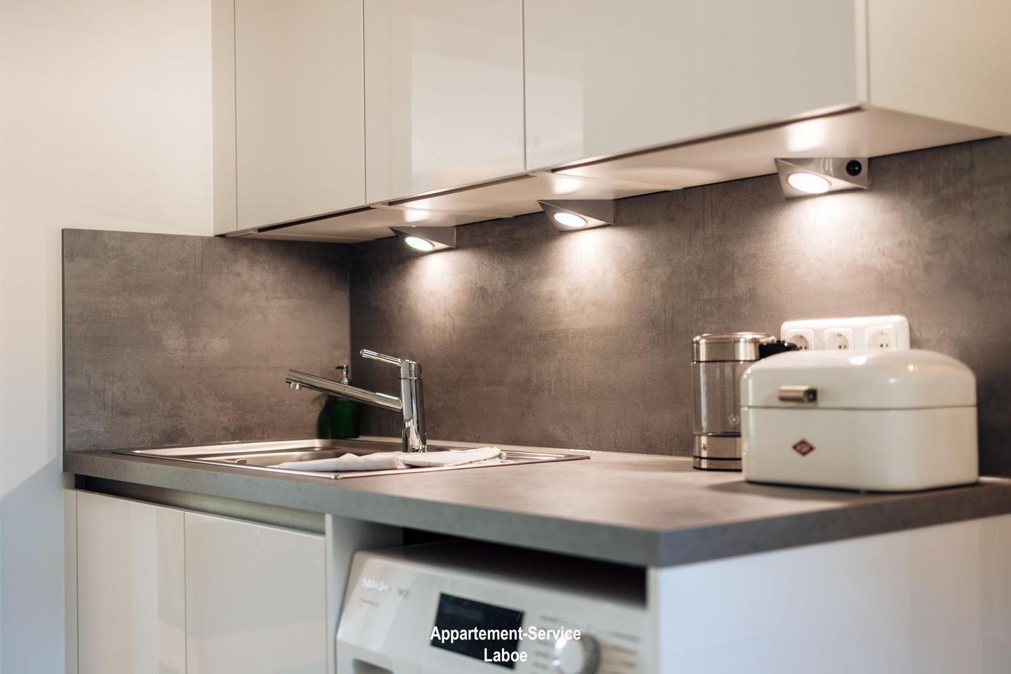 Die geschlossene Küche ist voll ausgestattet und überzeugt durch moderne Geräte: Induktionsherd, Backofen, Spülmaschine, Mikrowelle, Kühlschrank mit Gefrierfach, Kaffeemaschine und Wasserkocher. Alles, was du brauchst, um dich selbst zu verwöhnen.